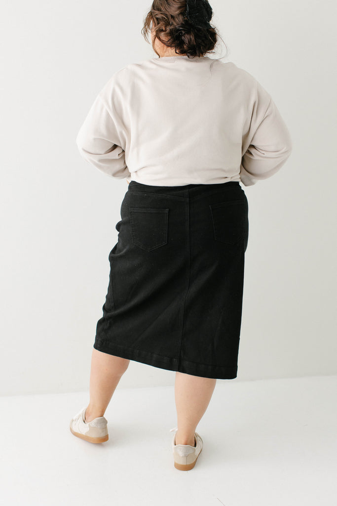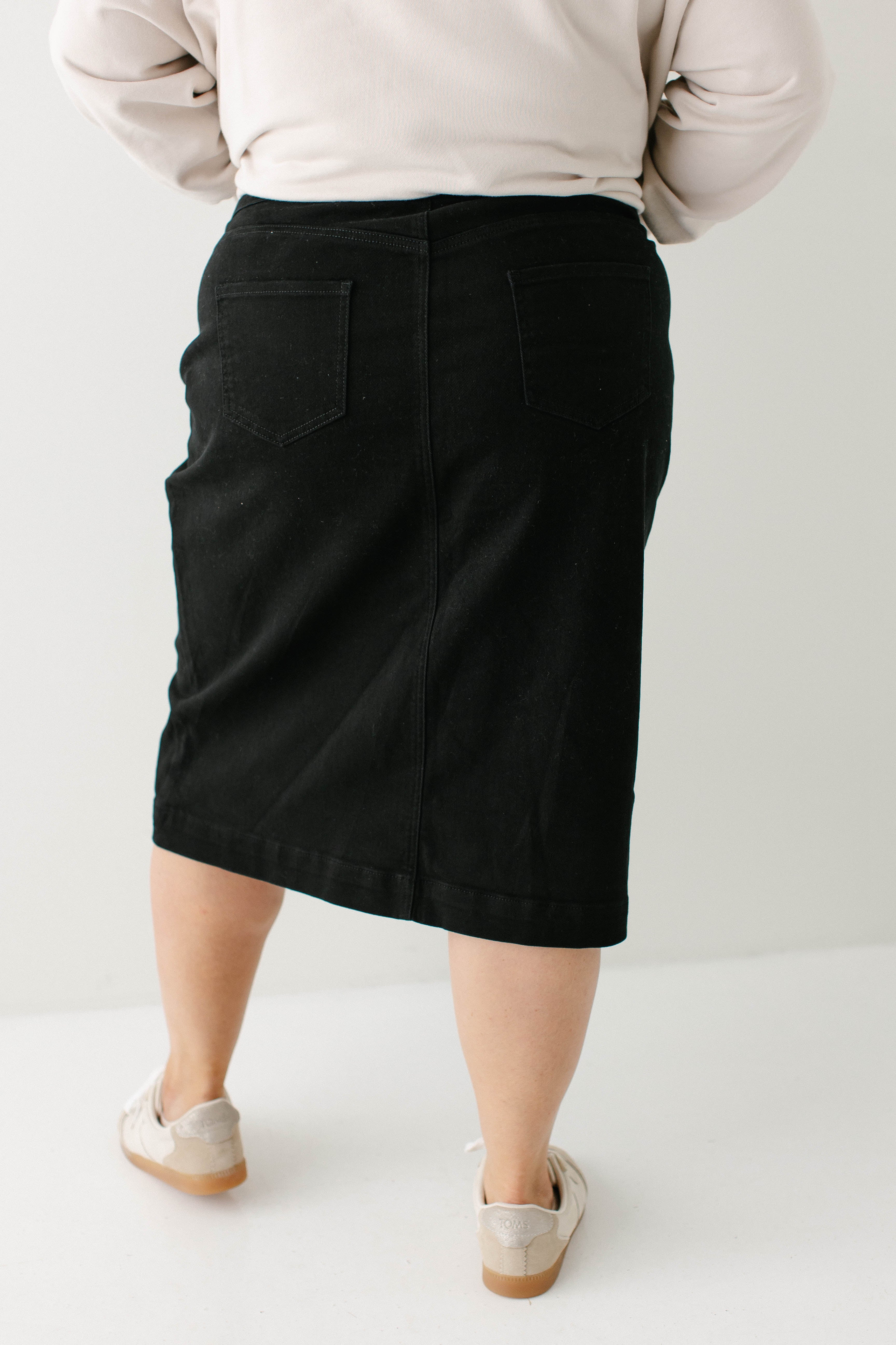 This is the perfect black denim skirt! It fits great and is so comfortable.