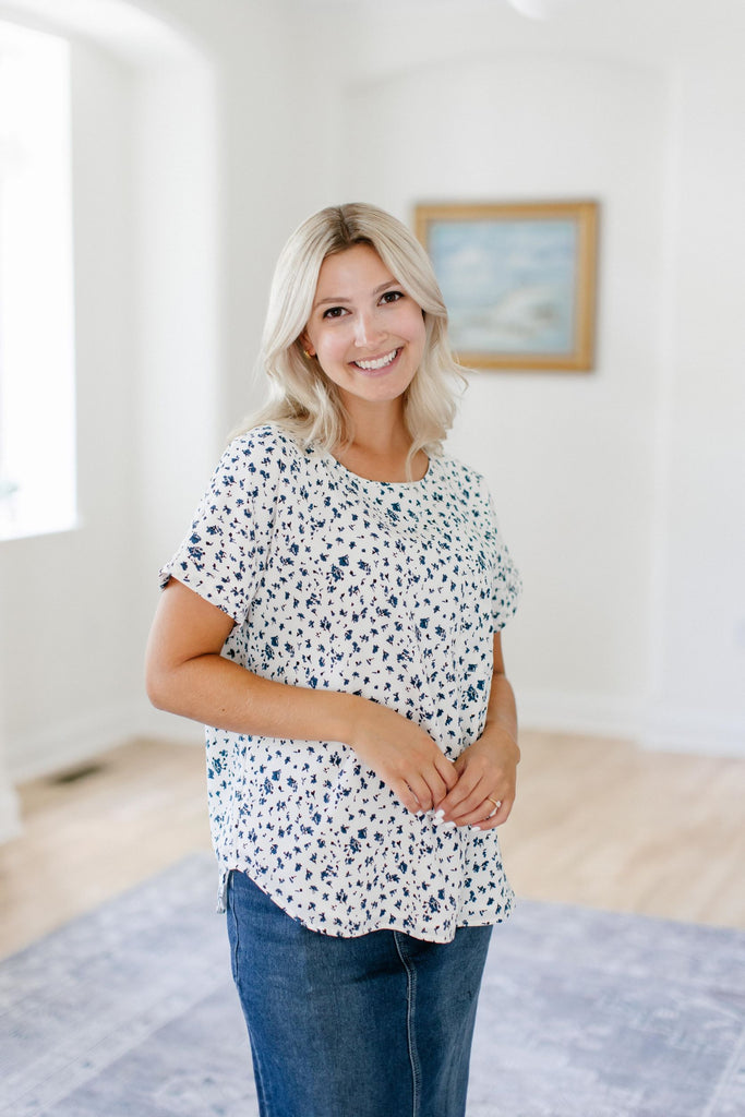 'Bethany' Smocked Neckline Short Sleeve Top in Navy FINAL SALE