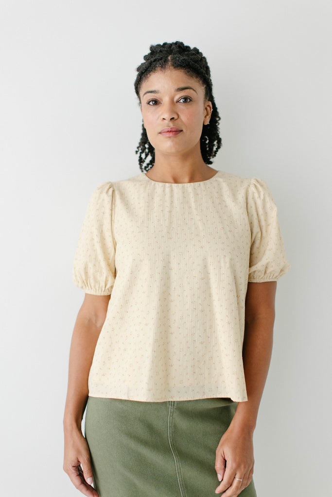 'Adina' Puff Sleeve Vintage Floral Top in Beige