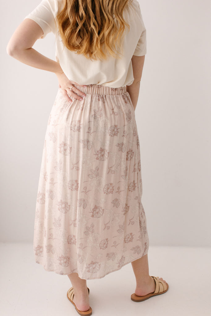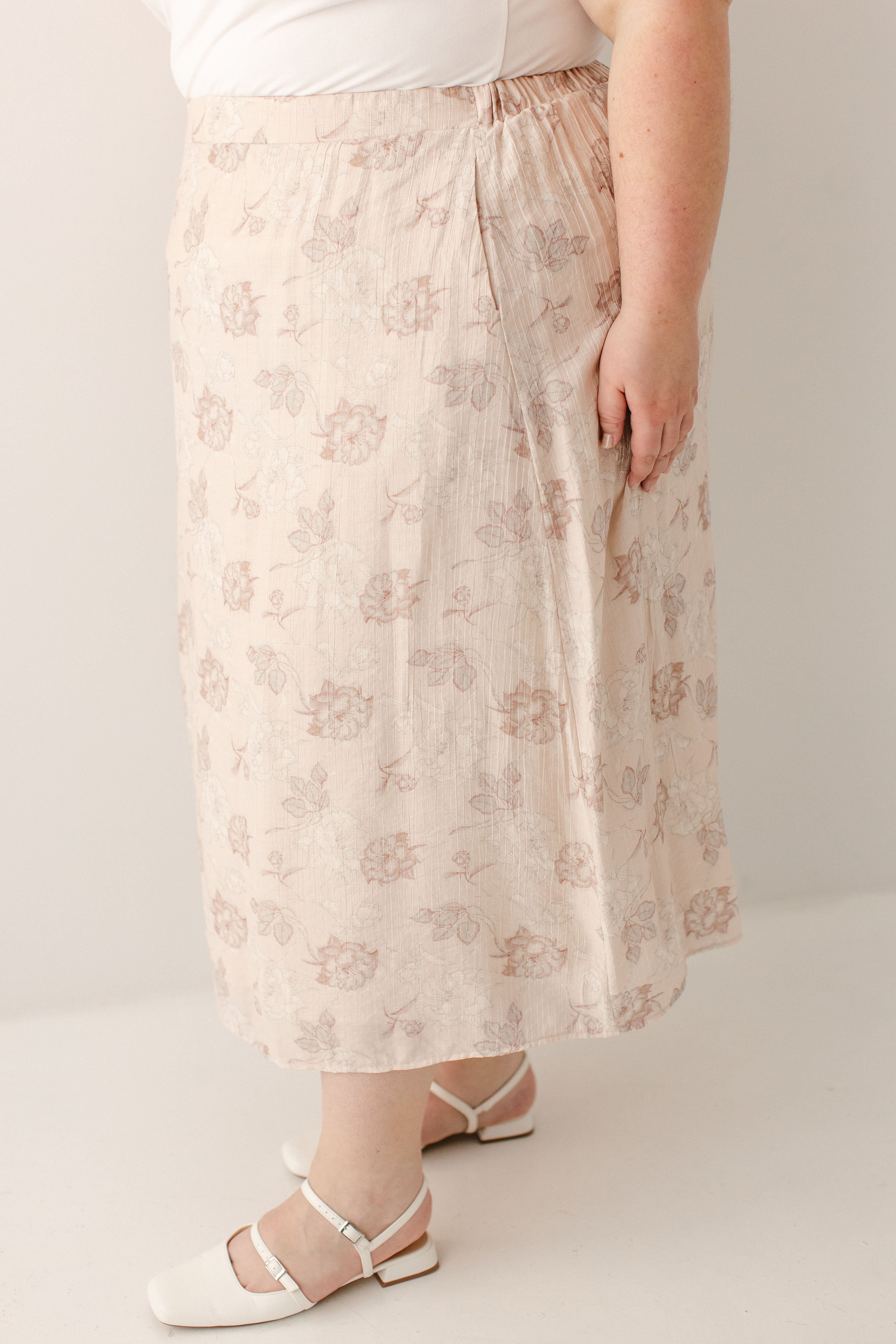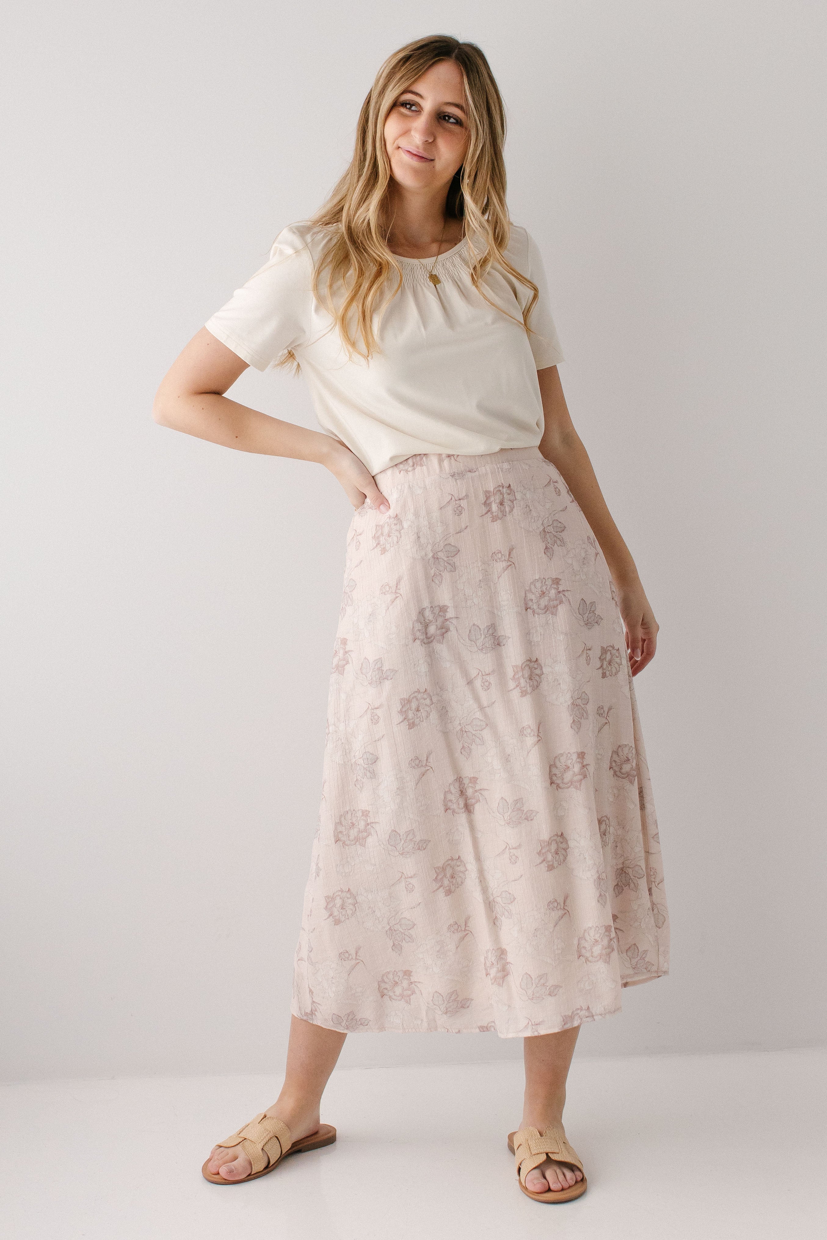 Fill your closet with spring florals with the 'Amour' Rose Print Midi Slip Skirt! Featuring a beautiful subtle rose print detail in a light blush shade, partial elastic waistband, slight A-line design for ease of movement, and full lining, this is a piece you’ll love to wear with all of your favorite lightweight tops. Pair with a white tee and denim jacket for the cutest outfit to go shopping