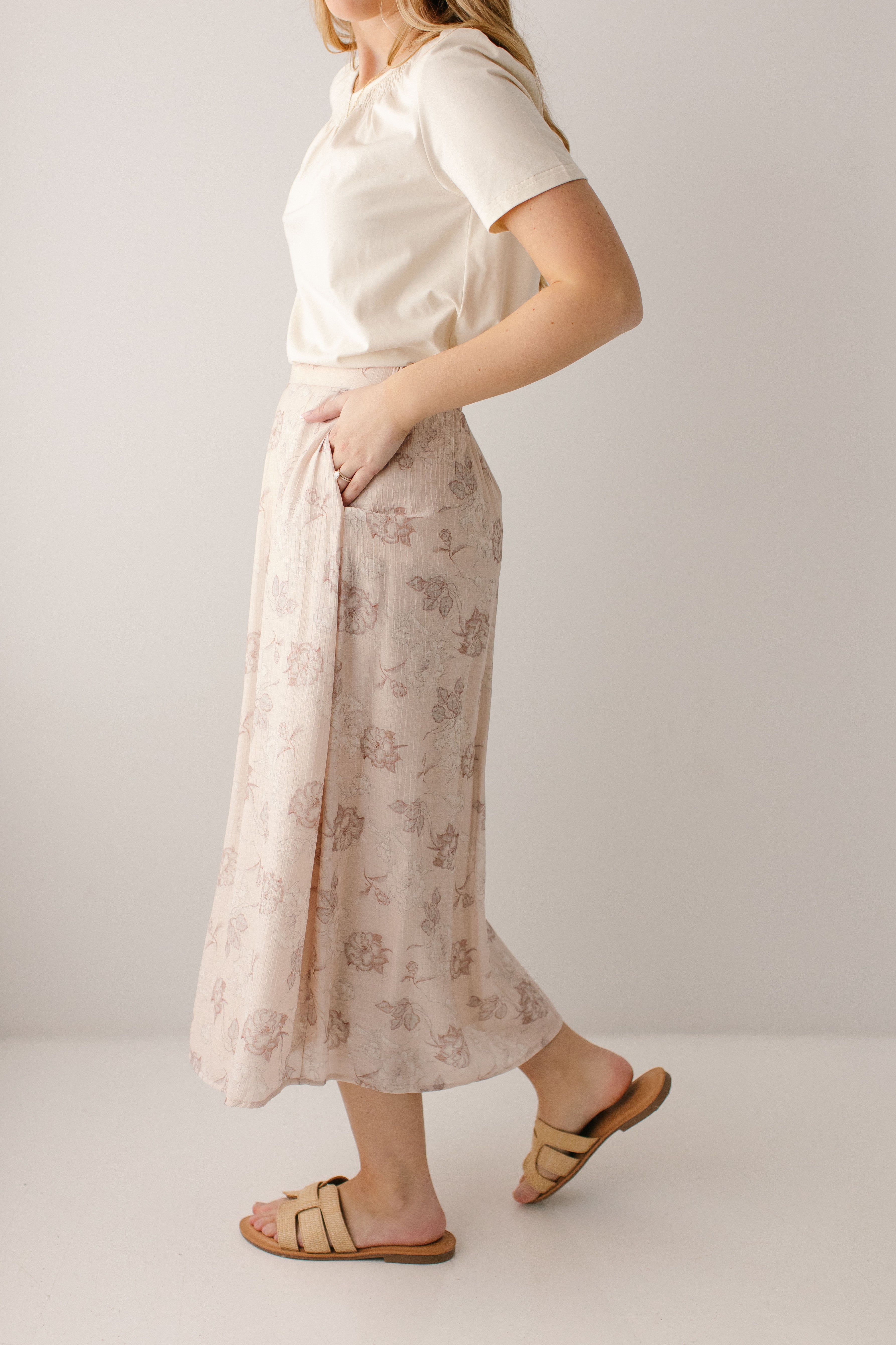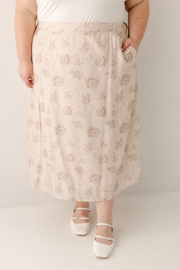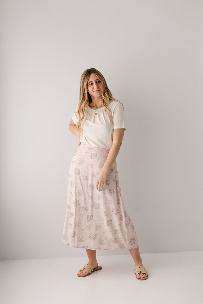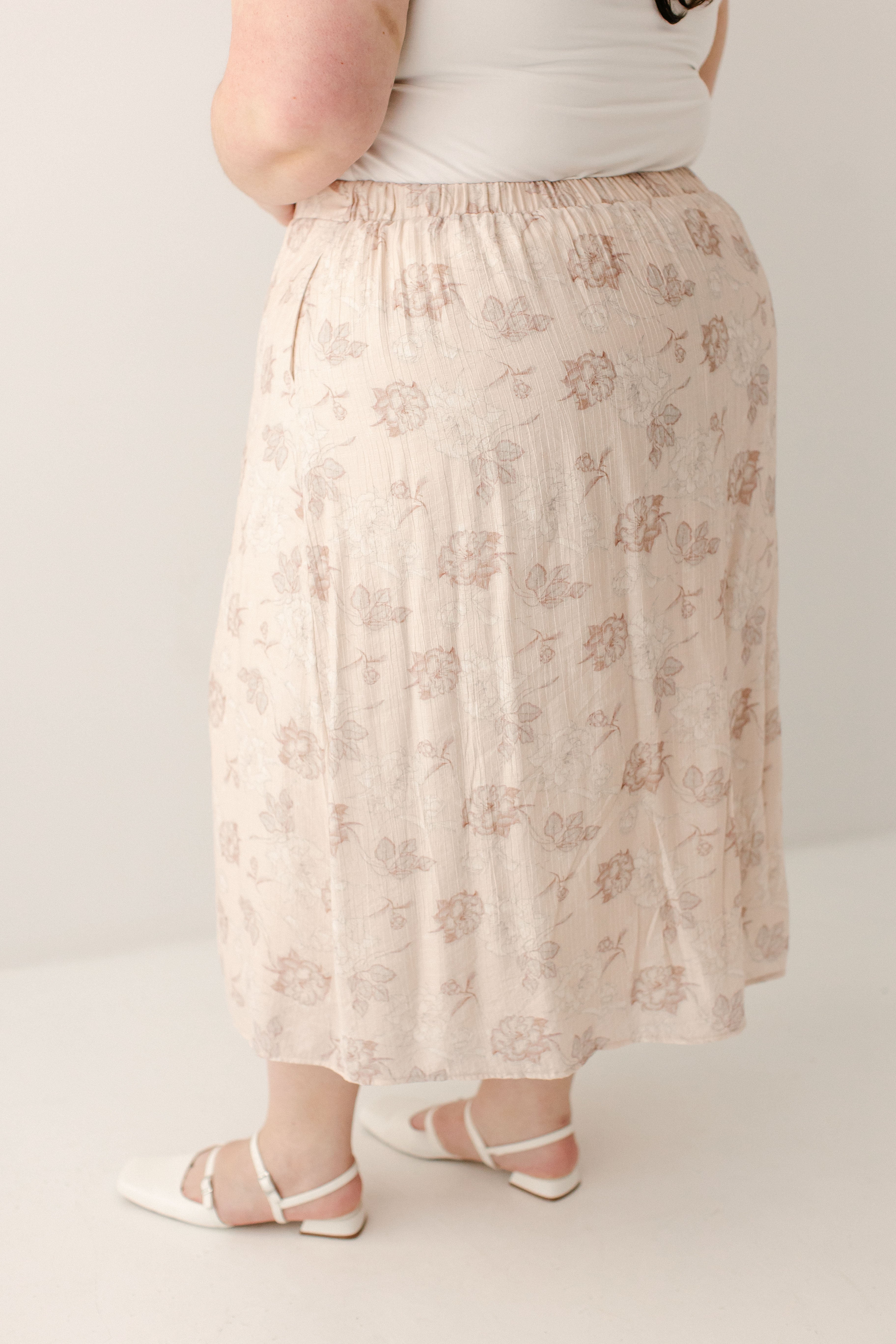 Fill your closet with spring florals with the 'Amour' Rose Print Midi Slip Skirt! Featuring a beautiful subtle rose print detail in a light blush shade, partial elastic waistband, slight A-line design for ease of movement, and full lining, this is a piece you’ll love to wear with all of your favorite lightweight tops. Pair with a white tee and denim jacket for the cutest outfit to go shopping