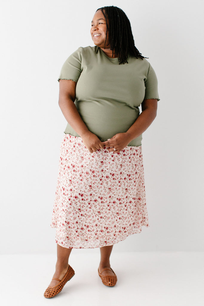 'Annette' Rose Print Midi Skirt