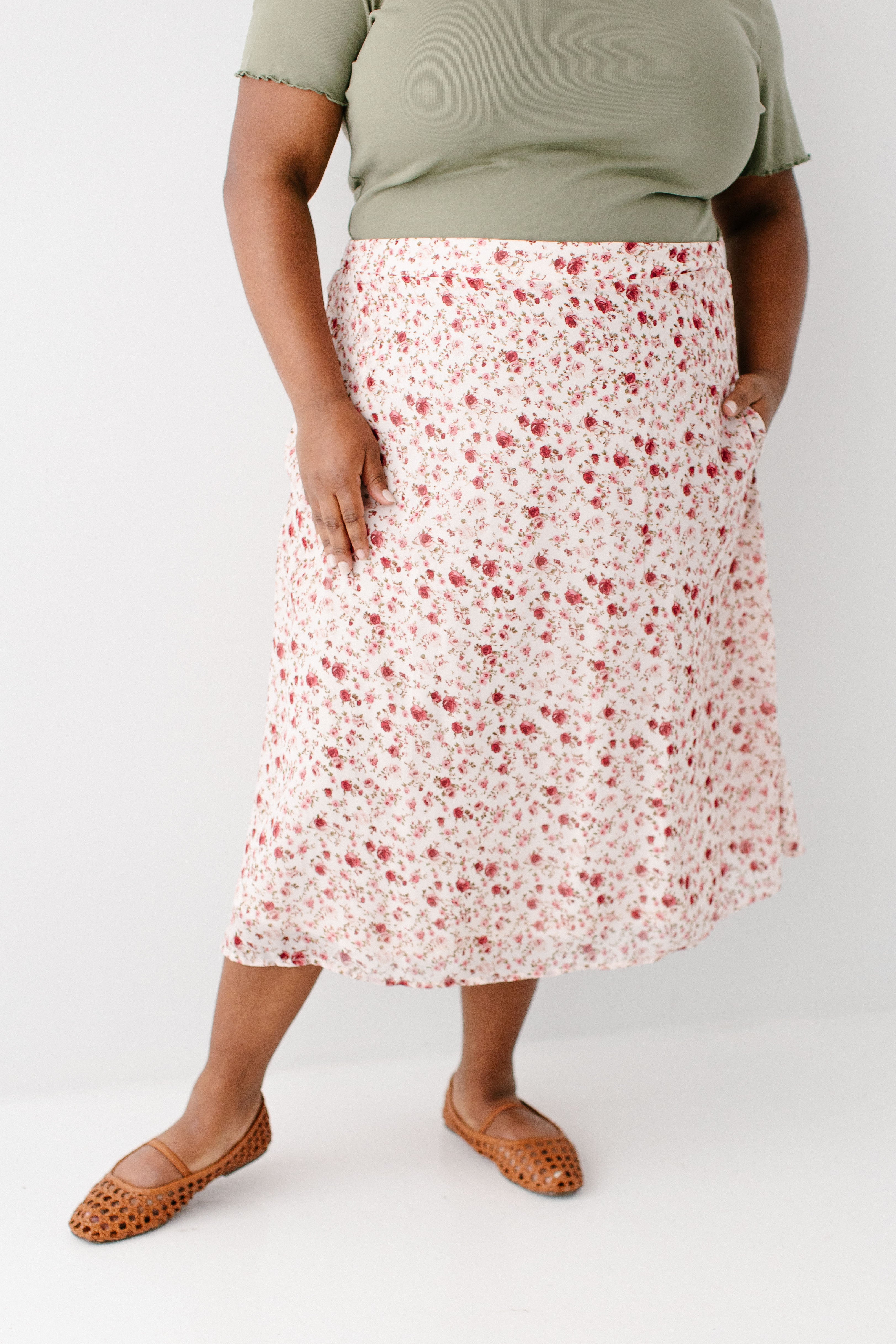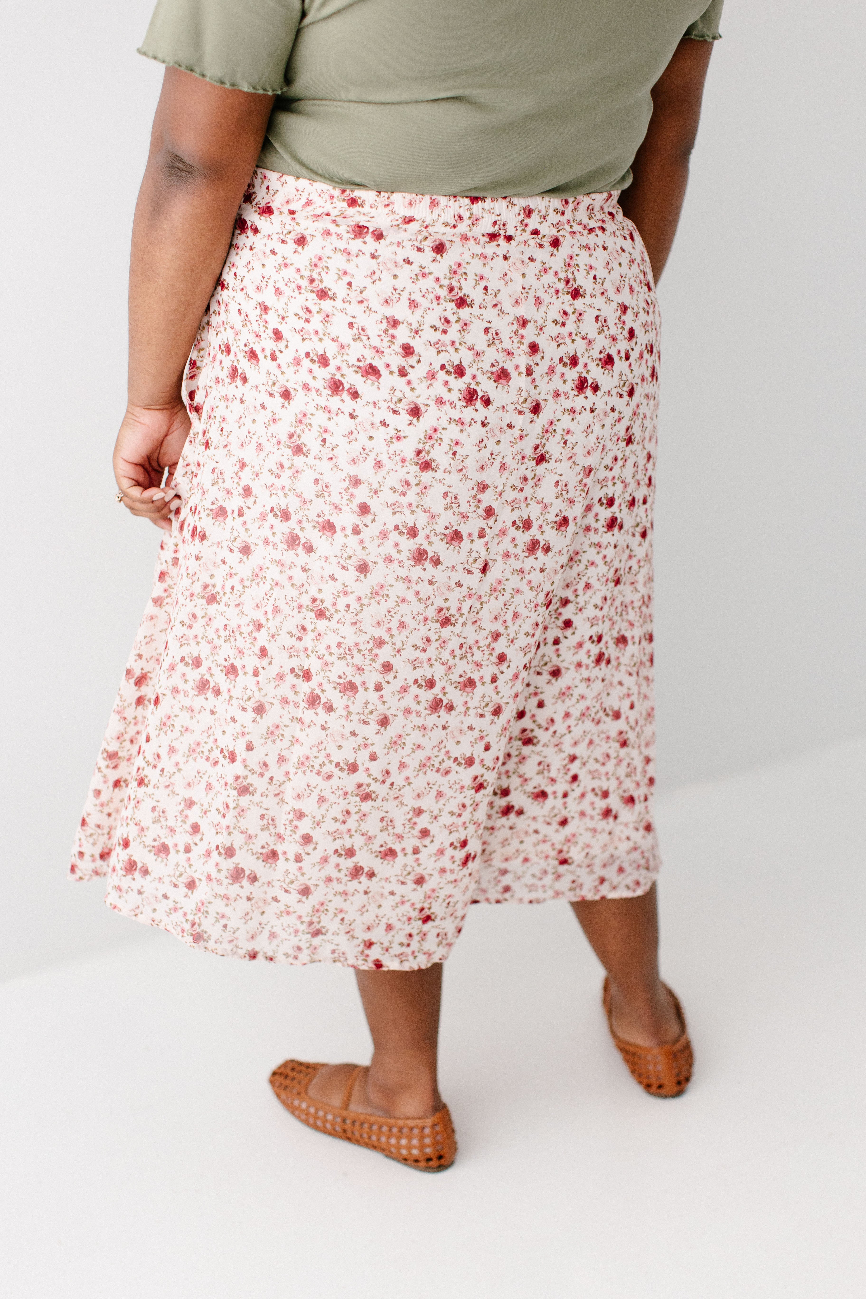 Romantic florals meet practical comfort in the 'Annette' Rose Print Midi Skirt! This dainty skirt is made from lightweight fabric and features pockets and an elasticated waistband in the back to offer you all-day comfort and style. Pair the 'Annette' with your favorite tops, jackets, or sweaters for stunning look after look! Exclusively designed by us with you in mind.