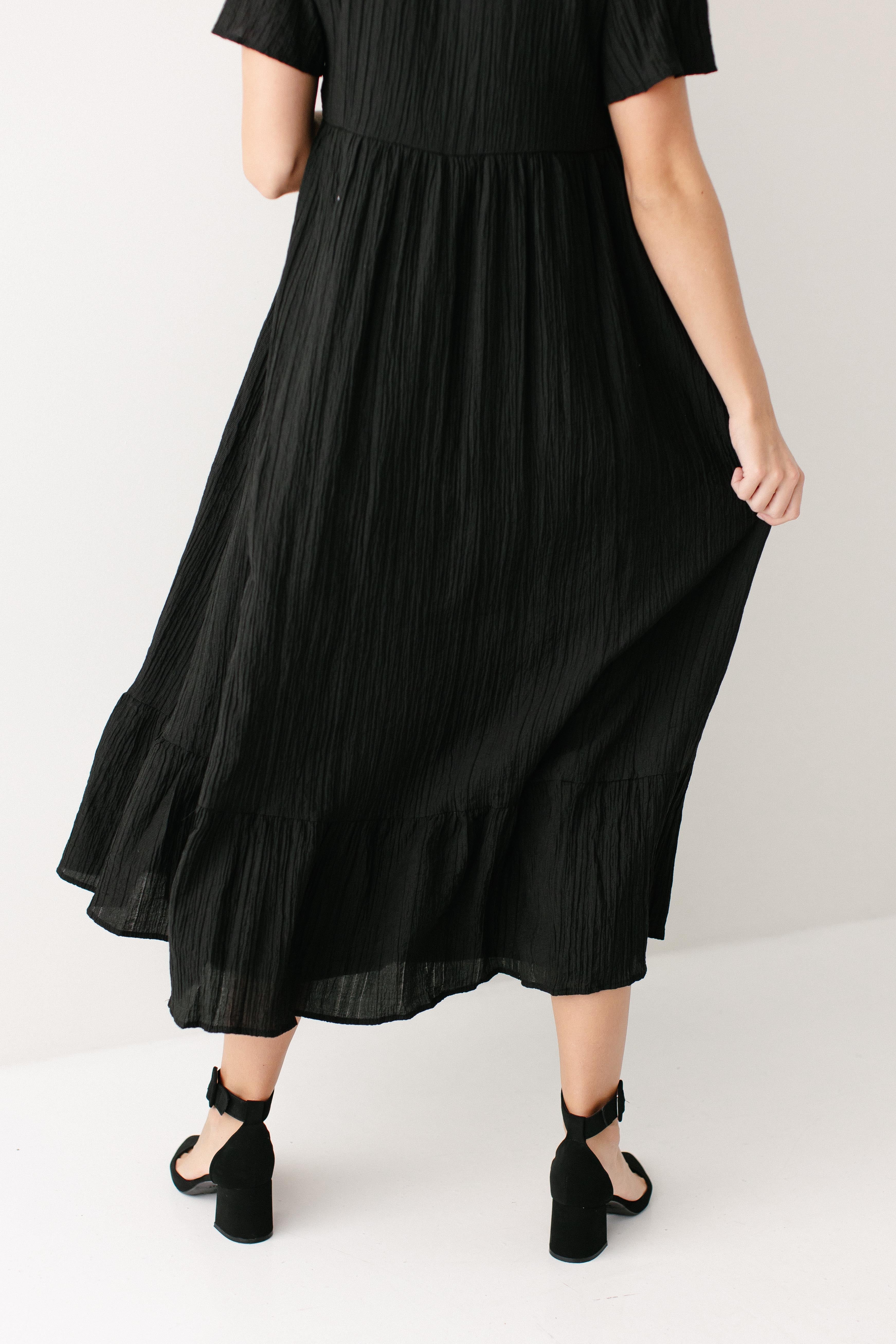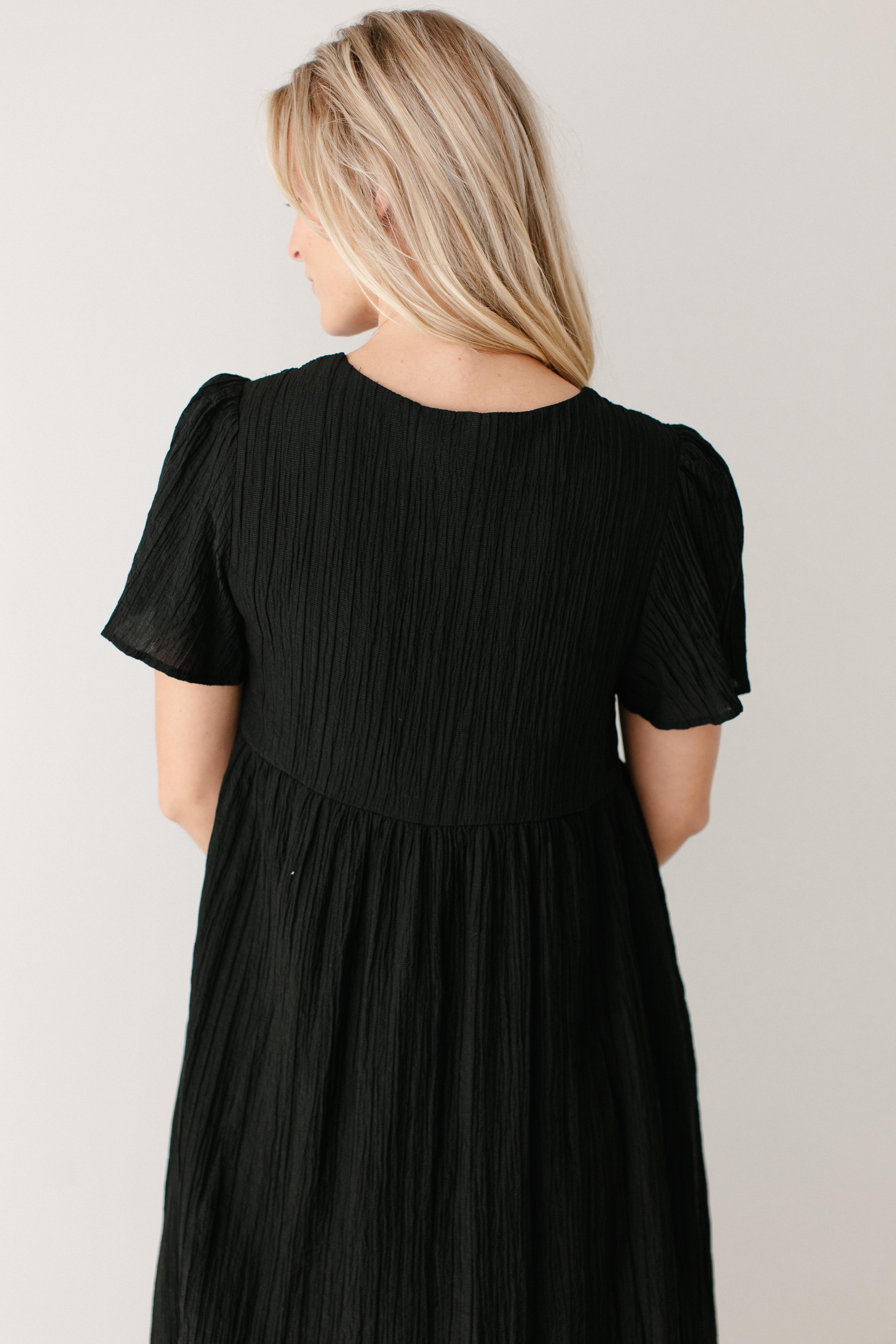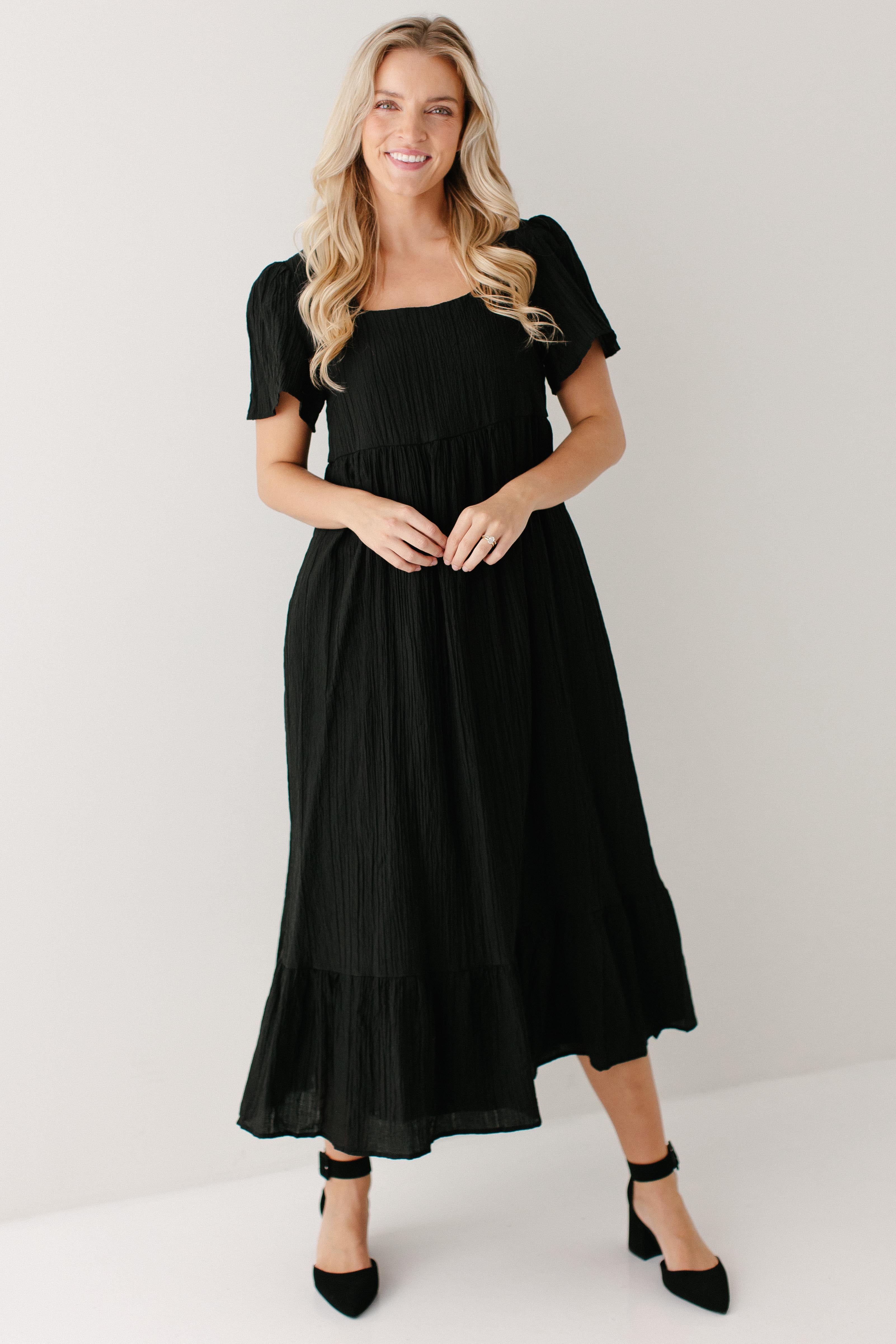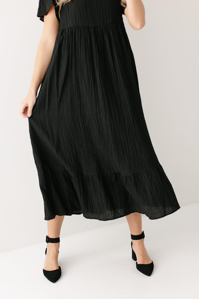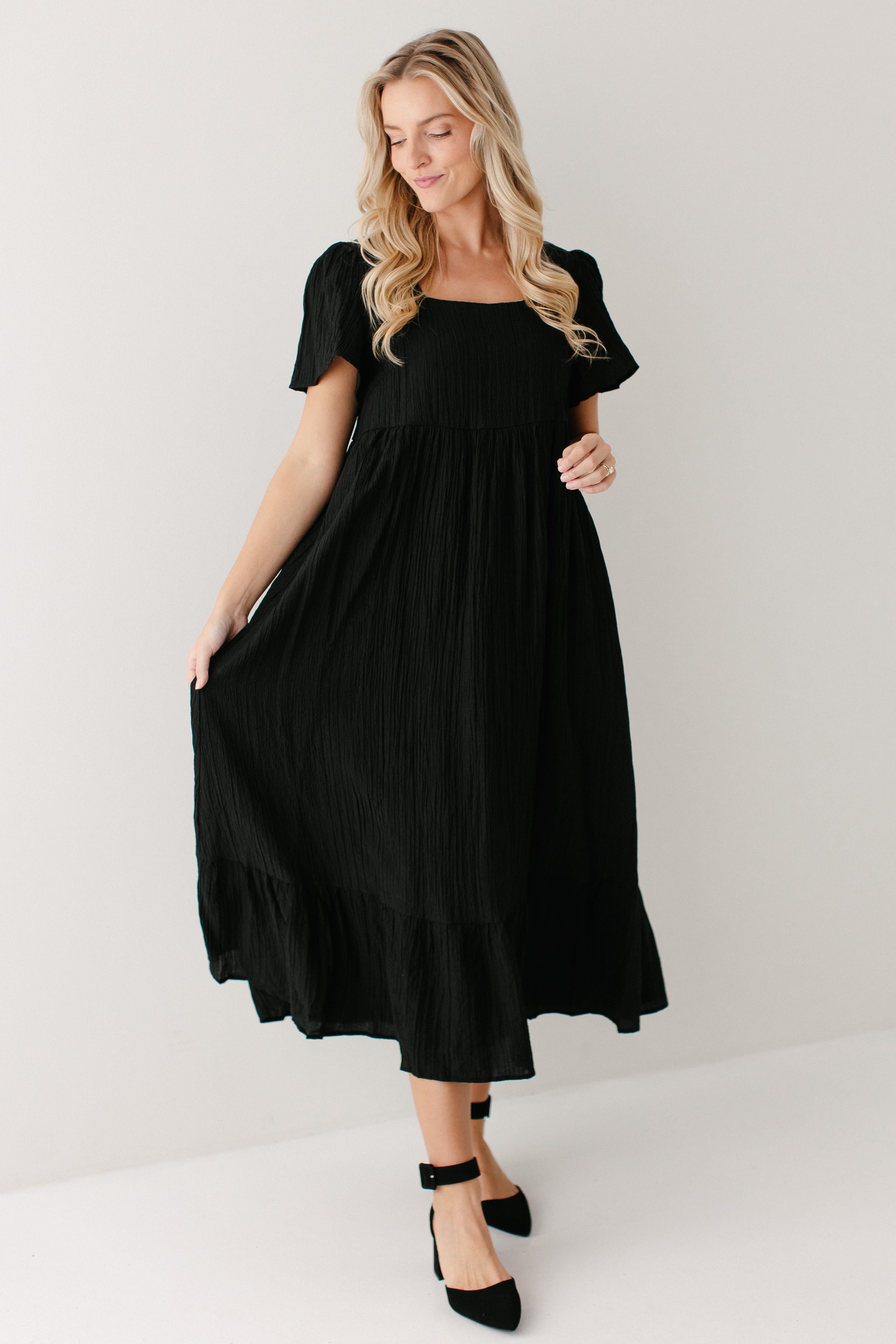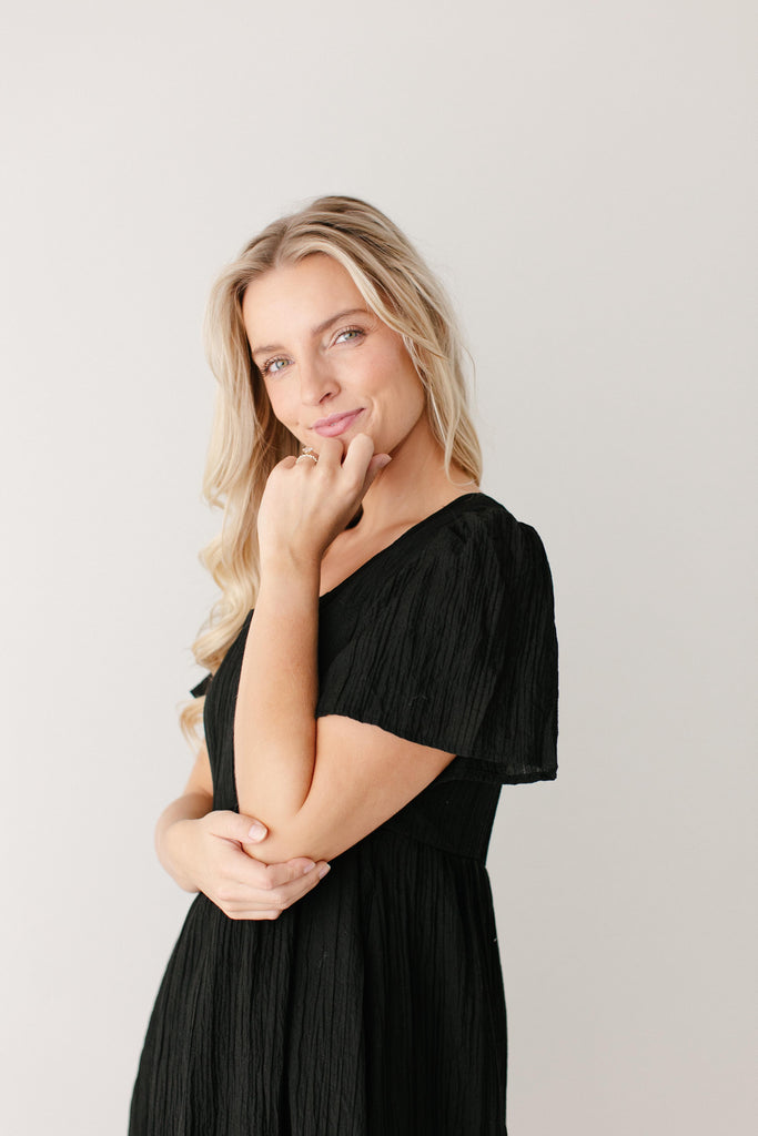 What’s not to love about this elevated take on a classic black dress? The 'Babbette' Square Neck Flutter Sleeve Midi Dress is made from textured fabric with flutter sleeves, high square neckline, empire waist, and an A-line skirt with ruffled hem detail. This is the perfect dress to wear for all of your upcoming holiday events!