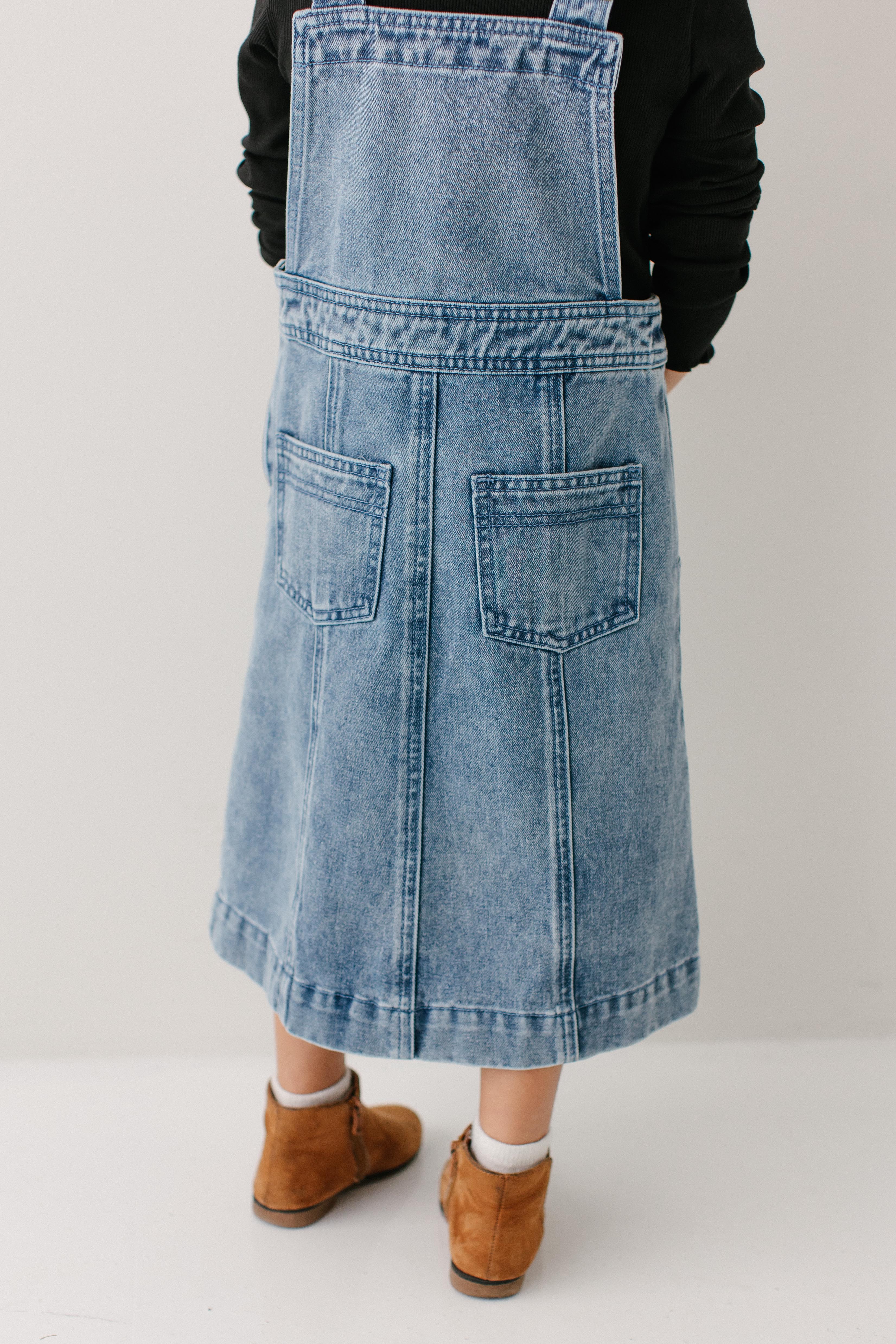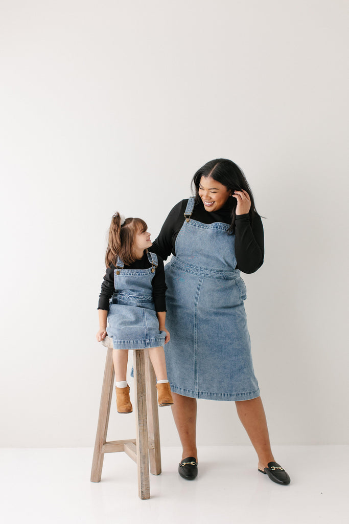 Introducing the 'Bailey' Girl Denim Overall Dress, the cutest staple for your little girl’s closet! This dress is made from 100% cotton in a medium wash denim with functional front and back pockets, a-line skirt style, adjustable straps, and side zipper closure so she can have the best fit. This dress is in both girls’ and adult sizes, so you and your little one can match! Exclusively designed by us with you in mind.