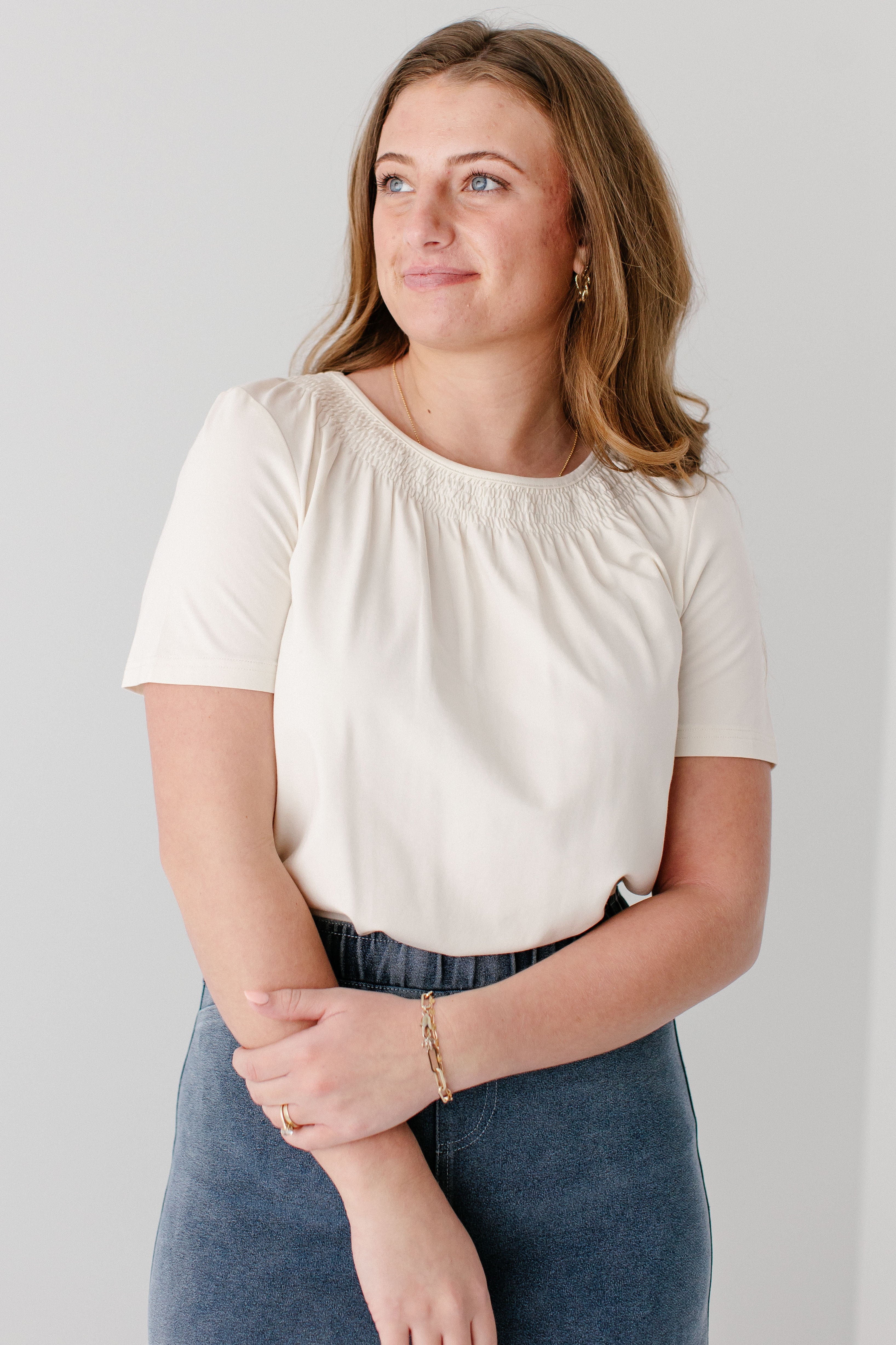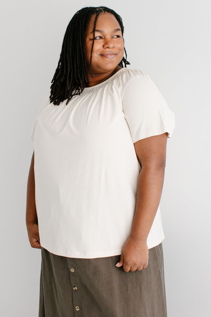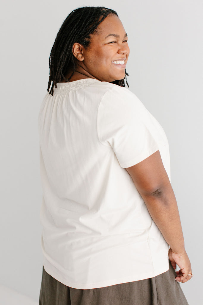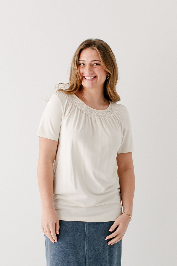 'Bethany' Smocked Detail Short Sleeve Top