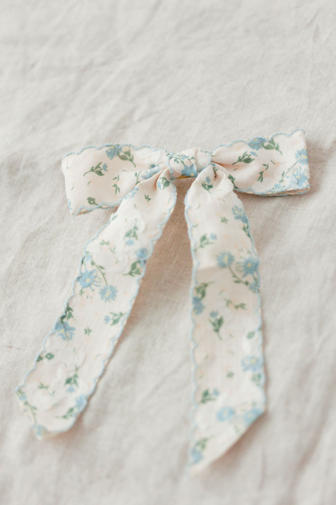 Blue Floral Bow Barrette