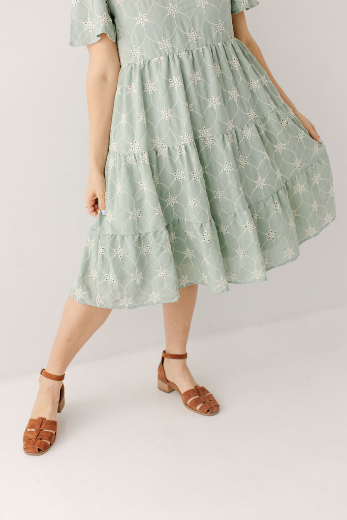 'Brisa' Eyelet Tiered Midi Dress