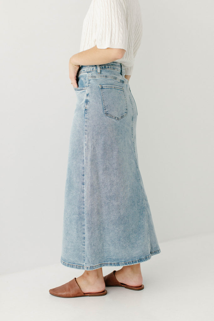 'Brooklyn' Stretch Denim Maxi Skirt in Vintage Wash