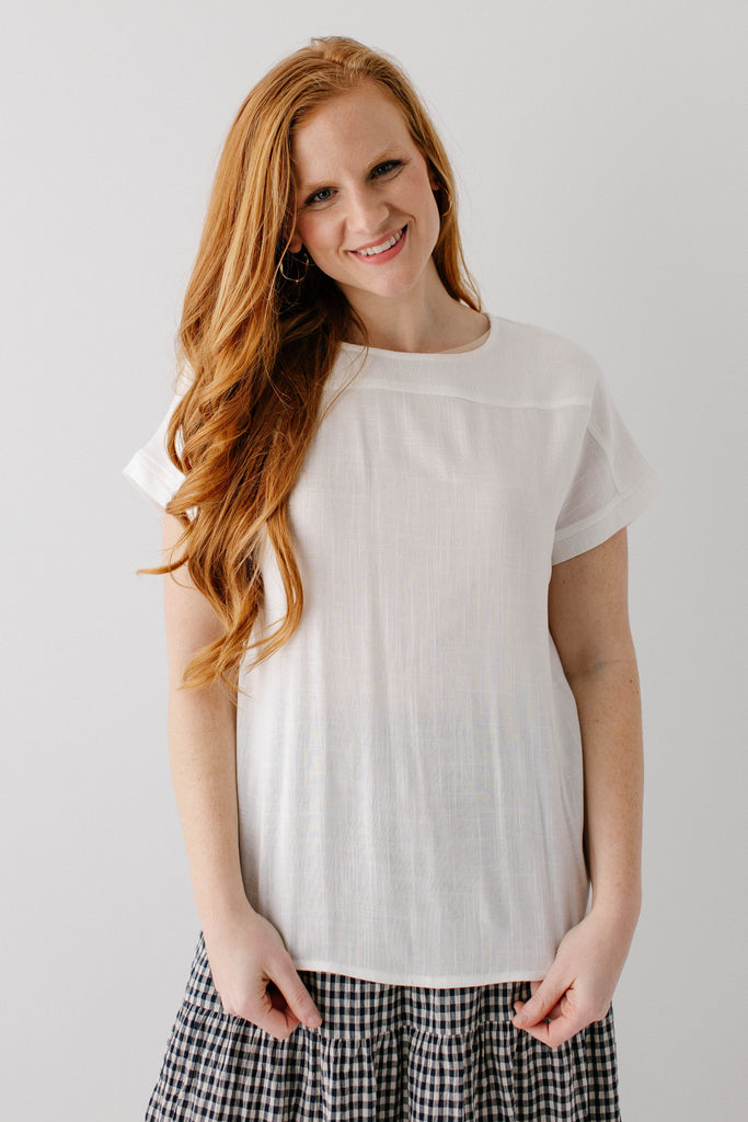 When you need the perfect transitional top, the 'Callie' Textured Dolman Sleeve Top provides that ideal balance. This classic white top in exclusive sizing is perfect to layer either by itself, or under a sweater for the cooler weather. Pair with your favorite linen skirt and sandals for the perfect outfit to go shopping or to brunch. Exclusively designed by us with you in mind.