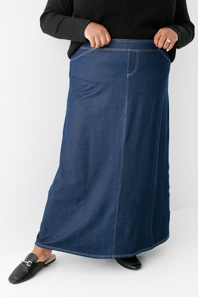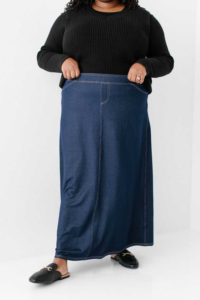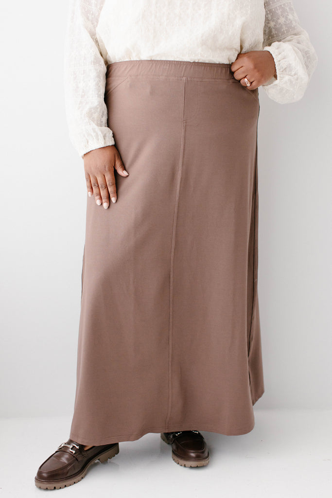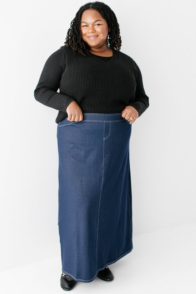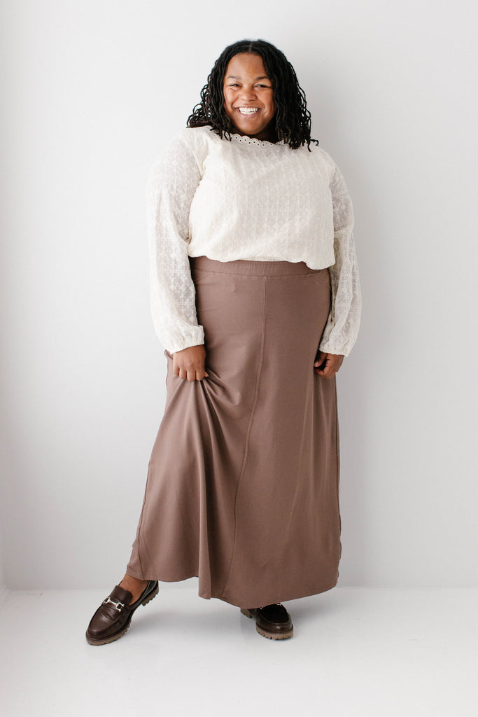 Model in Mocha & Dark Blue Height 5'6" | Wearing Size 1X