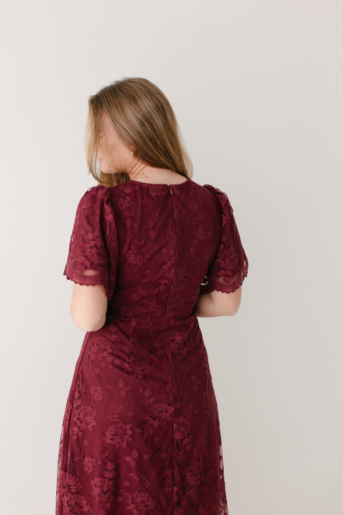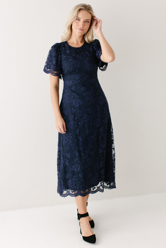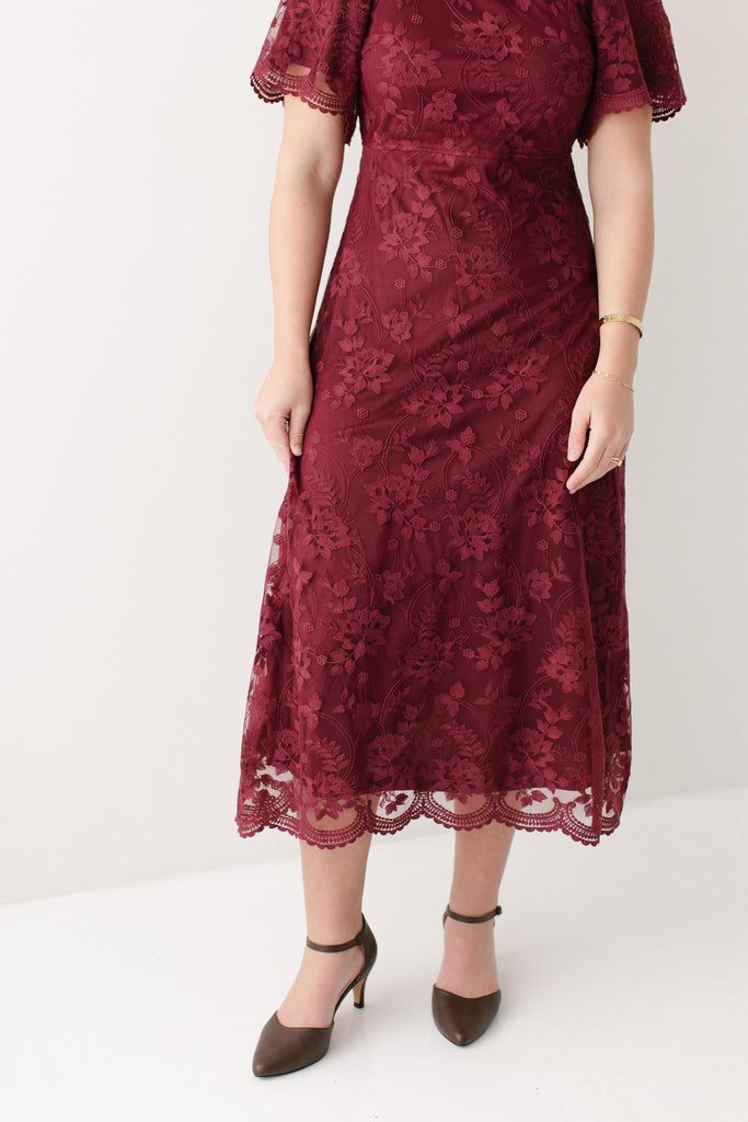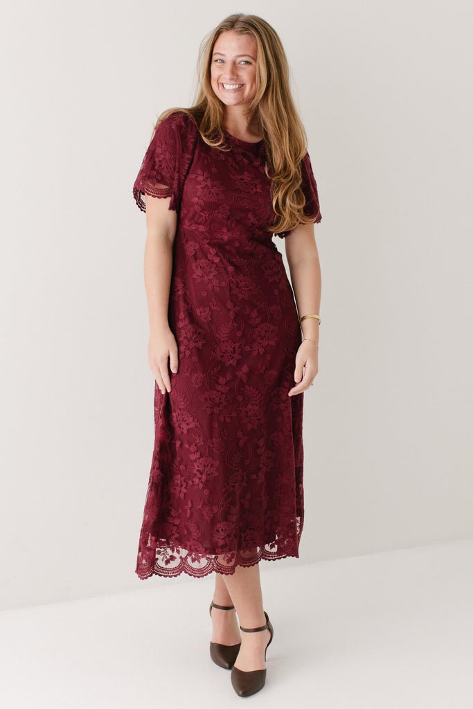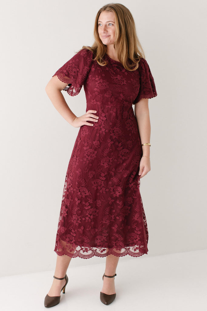 Elegance and class - only two of the many things to love about the 'Catriona' Embroidered Lace Flutter Sleeve Midi Dress! Made out of an embroidered lace overlay with scalloped edge details, modest round neck, subtle a-line silhouette, this dress has feminine details at their finest! The ‘Catriona’ also comes in both burgundy and navy - so you can choose which color you want to dress up with heels for all of your formal holiday events!
