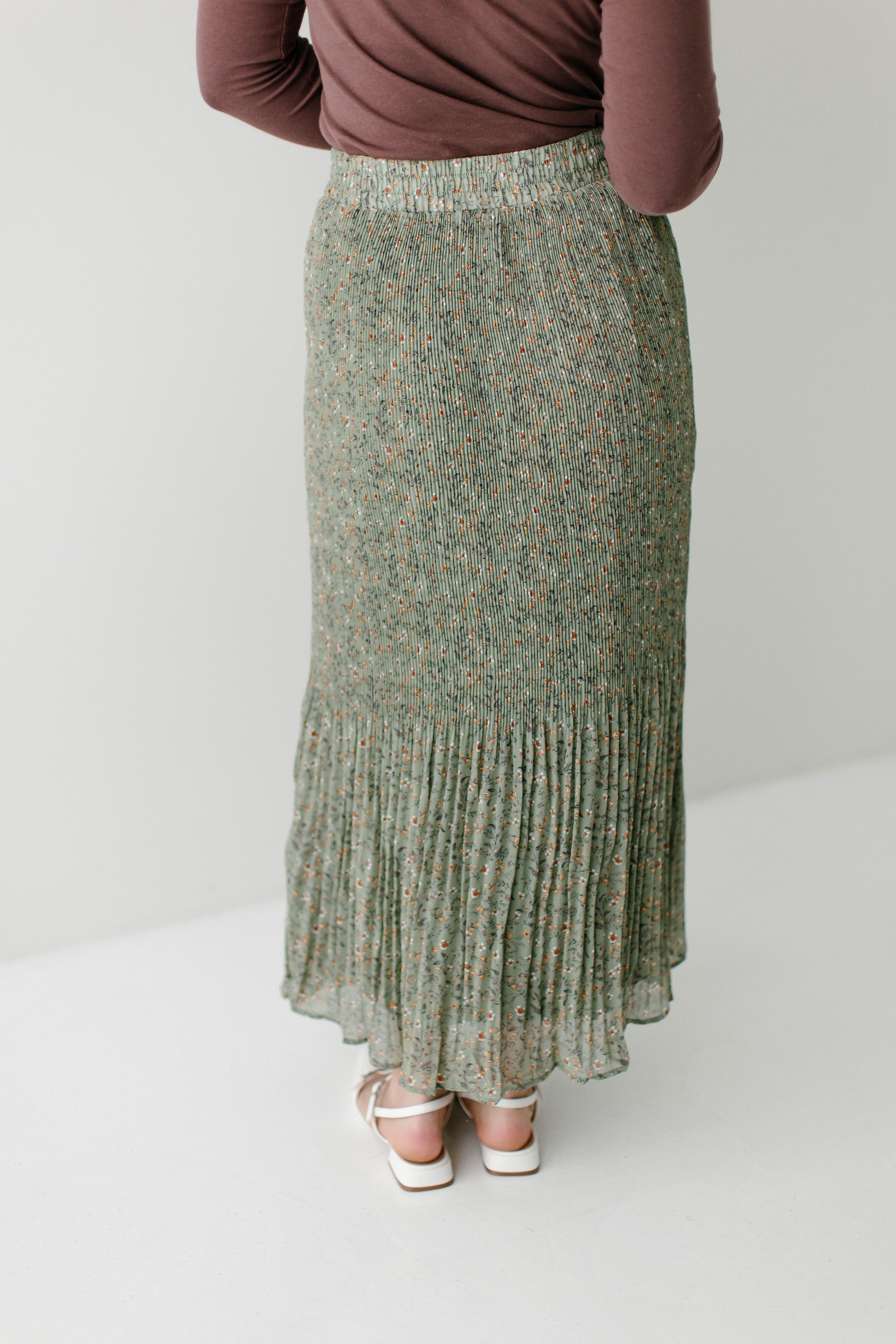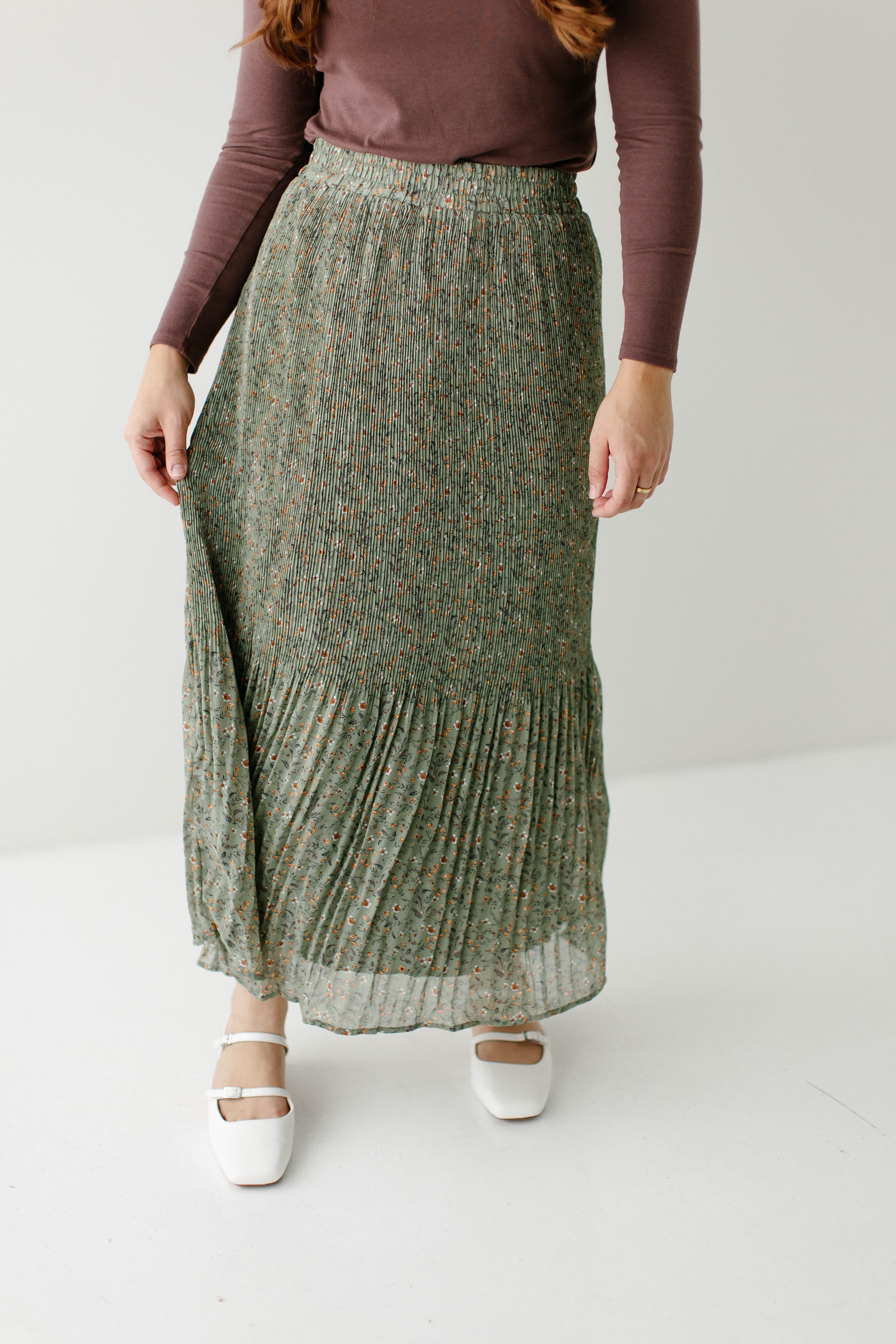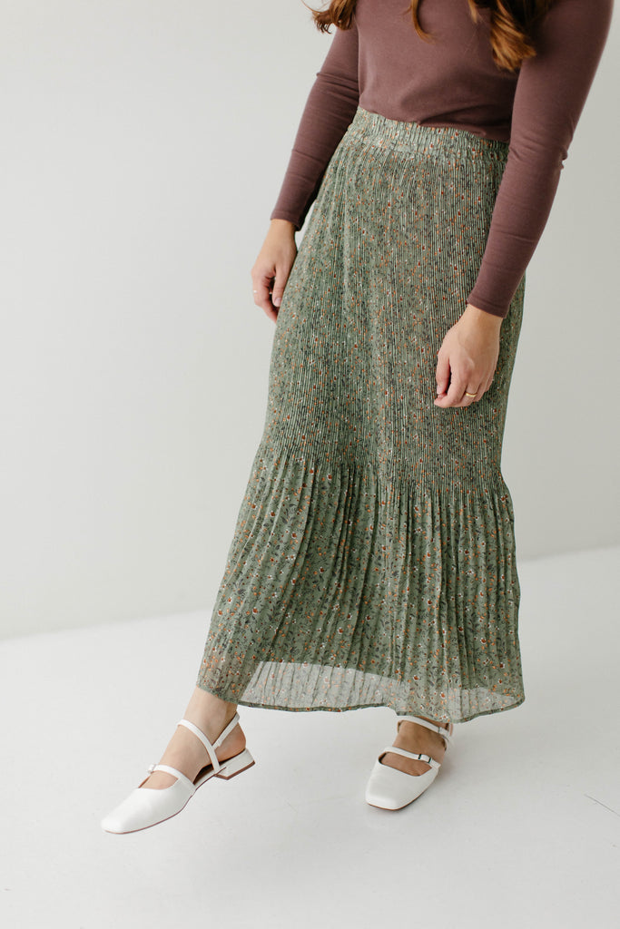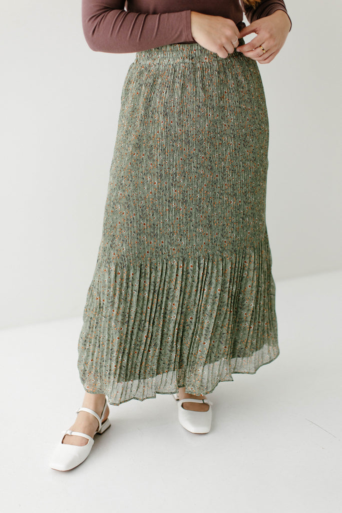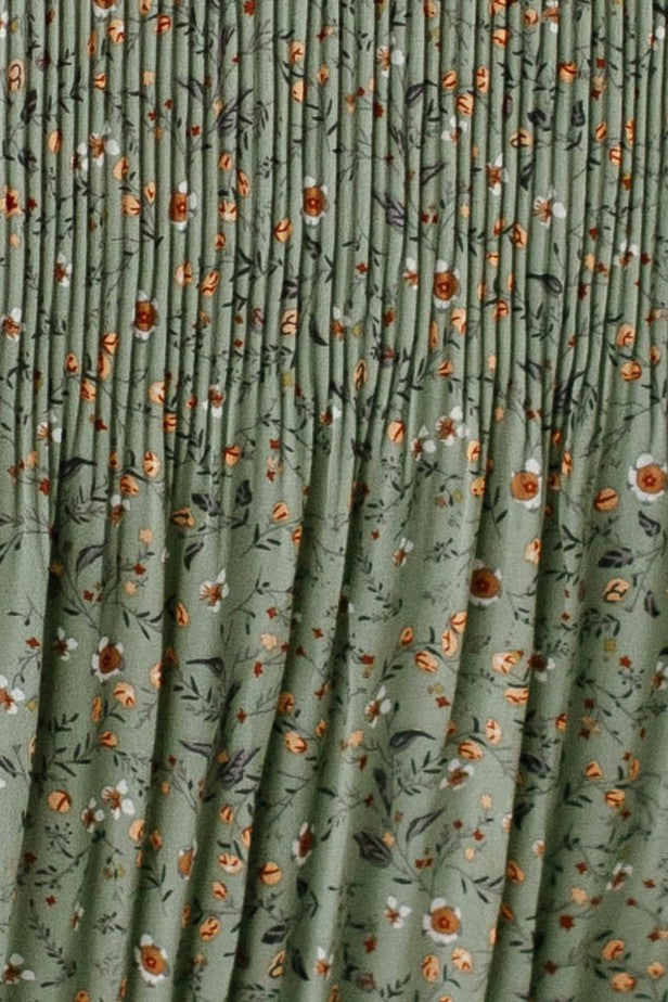 A maxi skirt in the prettiest pleated floral fabric; the 'Celine' Accordion Pleated Floral Maxi Skirt is undoubtedly to become one of your new favorite pieces! The skirt is fully lined, has an elastic waistband, and comes in a beautiful light olive shade that can be transitioned into any season of the year. Pair it with a simple top for an elevated look you can wear out shopping or to church! Exclusively designed by us with you in mind.