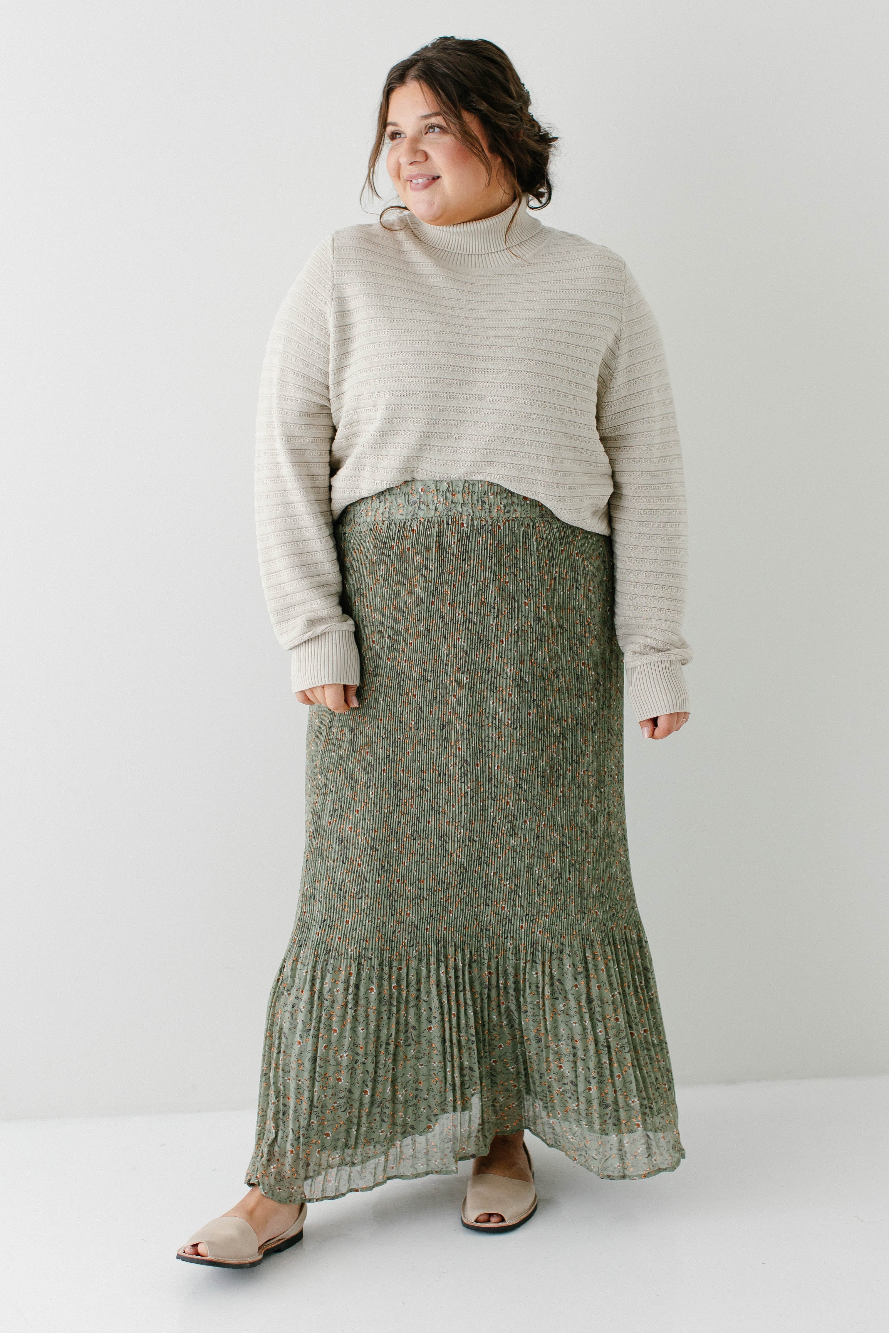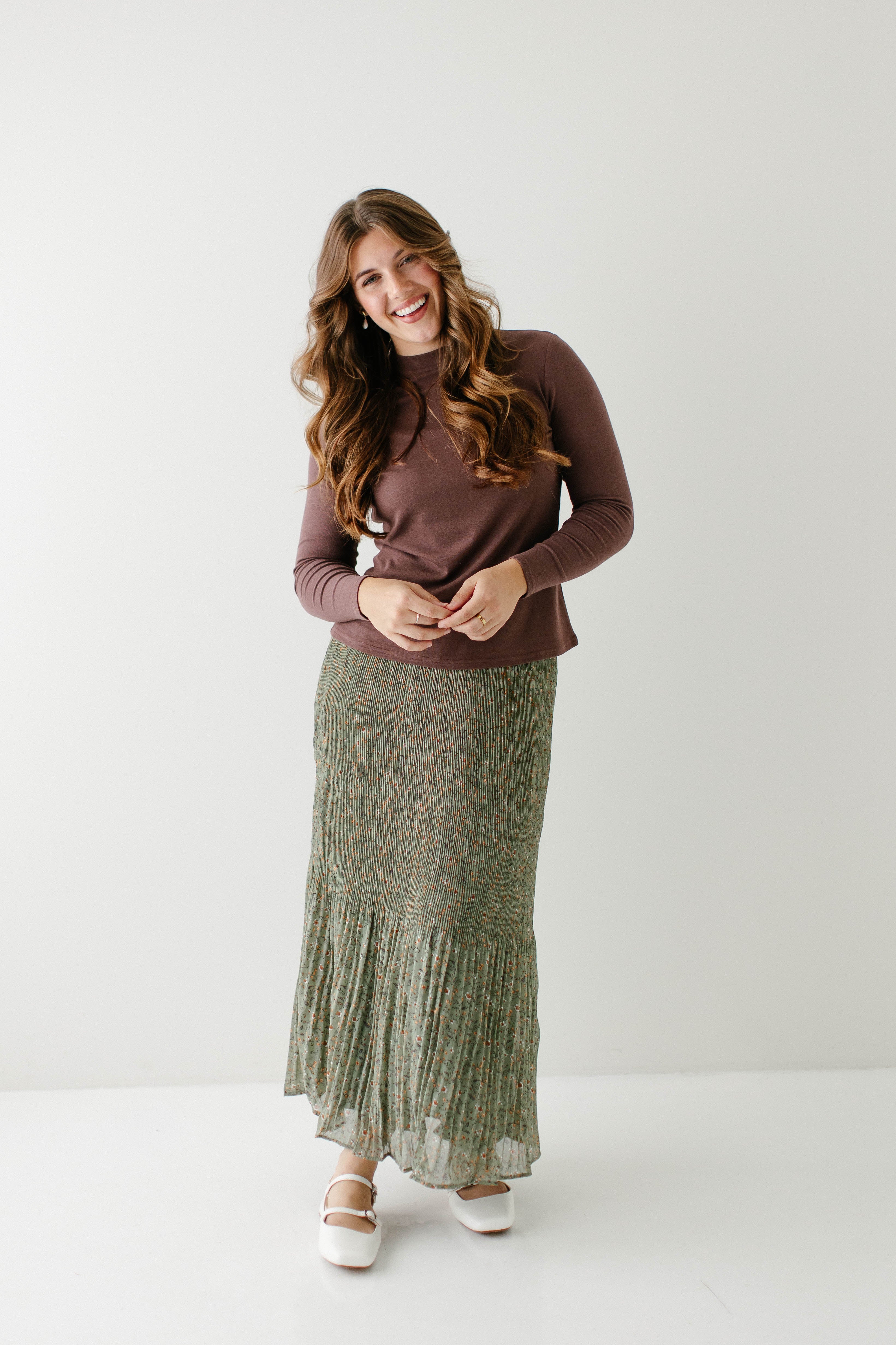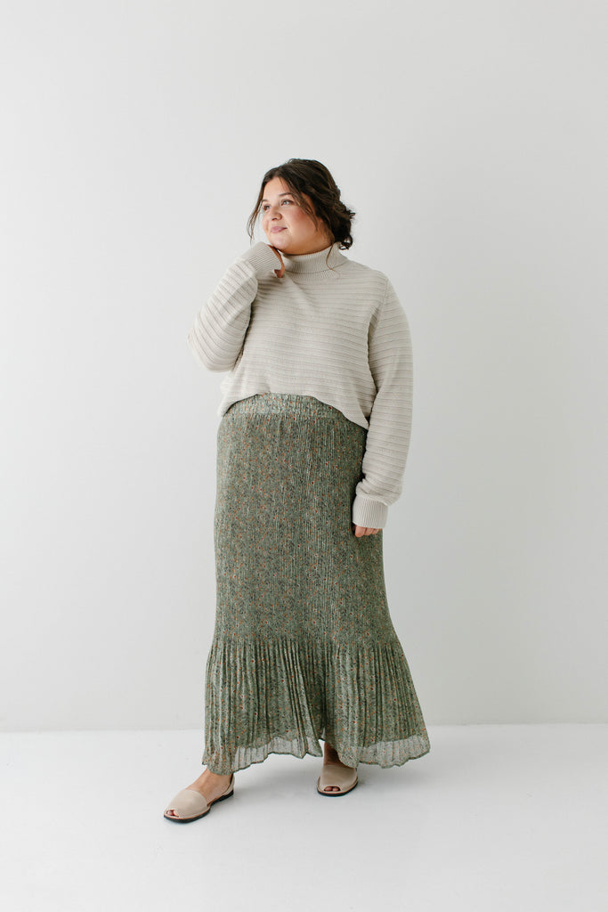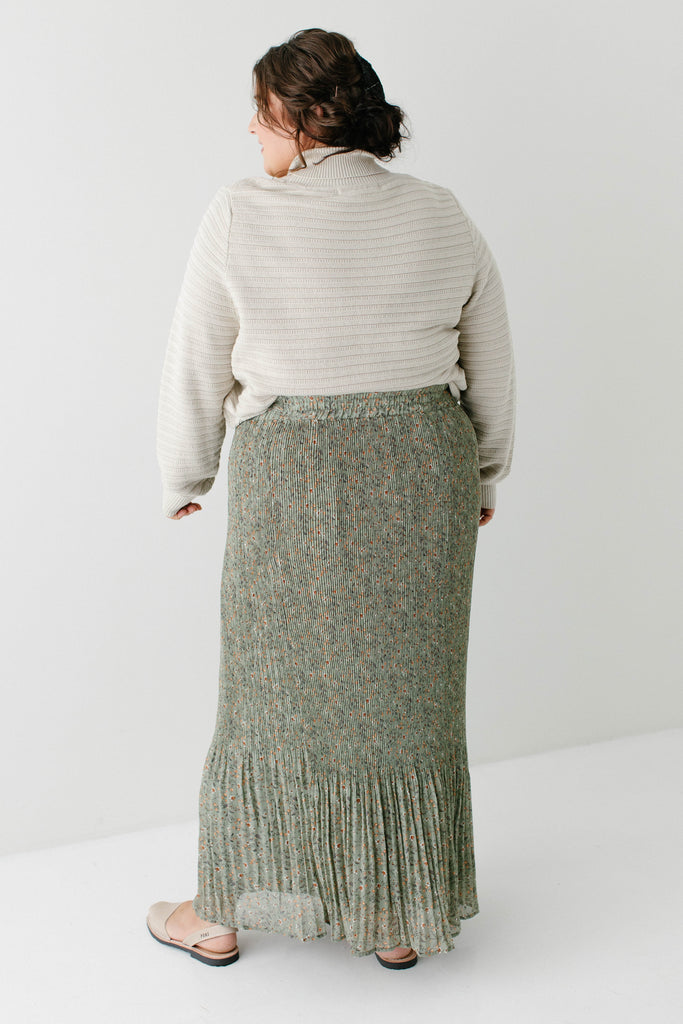A maxi skirt in the prettiest pleated floral fabric; the 'Celine' Accordion Pleated Floral Maxi Skirt is undoubtedly to become one of your new favorite pieces! The skirt is fully lined, has an elastic waistband, and comes in a beautiful light olive shade that can be transitioned into any season of the year. Pair it with a simple top for an elevated look you can wear out shopping or to church! Exclusively designed by us with you in mind.
