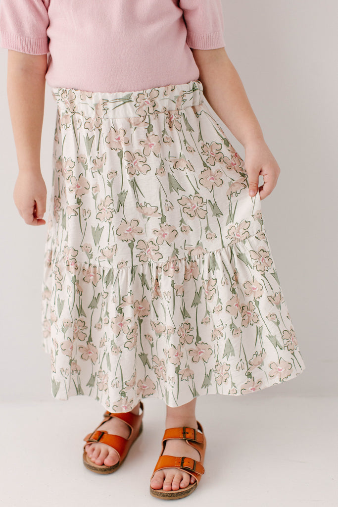 'Eloise' Girl Floral Print Midi Skirt