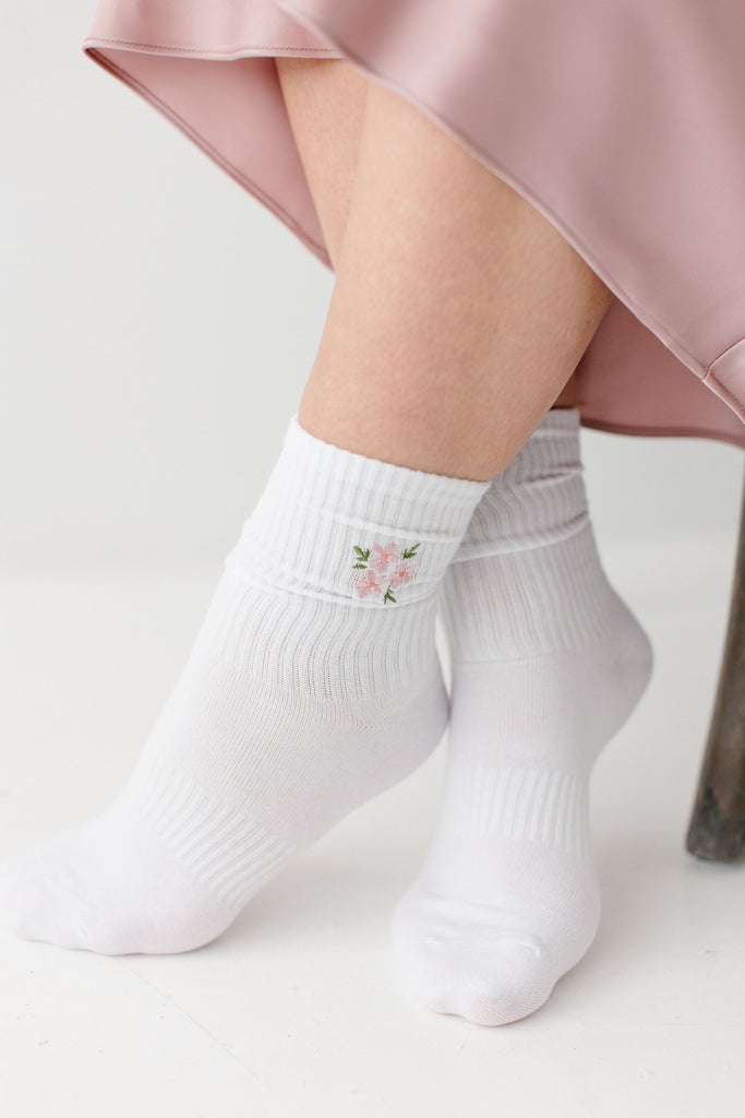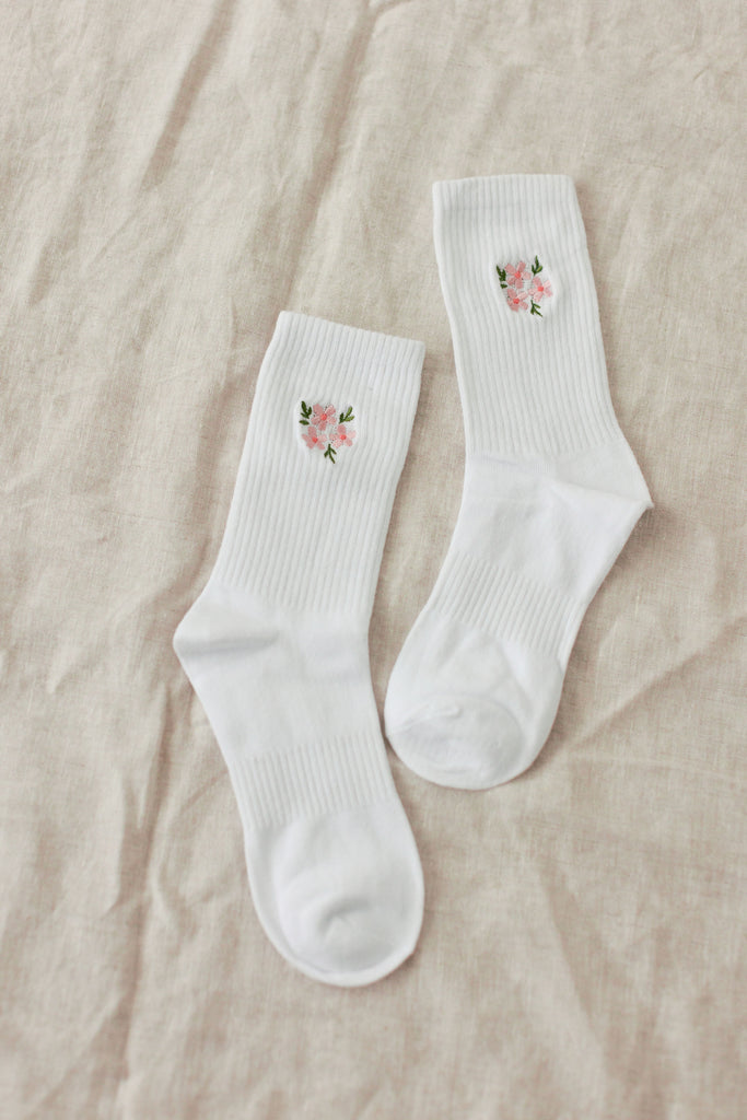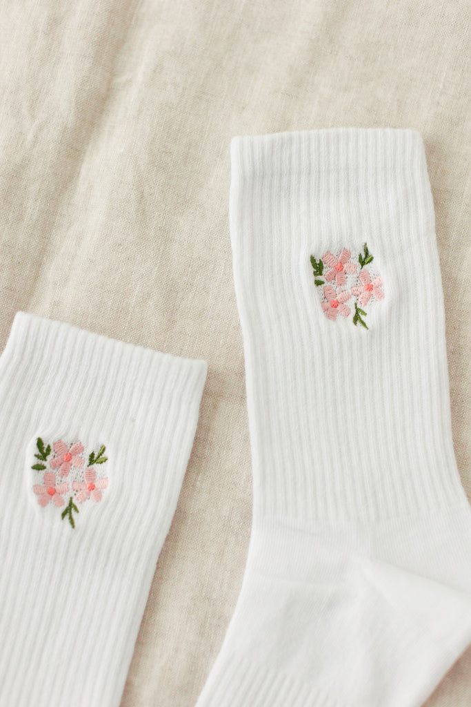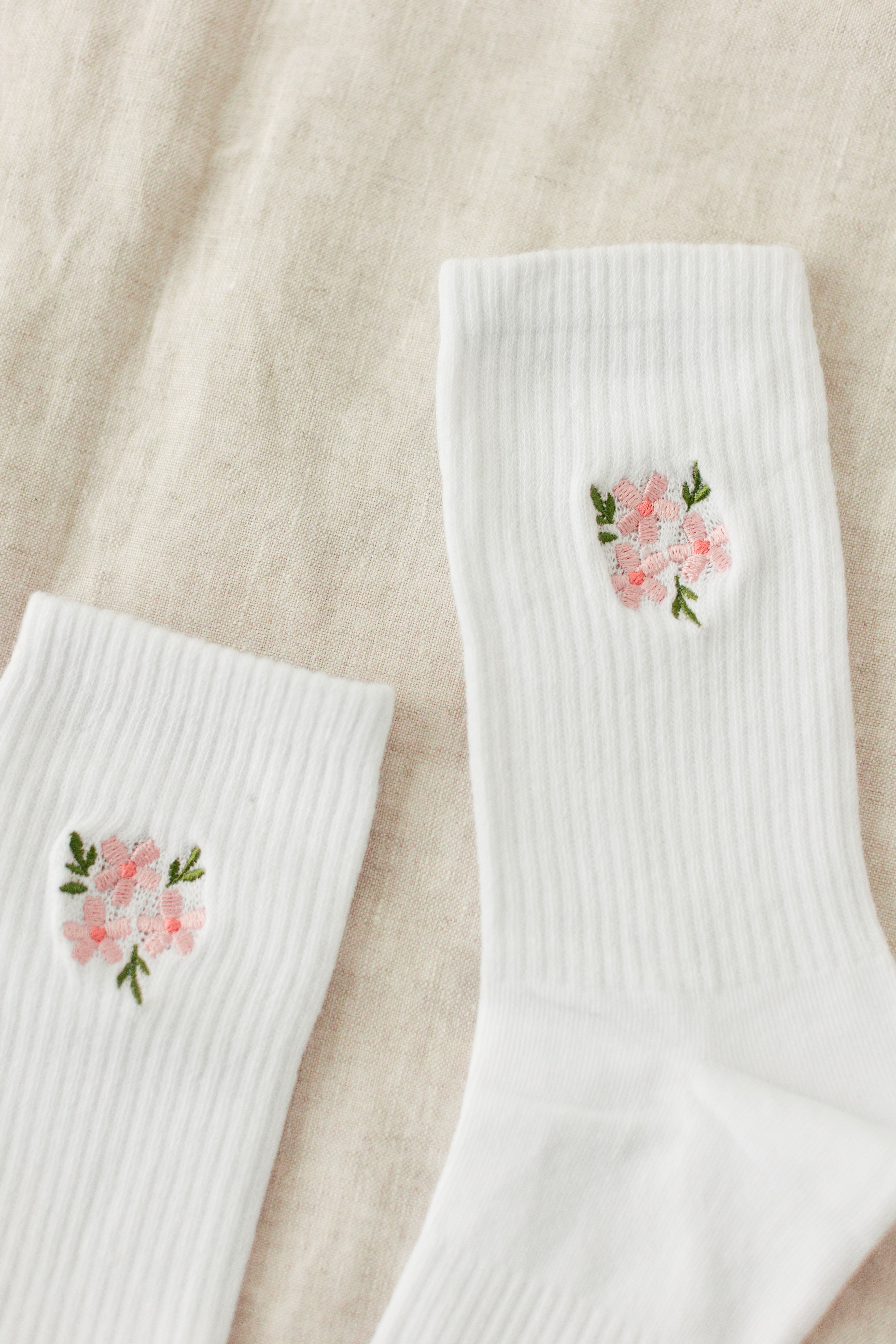 Embroidered Floral Crew Socks