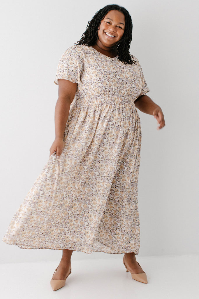 'Felicity' Floral Print Smocked Waist Maxi Dress