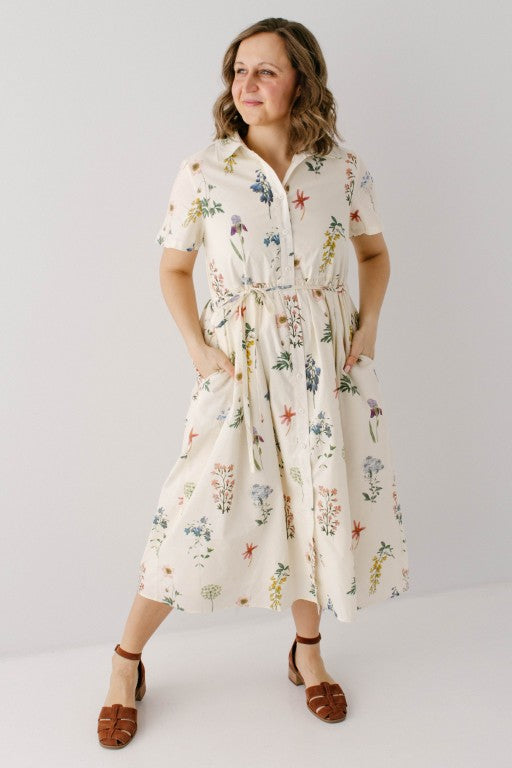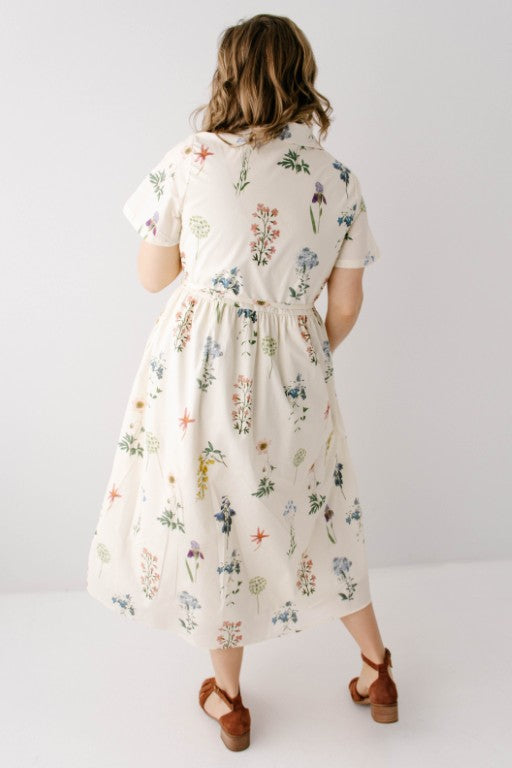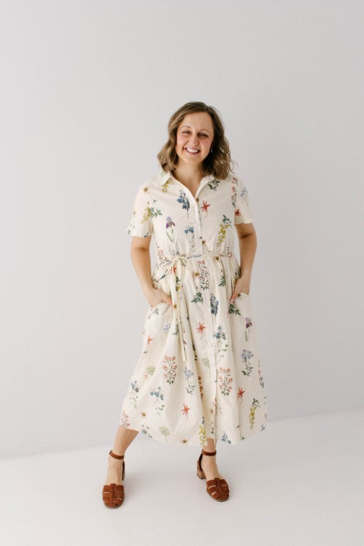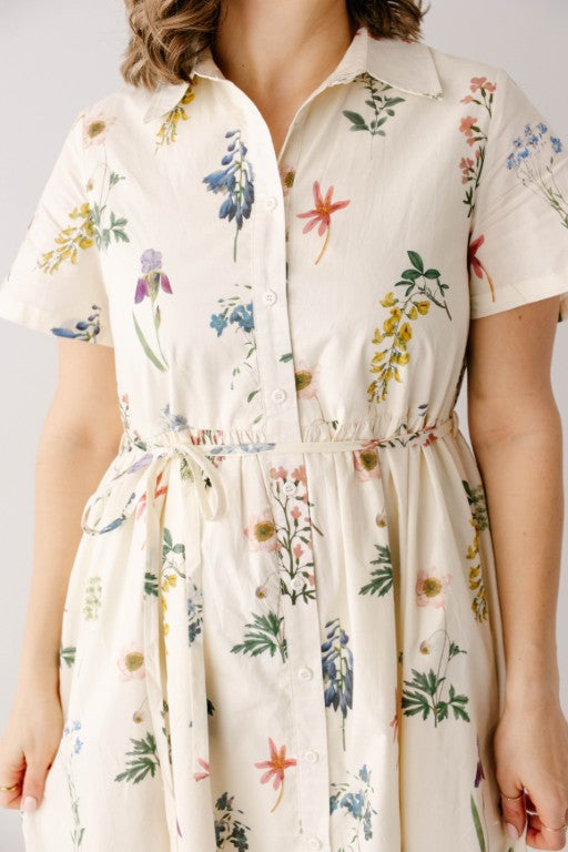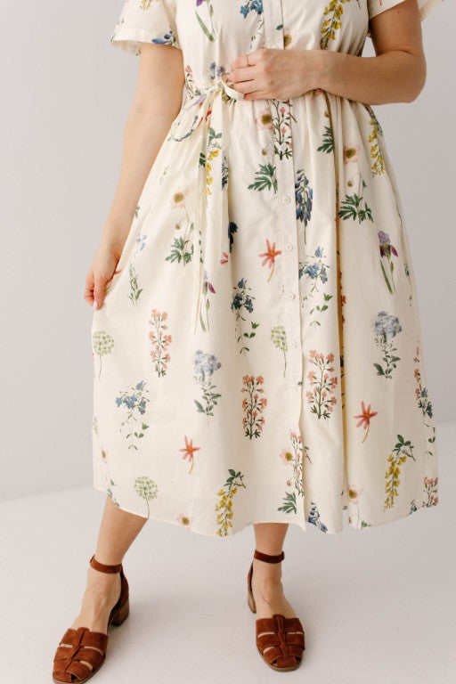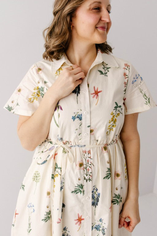 Meet the 'Gardenia' Floral Print Button Down Midi Dress, a fresh take on the classic floral print dress! Featuring a variety of garden and wildflower florals, a collared/functional button down silhouette, full lining, and a matching detachable belt so you can cinch the waist to your preference. The ‘Gardenia’ also features a forgiving style that is both maternity and nursing friendly, so this dress is ready to go for your next spring event or garden party!