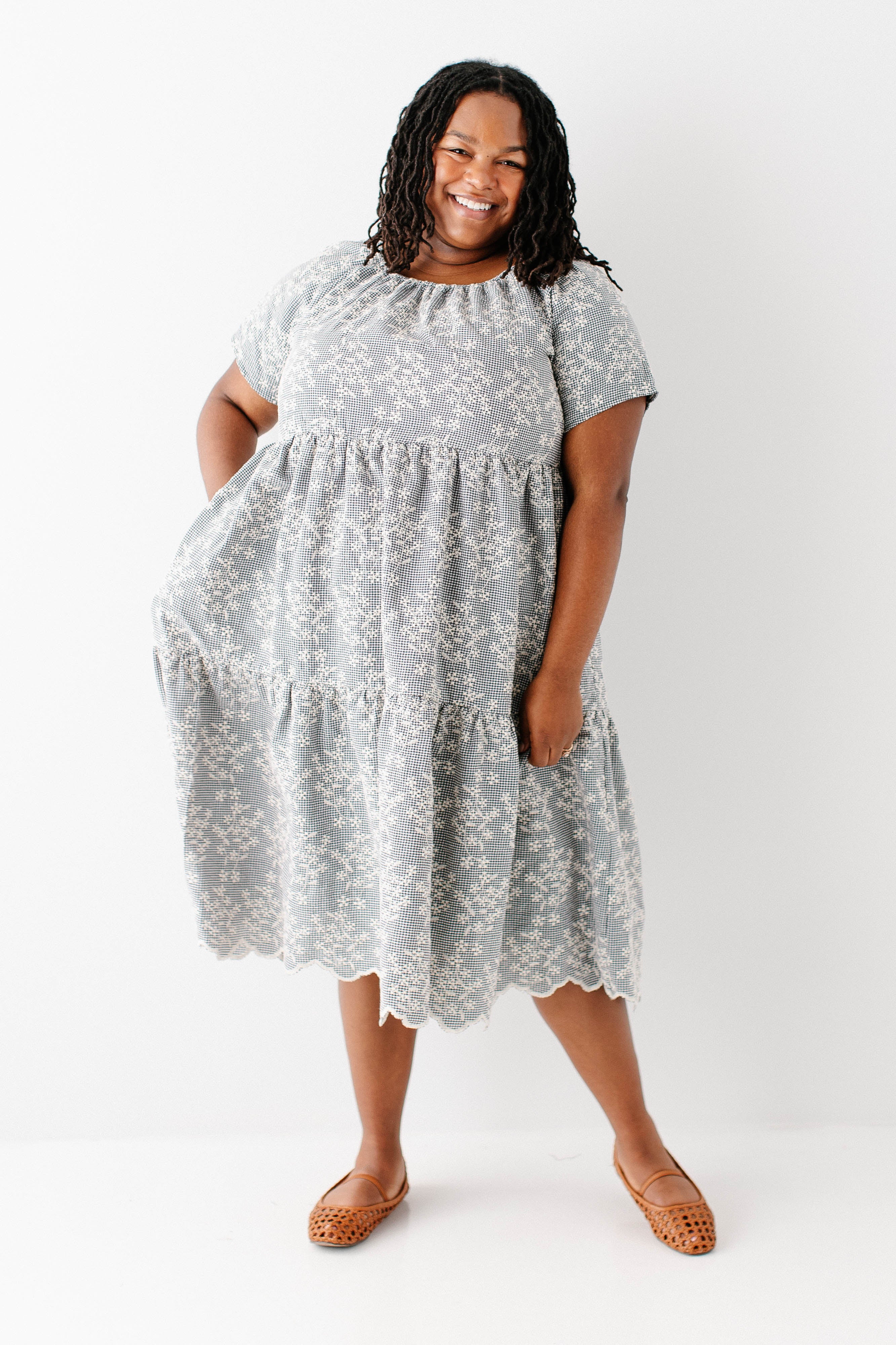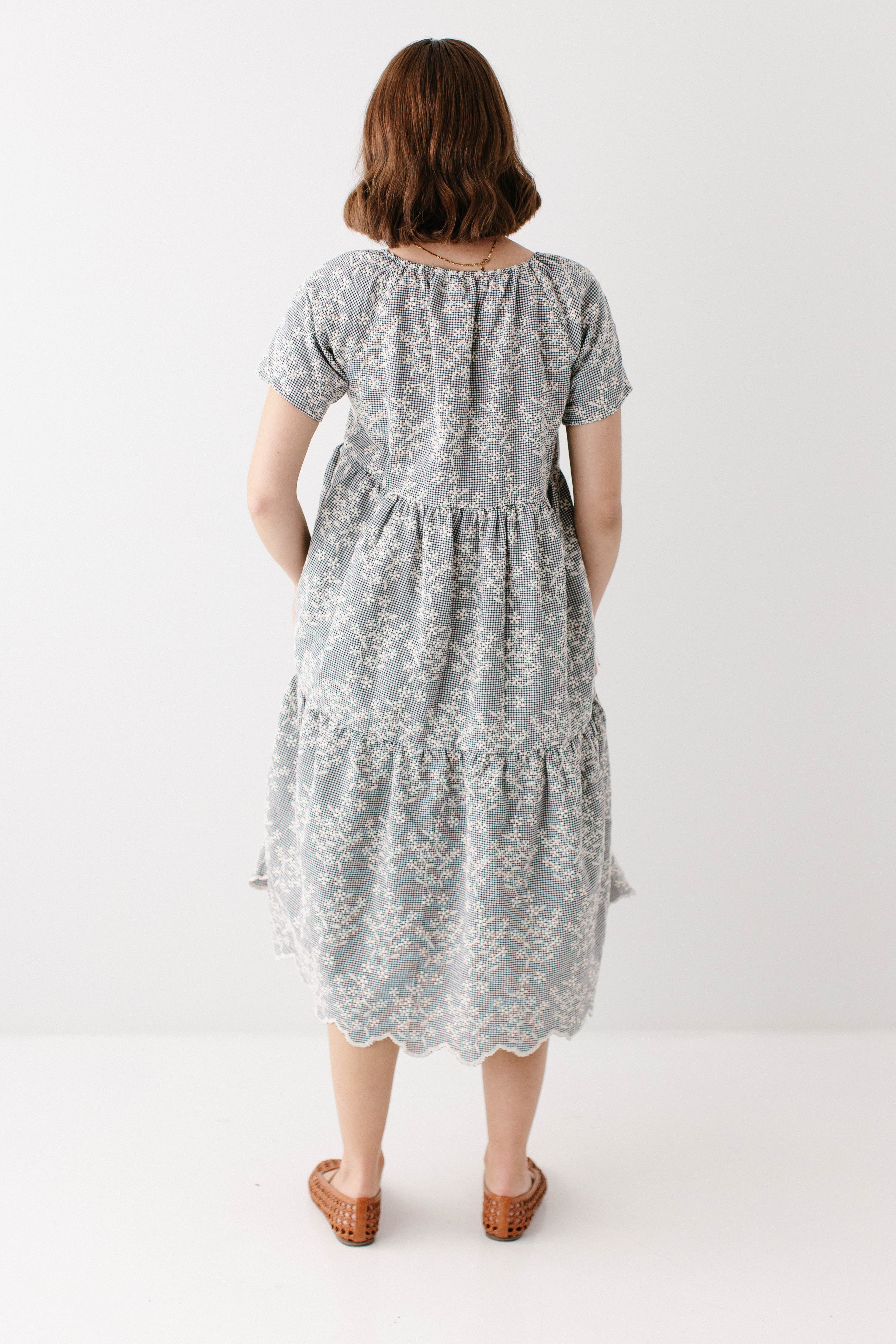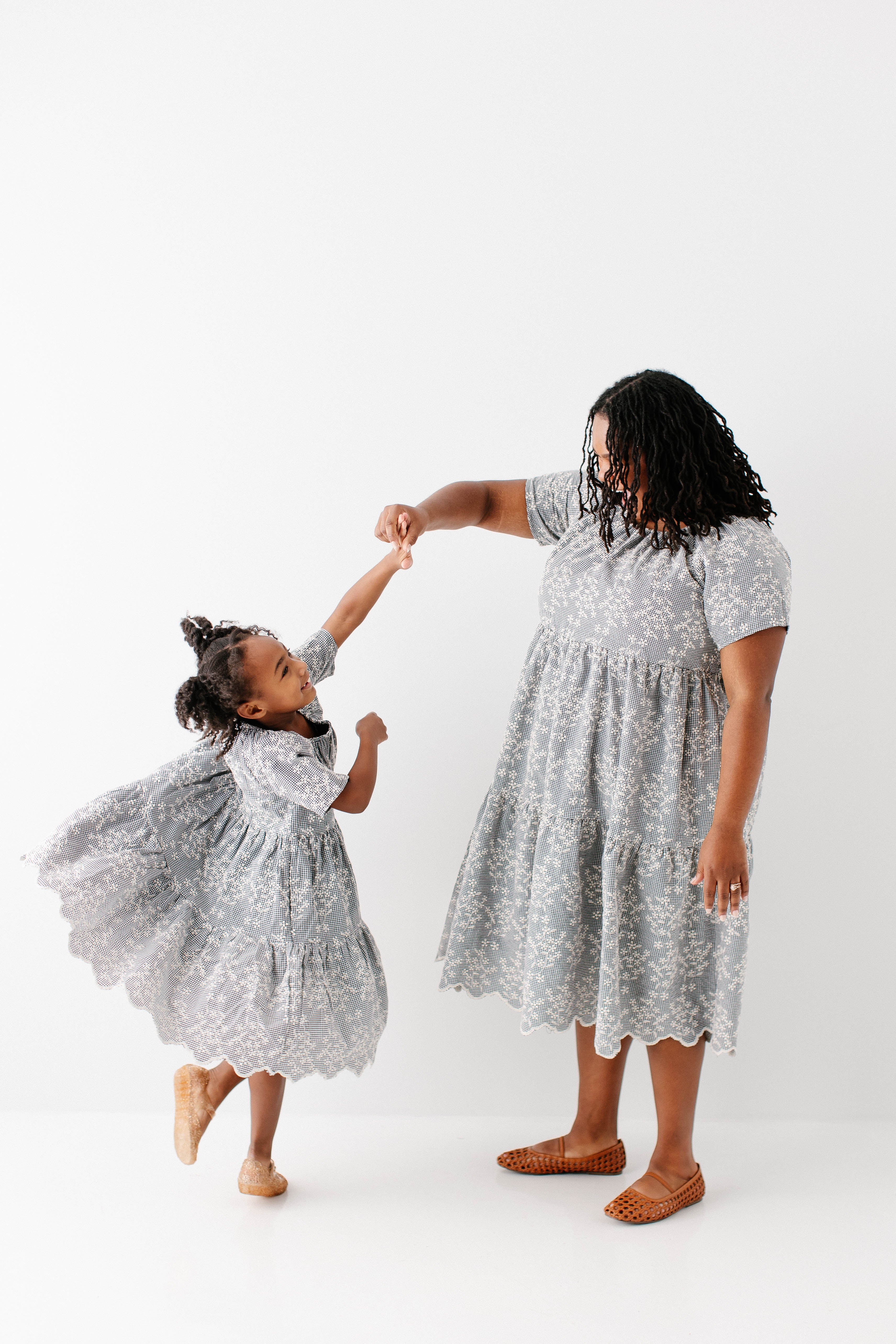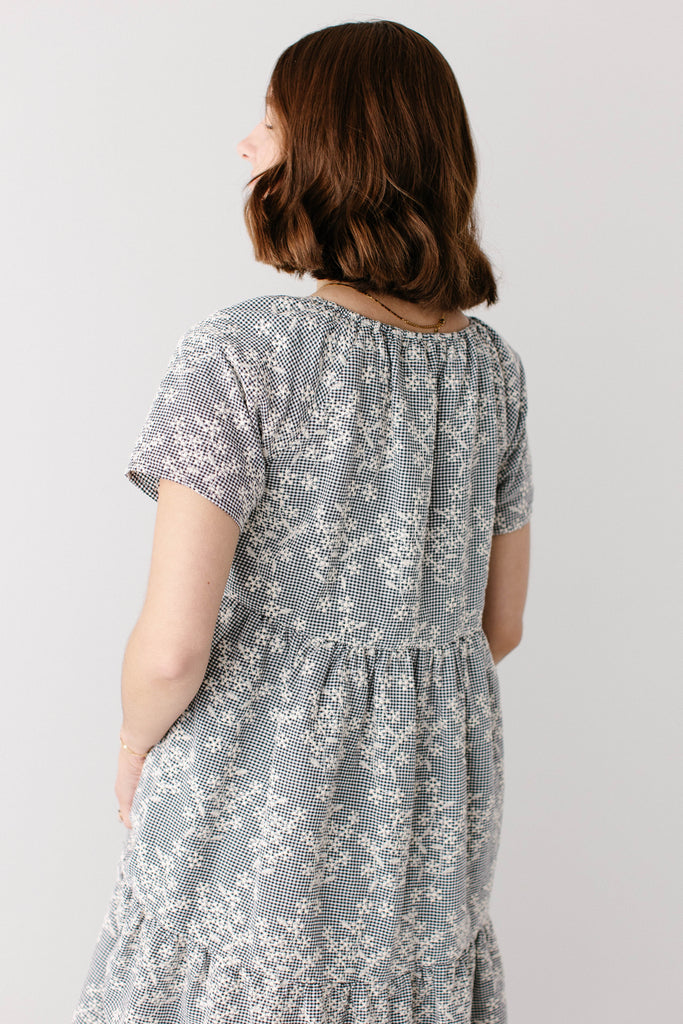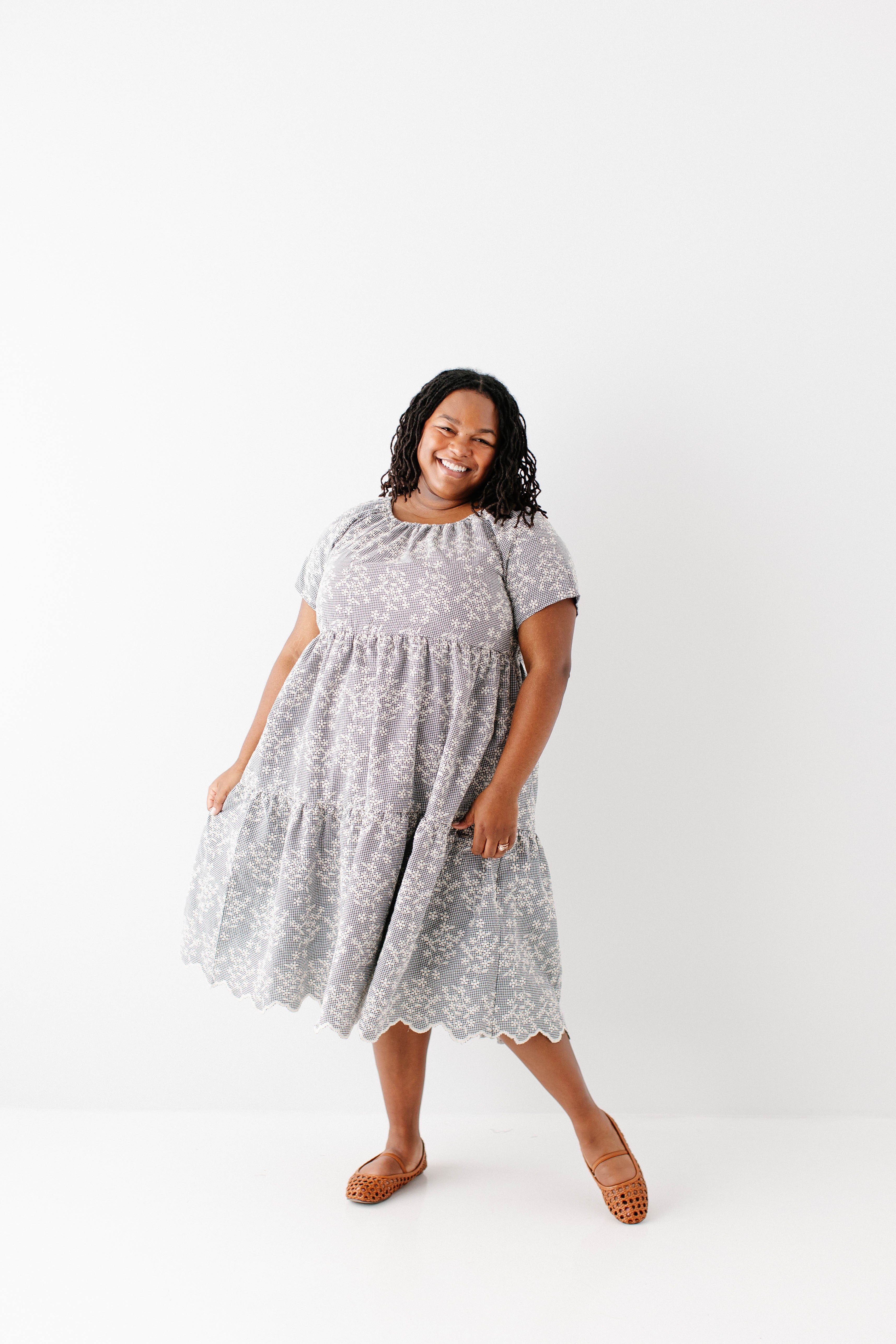 Meet the 'Georgia' Embroidered Floral Gingham Midi Dress, a piece that is both beautiful and practical! Featuring a breathable cotton blend in a black gingham print, scalloped hem, stretchy elastic neckline, and a flowing tiered design that is also maternity/bump friendly, this truly is the dress that stays with you! Better yet, the 'Georgia' also comes in little girl sizes so you can match with your mini for family photos, church, brunch, or any other occasion! Exclusively designed by us with you in mind.