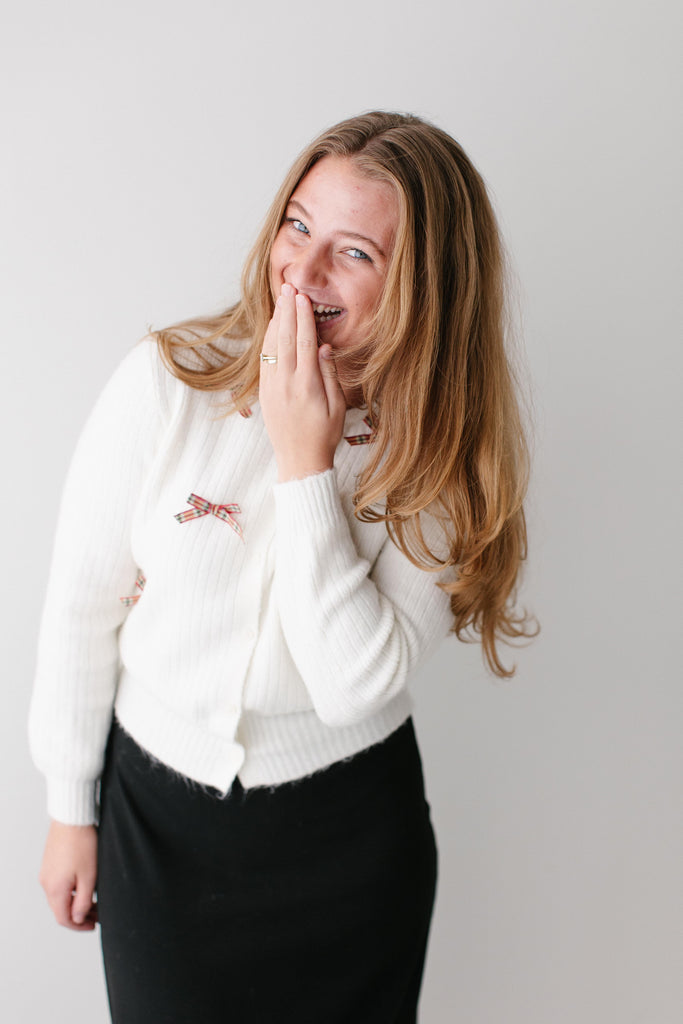 As Christmas rolls around, the perfect festive sweater is an absolute necessity! The 'Holly' Plaid Bow Cardigan features mini plaid bow details on a ribbed knit cardigan, the perfect addition to your holiday wardrobe! This cardigan is an updated take on a classic design - dress it up or down for all of your winter activities.
