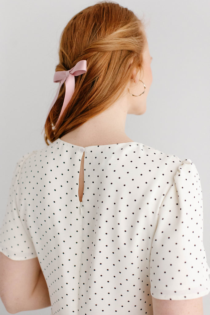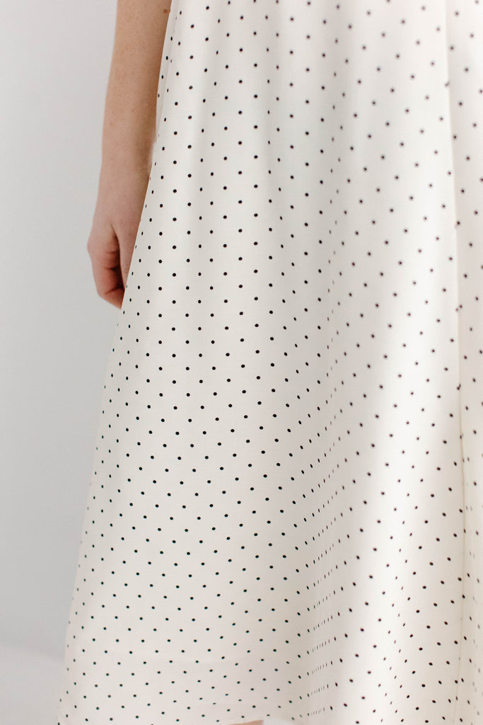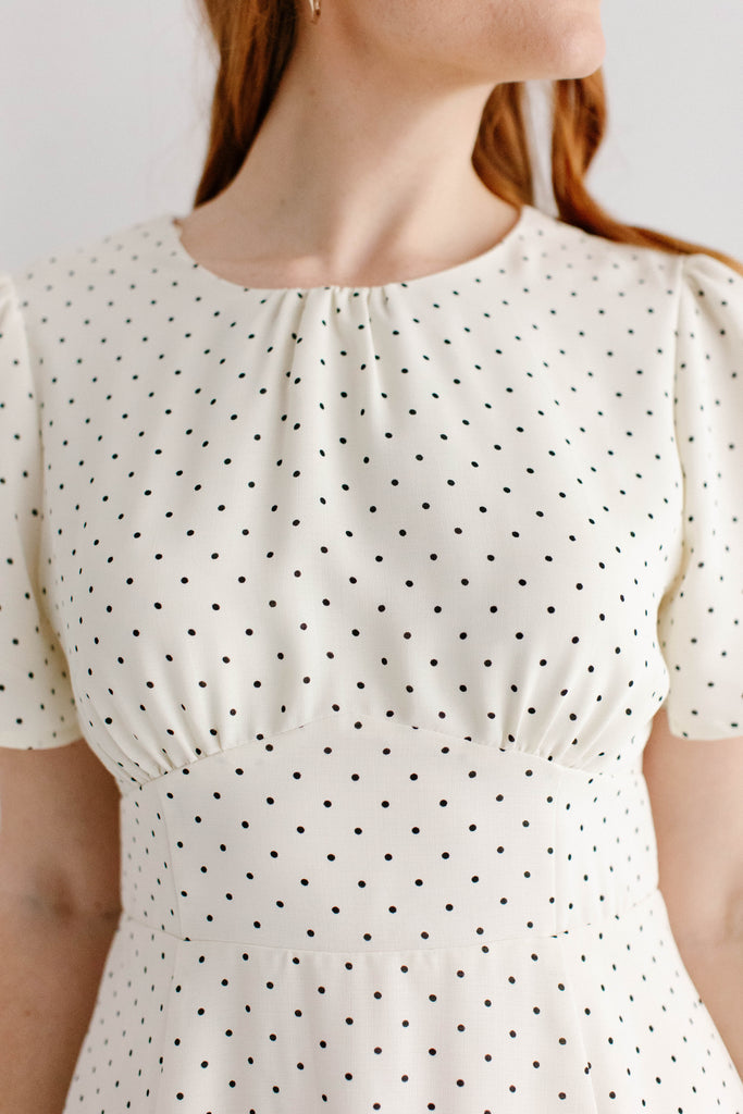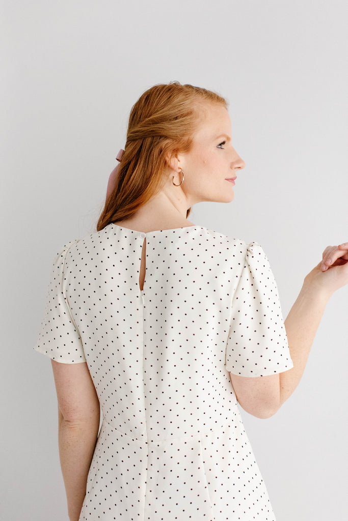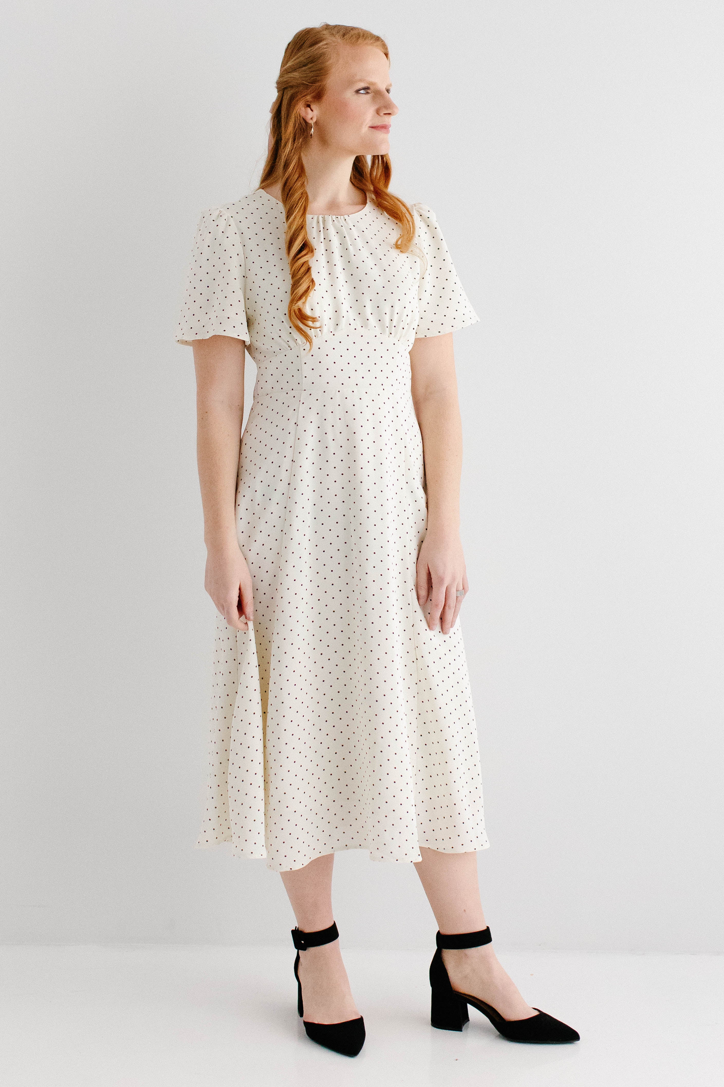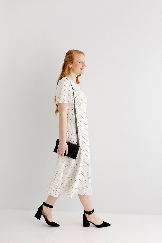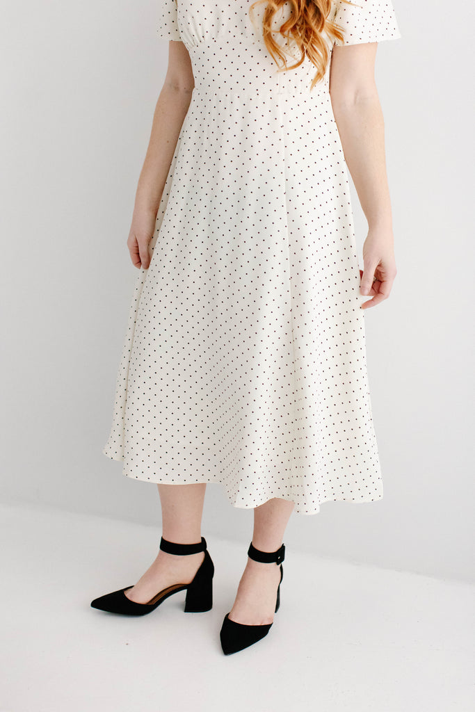 A classy piece you’ll feel beautiful in, meet the 'Imogen' Polka Dot Godet Midi Dress! This dress is vintage inspired elegance, with a polka dot print, tulip sleeves, godet-style flared skirt, and subtle gathers on the bodice, pair with pumps for church or keep it casual with sandals for brunch.