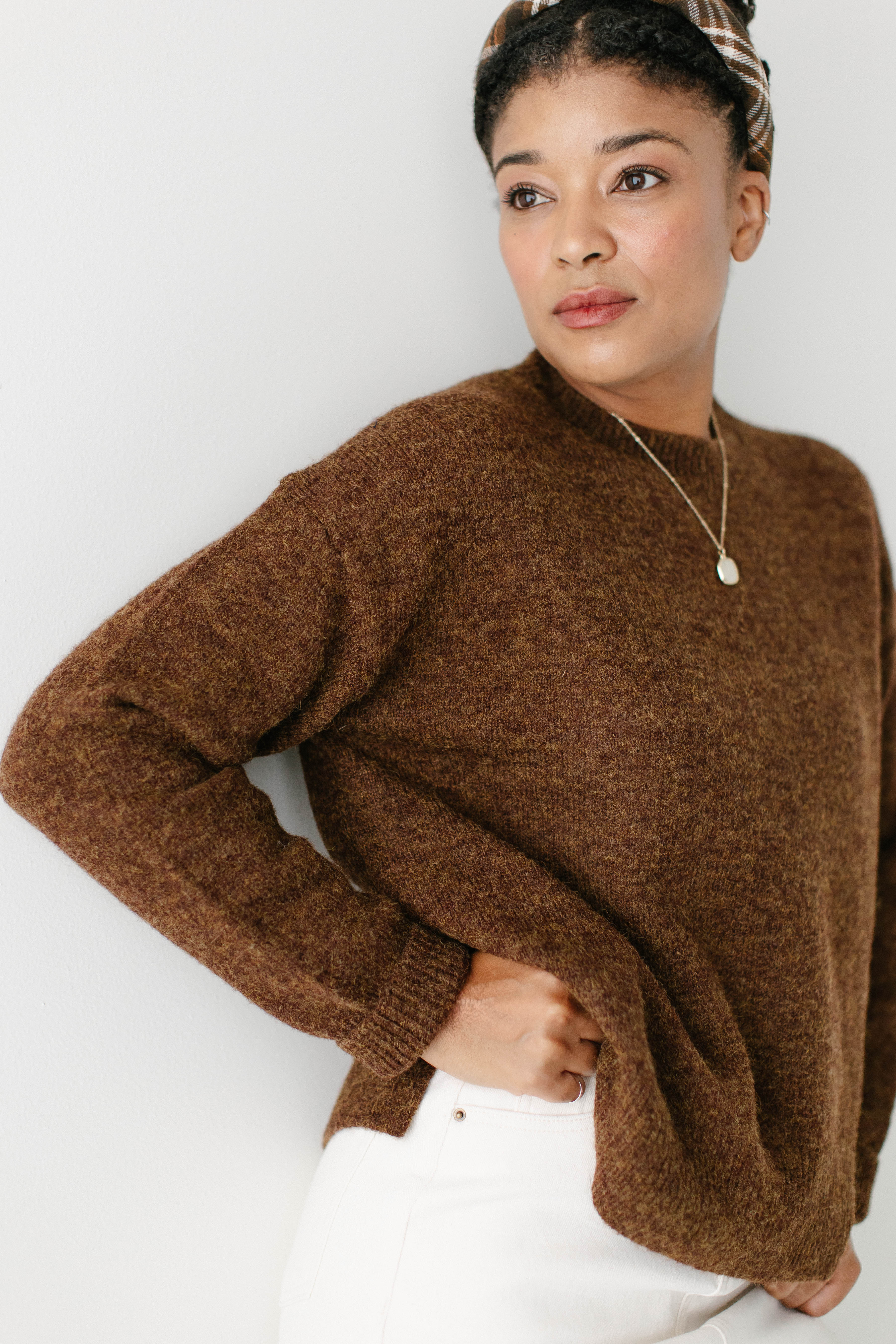 A vintage-style marled sweater is a necessity for fall! The 'Ira' Marled Yarn Crewneck Sweater is made in a classic crewneck design with flattering side slits. This sweater is perfect for wearing with your favorite knit skirt and curling up with a book by the fire on a chilly day!