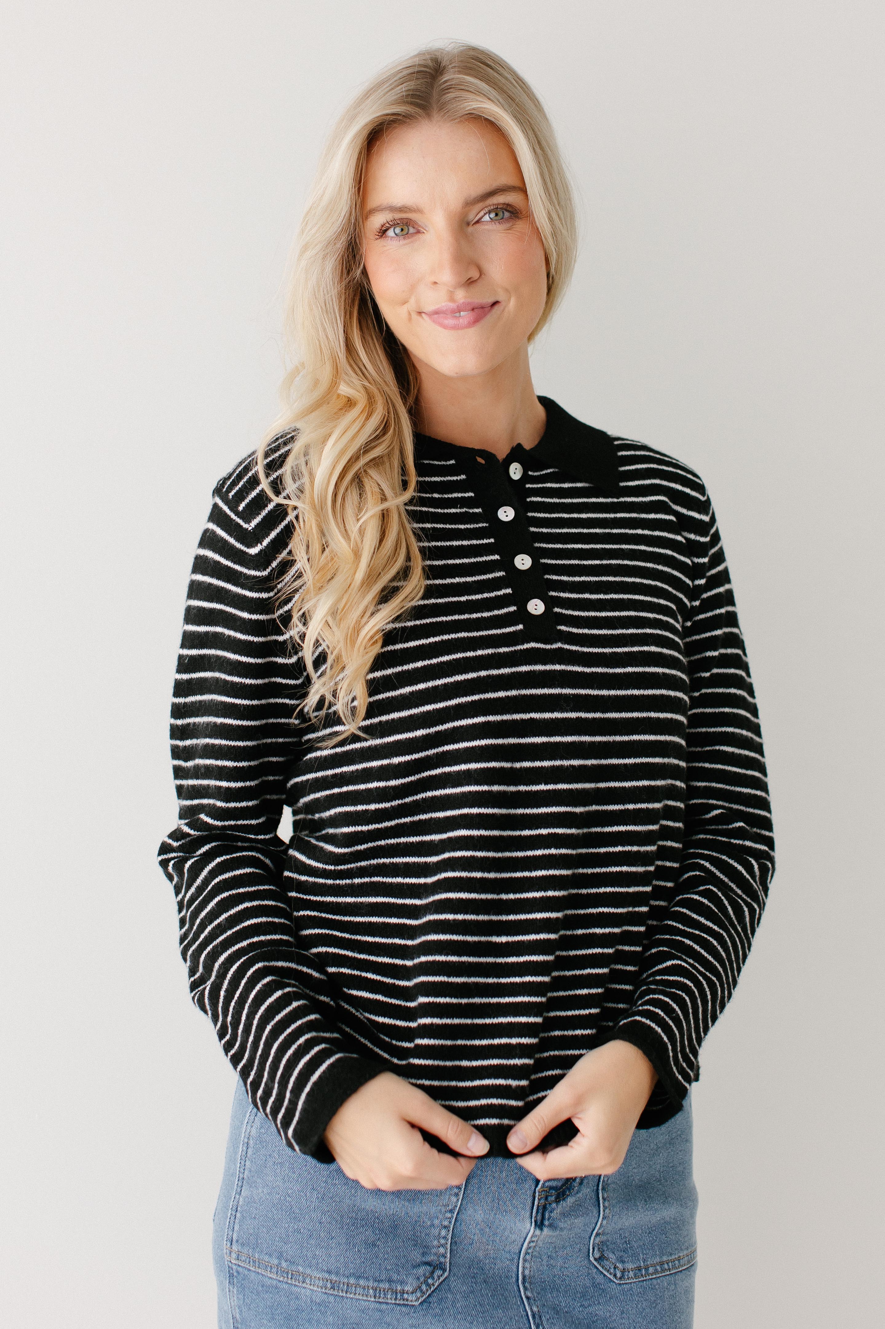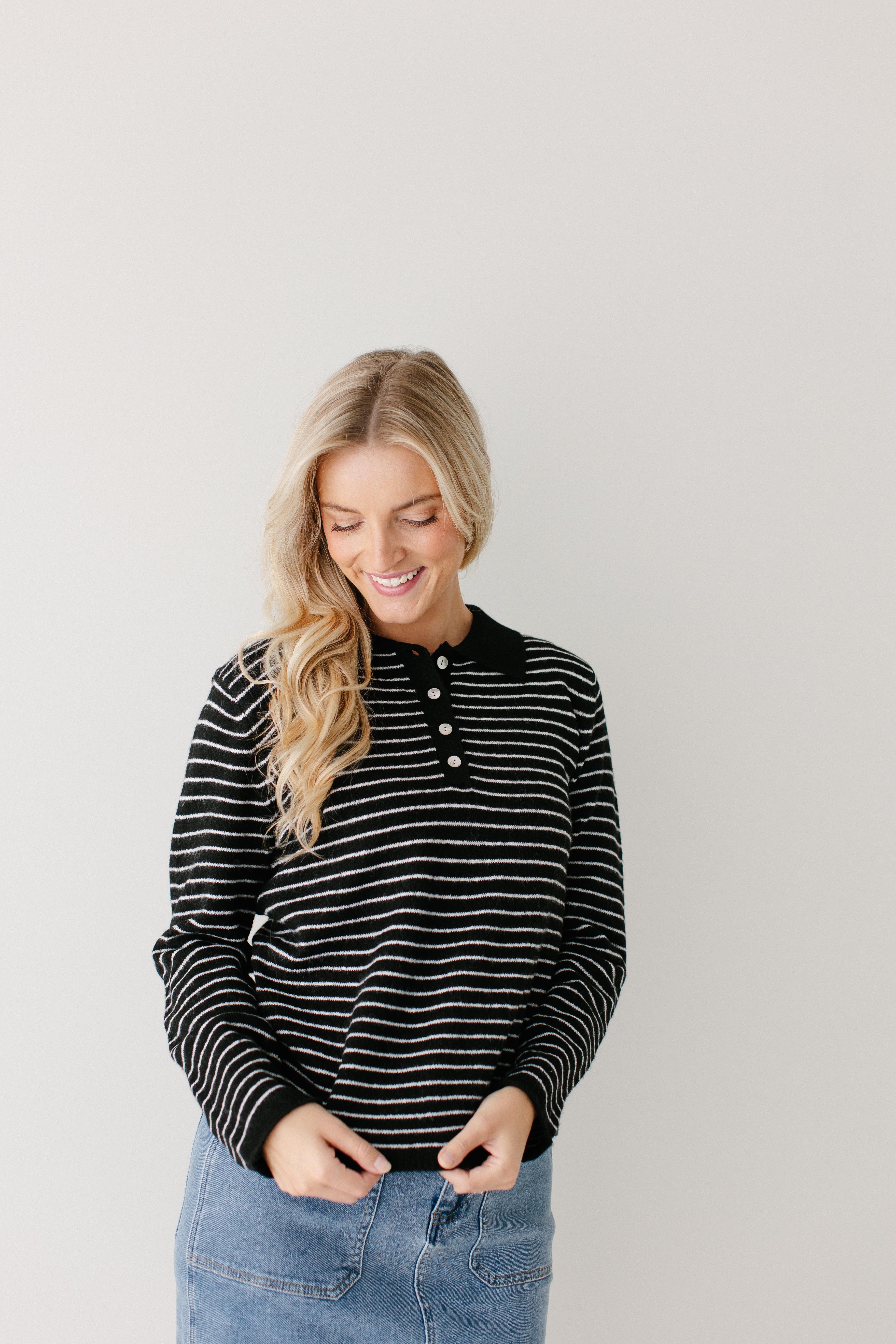 Introducing the 'Isak' Pinstripe Polo Sweater Top, your next favorite staple piece! Made in soft knit fabric with pinstripe detail, the collar and buttons give a subtle yet chic everyday look. Pair the ‘Isak’ with your favorite denim or solid skirt for the cutest ensemble for church.