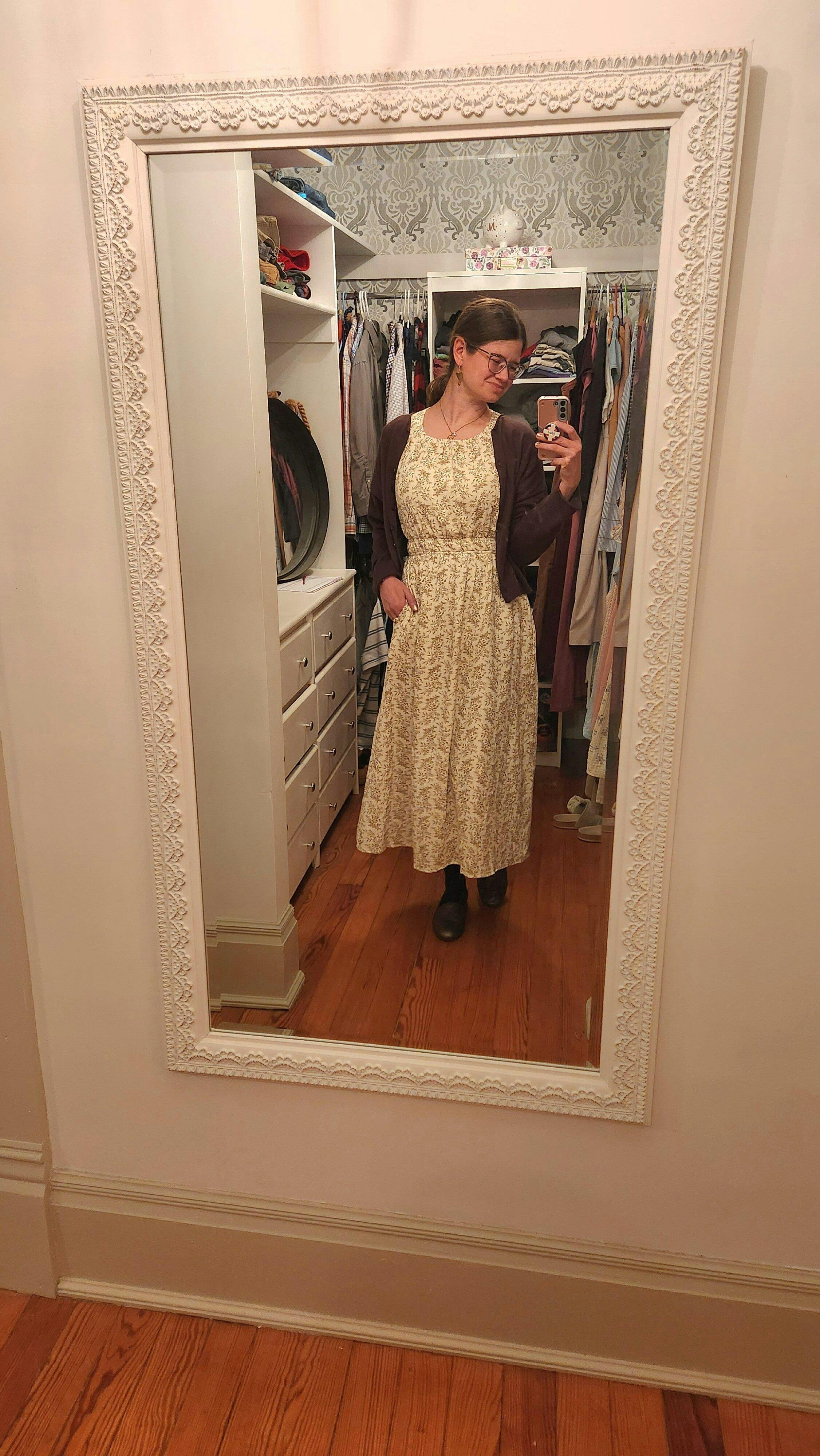 Model wearing the 'Jana' Drop Sleeve Cardigan with the 'Jana' Cotton Blend Midi Sweater Skirt