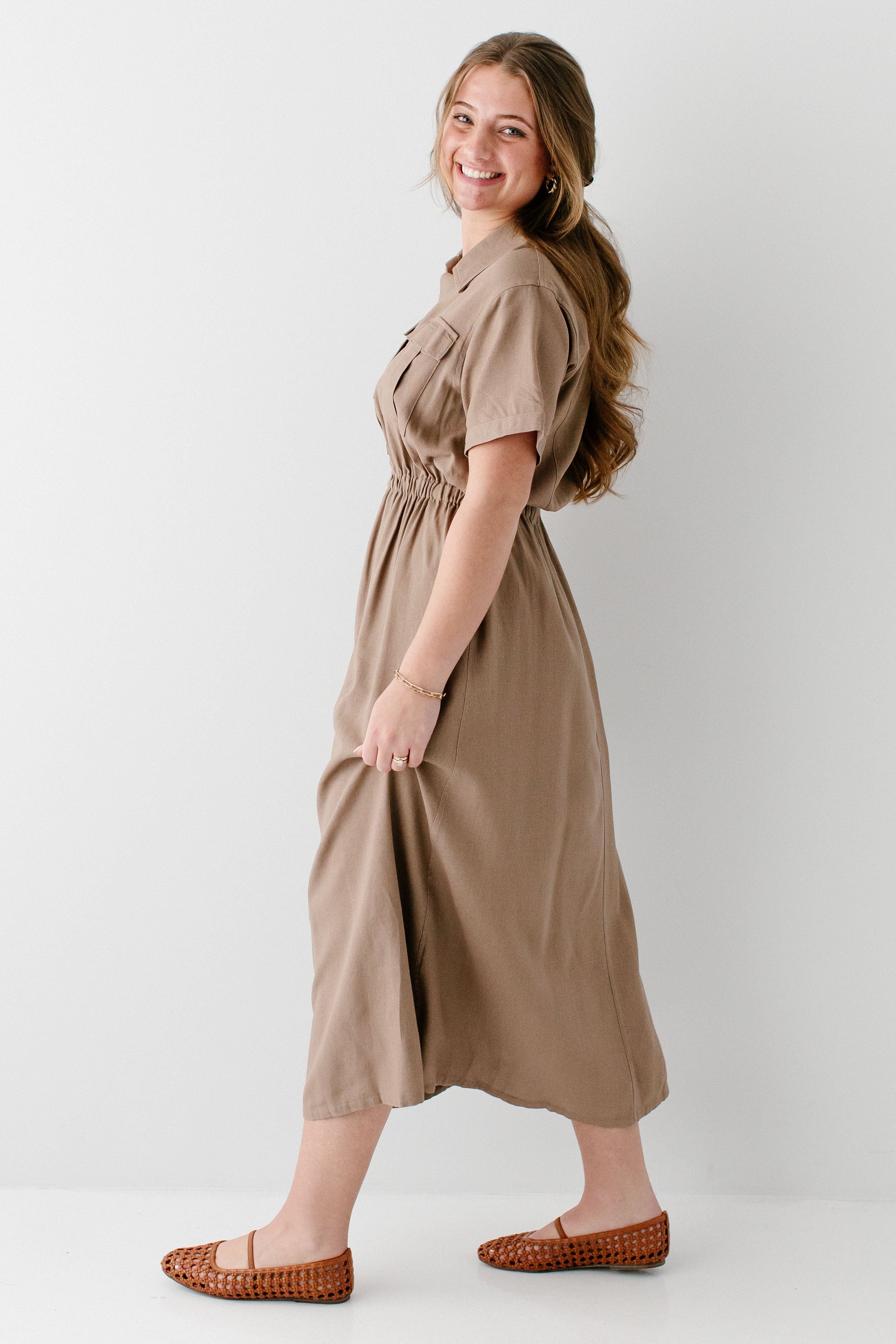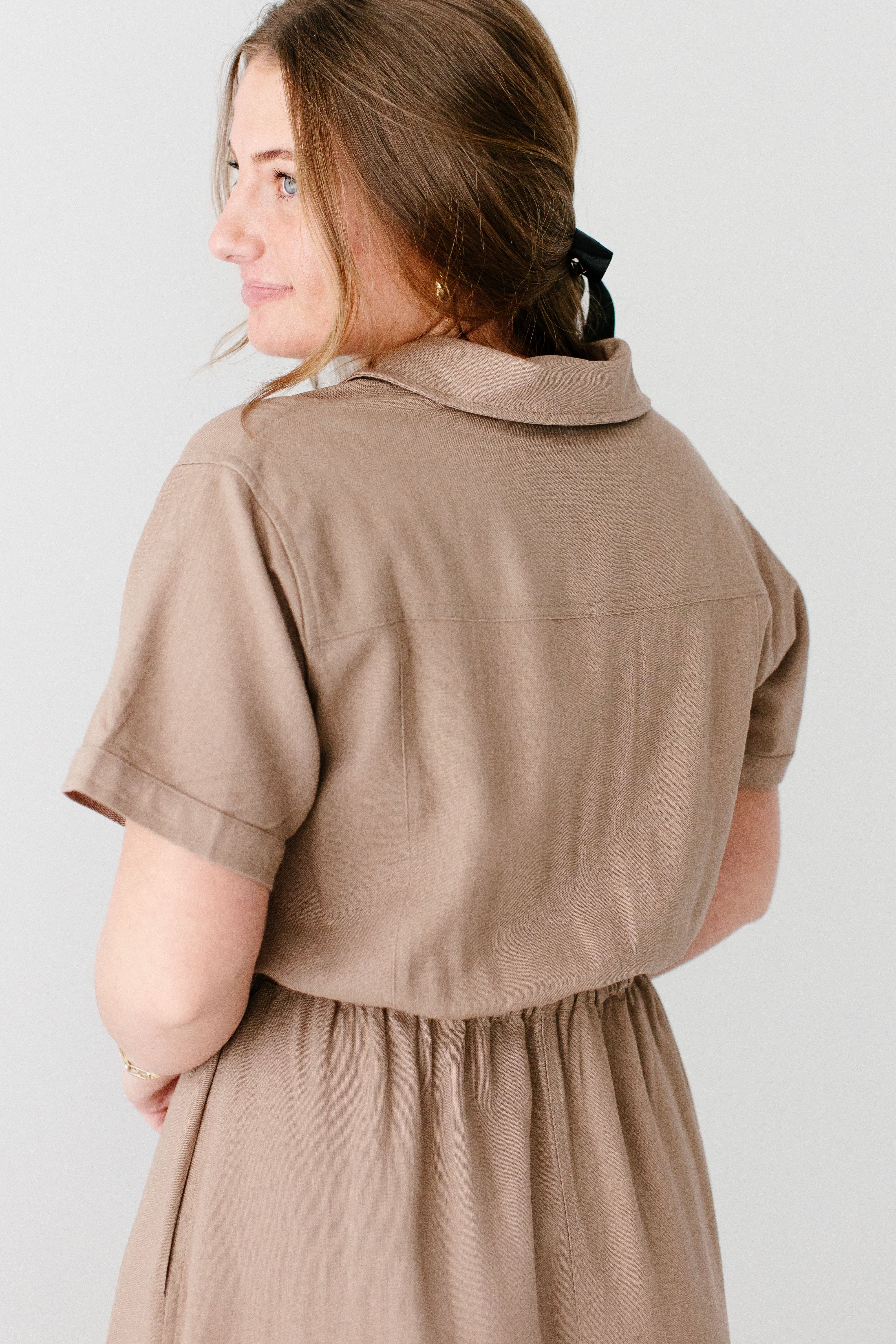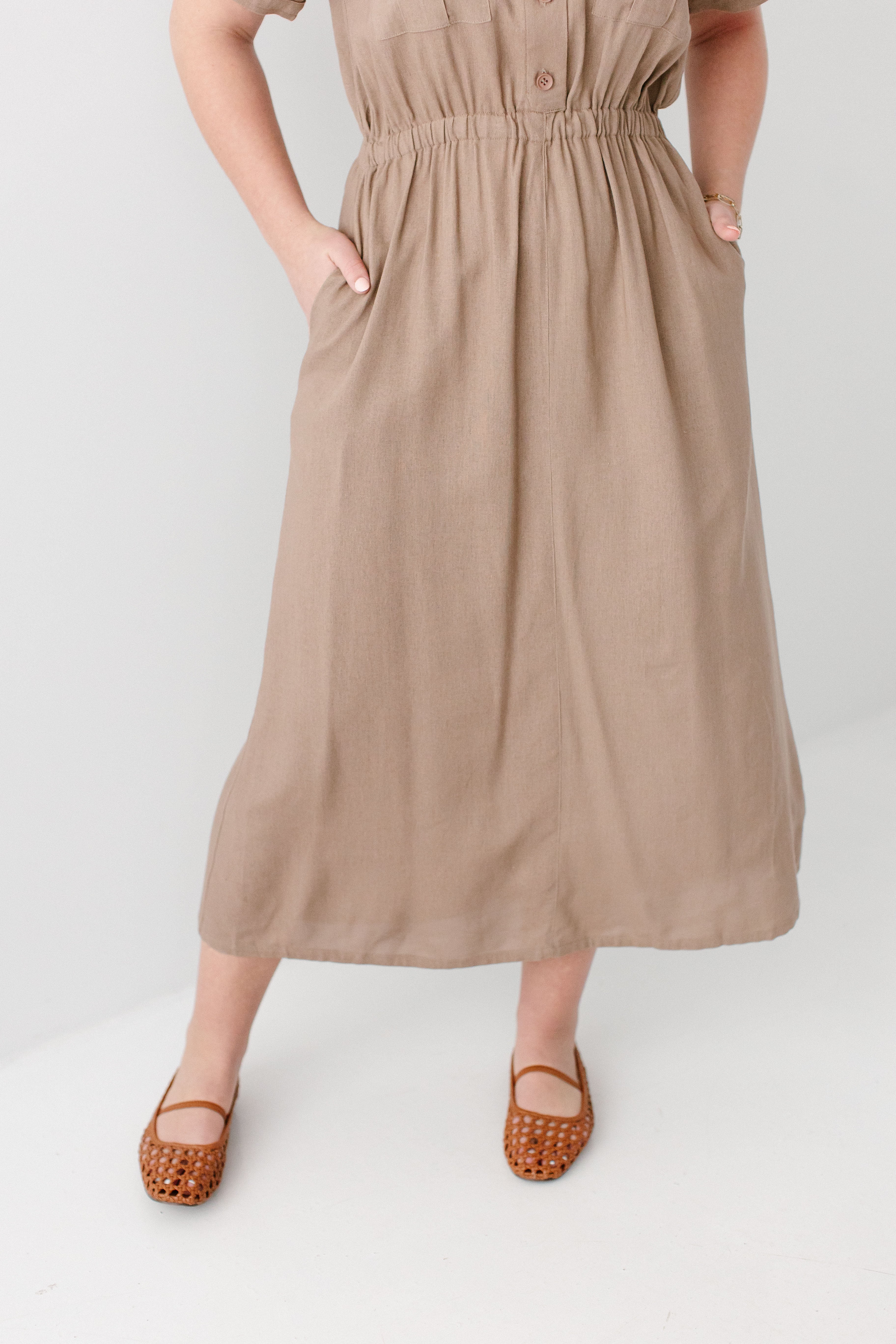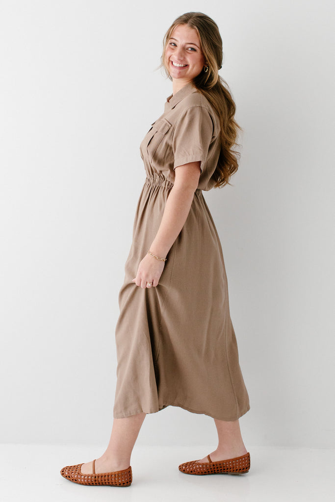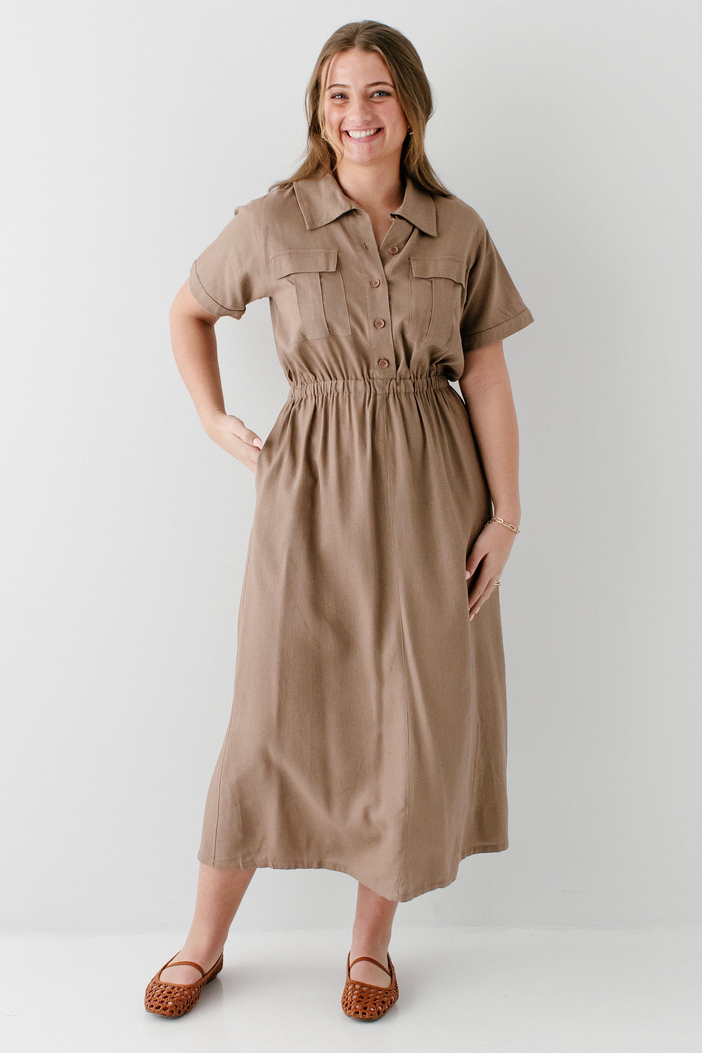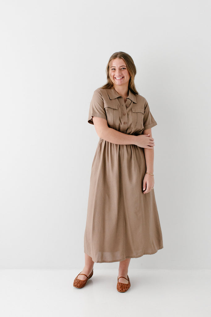 Meet the 'Jo' Utility Maxi Dress, your soon-to-be favorite staple piece! Made from a linen/cotton blend fabric and featuring an elastic waistband, utility-style pockets on the front, classy collar, and functional buttons down the bodice, this is the best outfit that is cute and practical! Exclusively designed by us with you in mind.