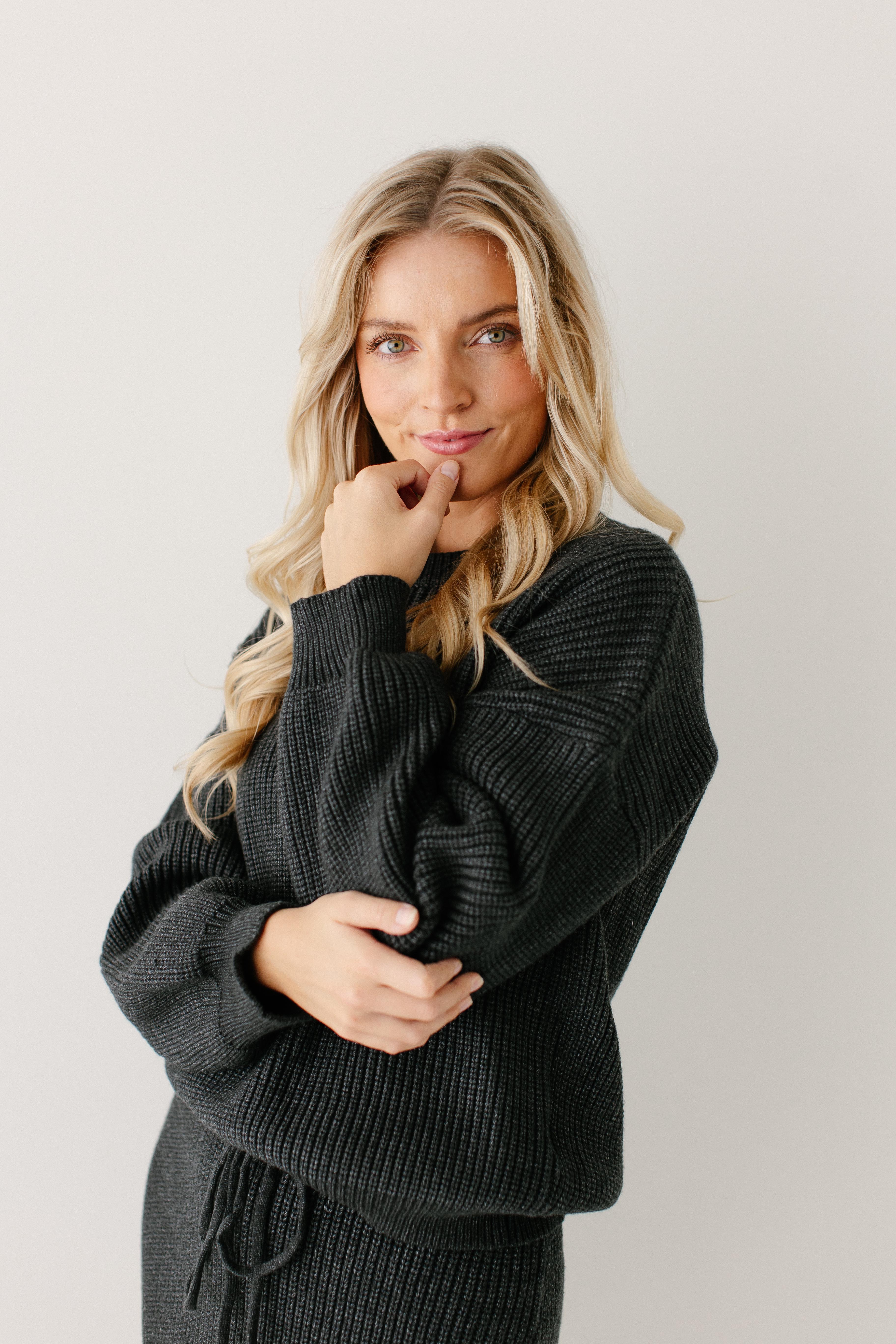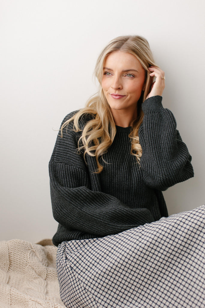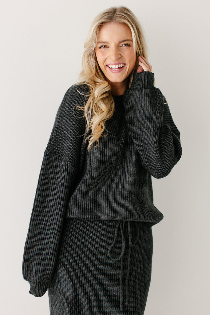 The 'Jordyn' Drop Sleeve Sweater is back, now in a beautiful charcoal shade for all your cold weather events! This is a versatile soft knit sweater, perfect for pairing with the matching sweater skirt, denim, or your favorite printed skirt - the possibilities are endless!