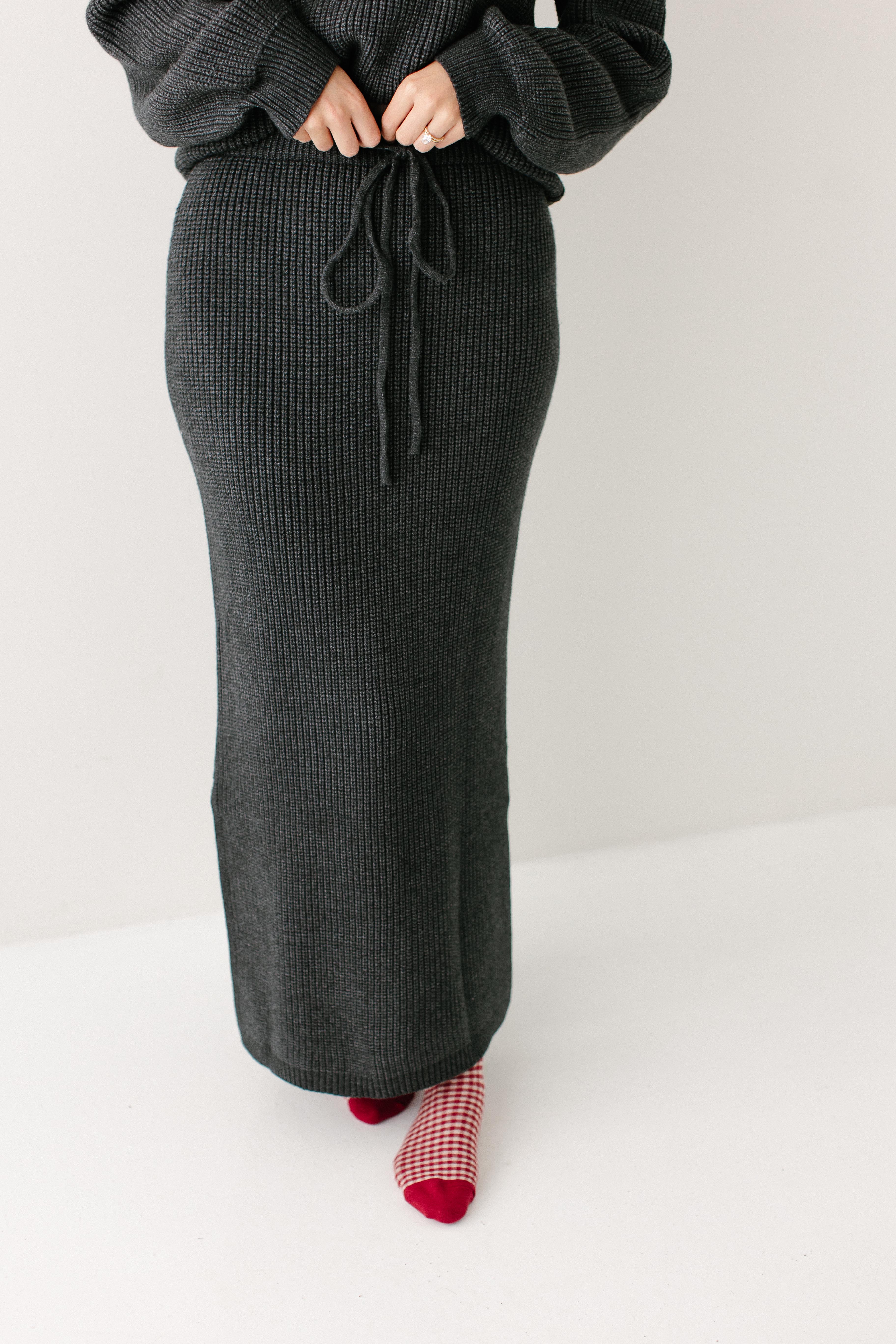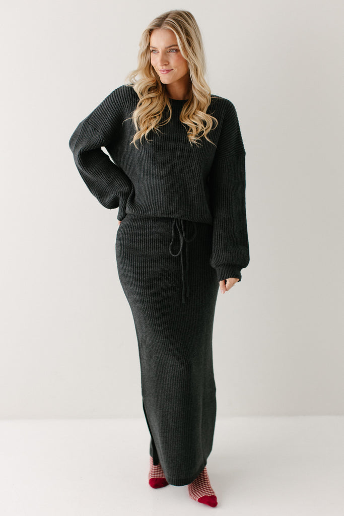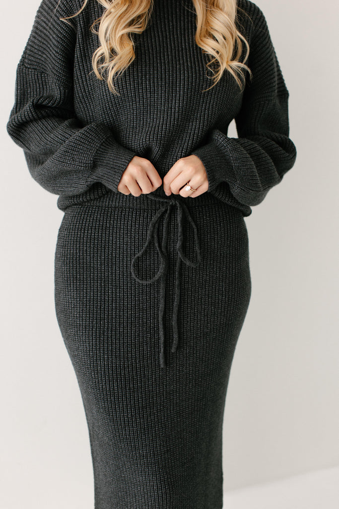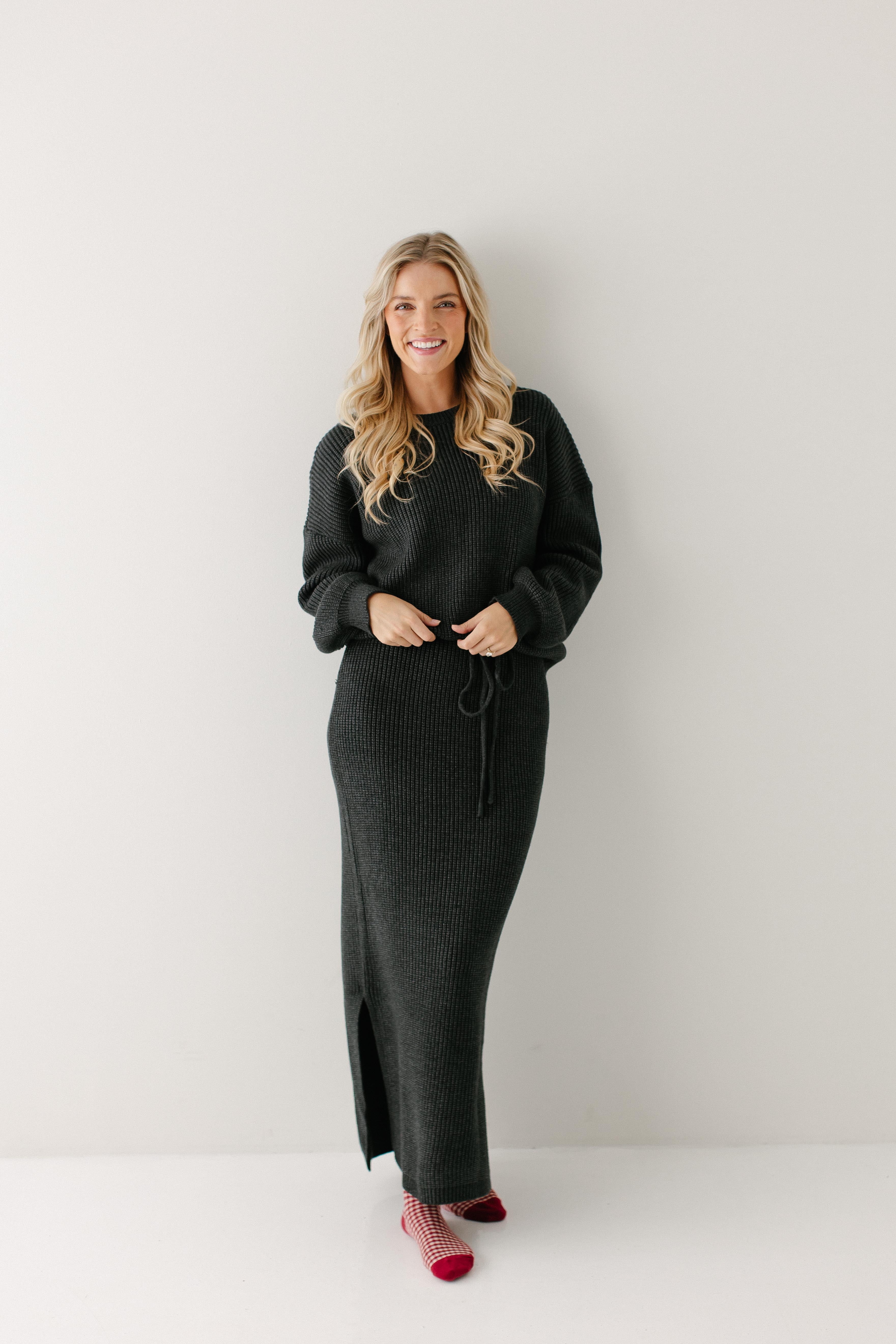 The 'Jordyn' Midi Sweater Skirt is back, now in a beautiful charcoal shade for all your cold weather events! This versatile soft knit sweater skirt with side slits for ease of movement is perfect for pairing with the matching sweater or any of your favorite tops - the possibilities are endless!