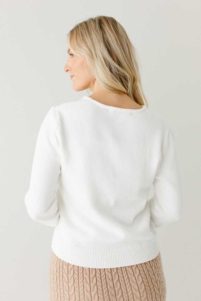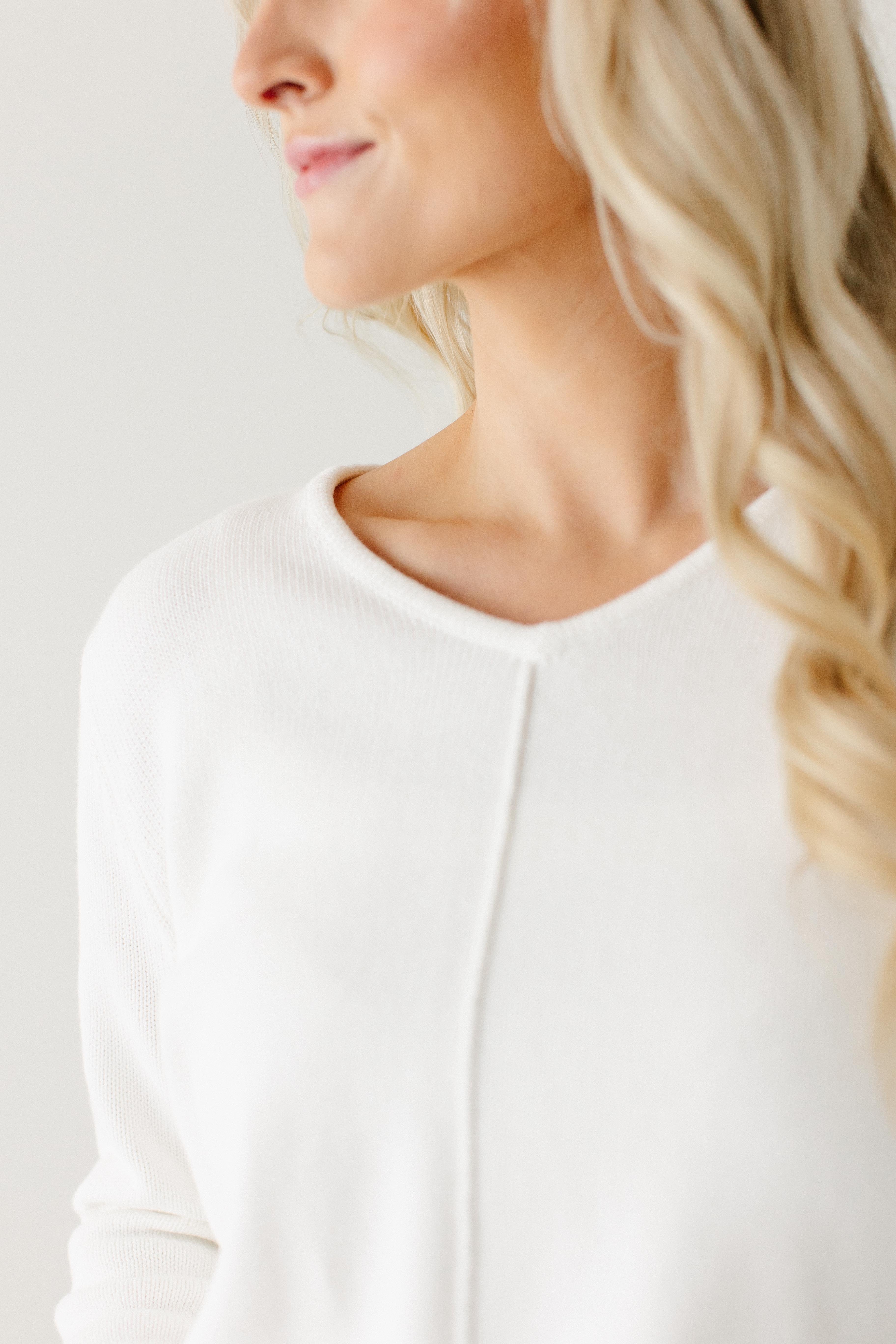 Introducing the 'Kelsie' Cotton V-Neck Sweater! Simple yet classy with a modest v-neckline and in a classic neutral ivory shade. The 'Kelsie' this sweater pairs beautifully with your favorite skirt or over a dress! Exclusively designed by us with you in mind.