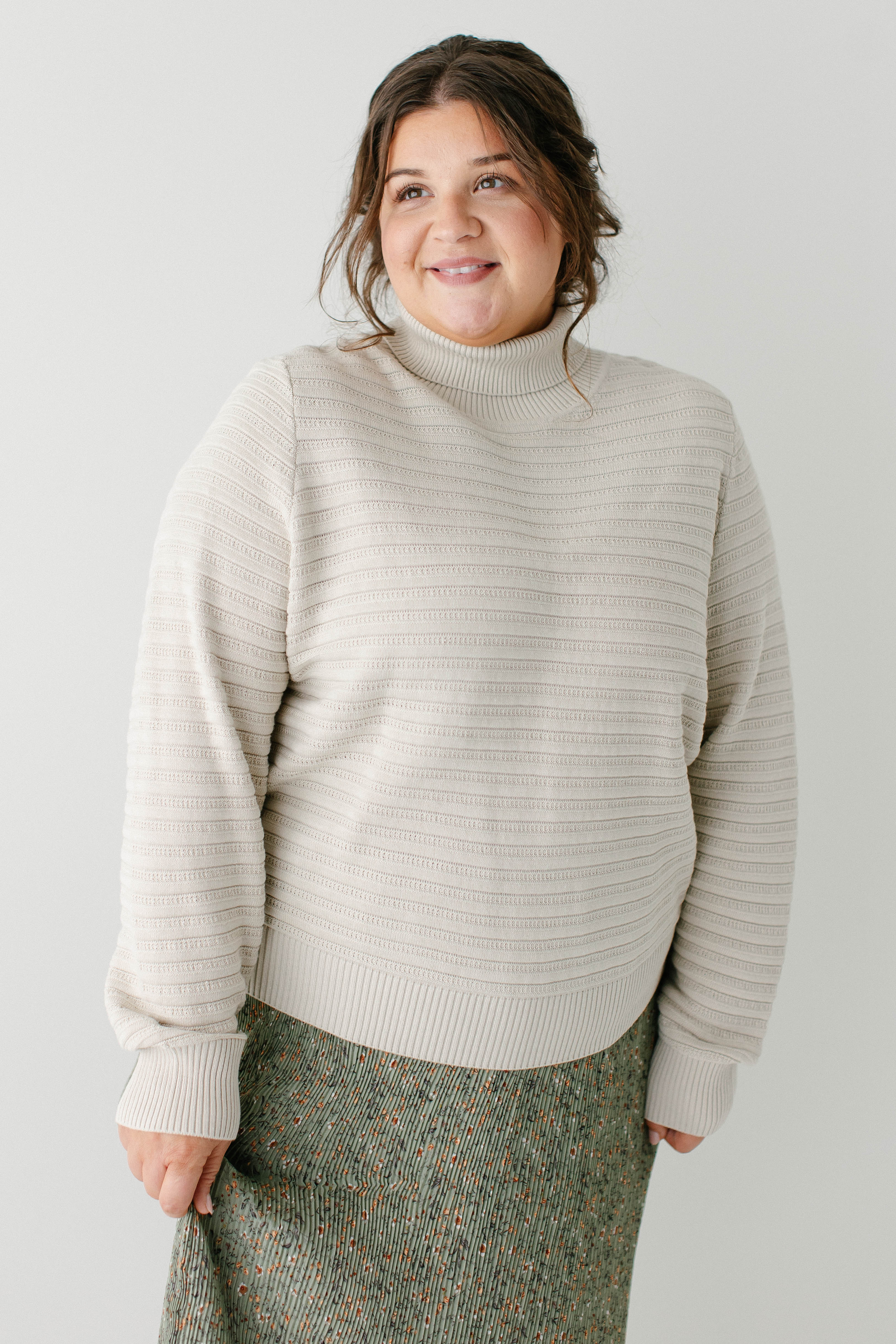 Introducing the 'Lindsay' Ribbed Turtleneck Sweater, your next favorite cozy turtleneck. Made out of soft and durable fabric and in two neutral colors - sand and olive brown. This sweater is perfect for pairing with your favorite solid skirt and loafers for a perfect church outfit. Exclusively designed by us with you in mind.