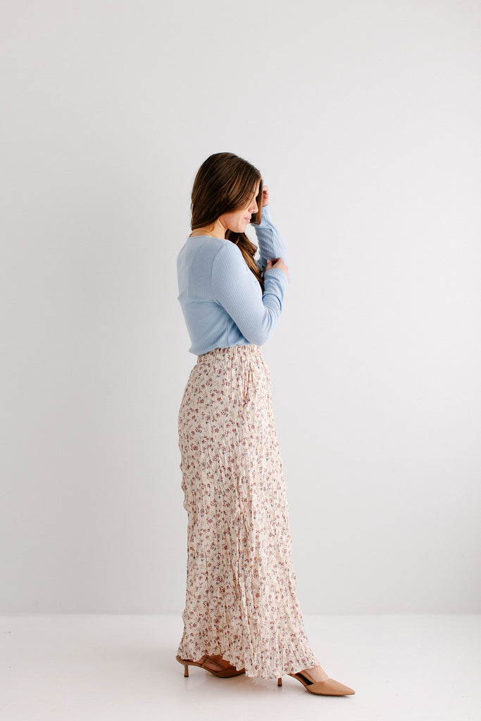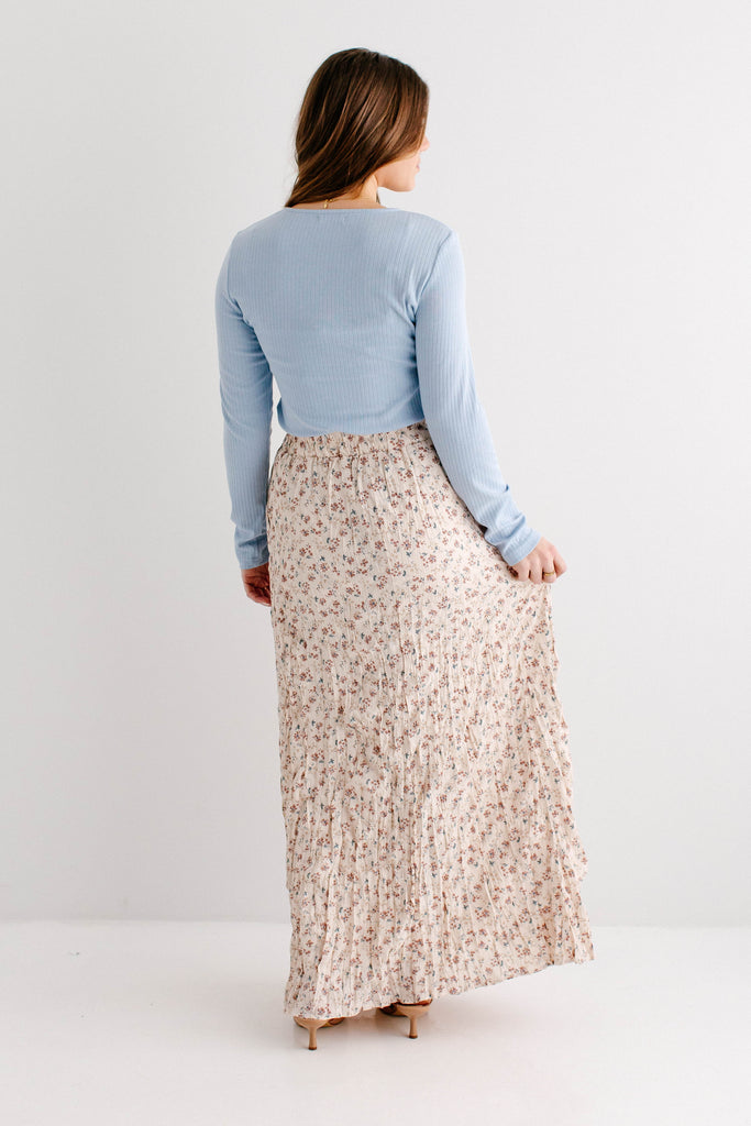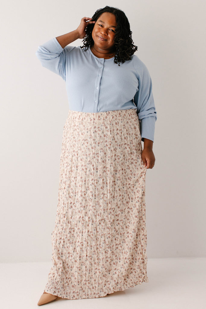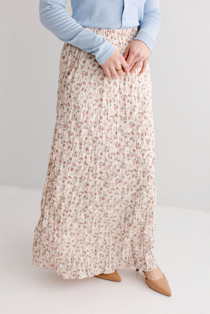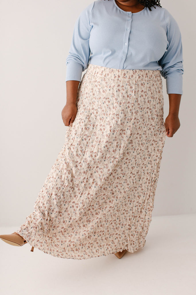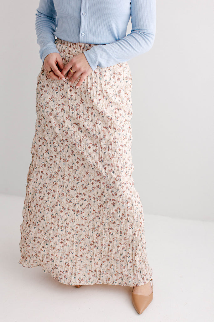 What better skirt for Easter than one full of the cutest details? The 'Lotus' Floral Print Maxi Skirt is both flattering and sweet, with crinkle pleated details, wide elastic waistband for ultimate comfort, fully lined, and is a full maxi length. Pair the ‘Lotus’ with your favorite neutral blouse for the cutest Easter Sunday outfit.