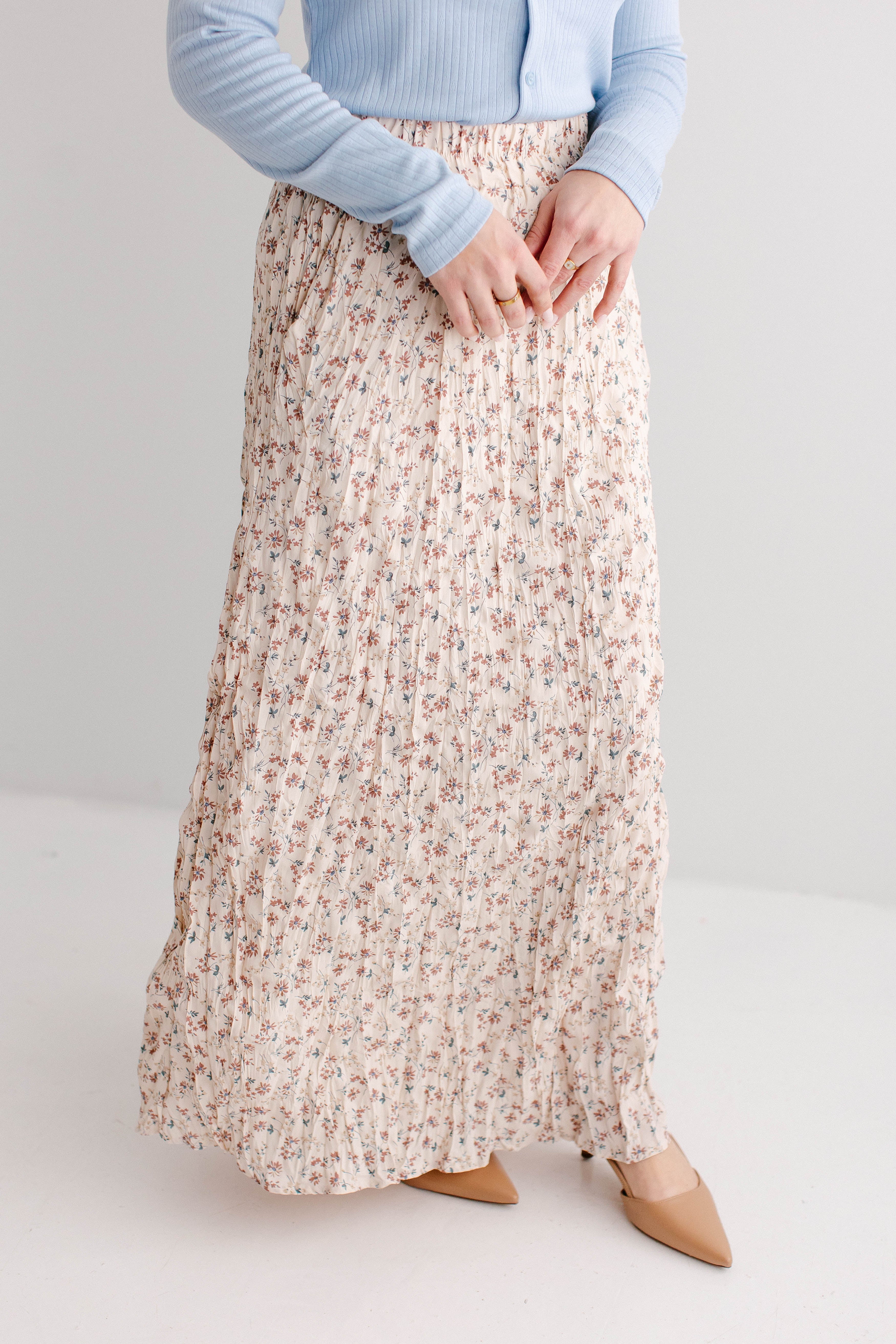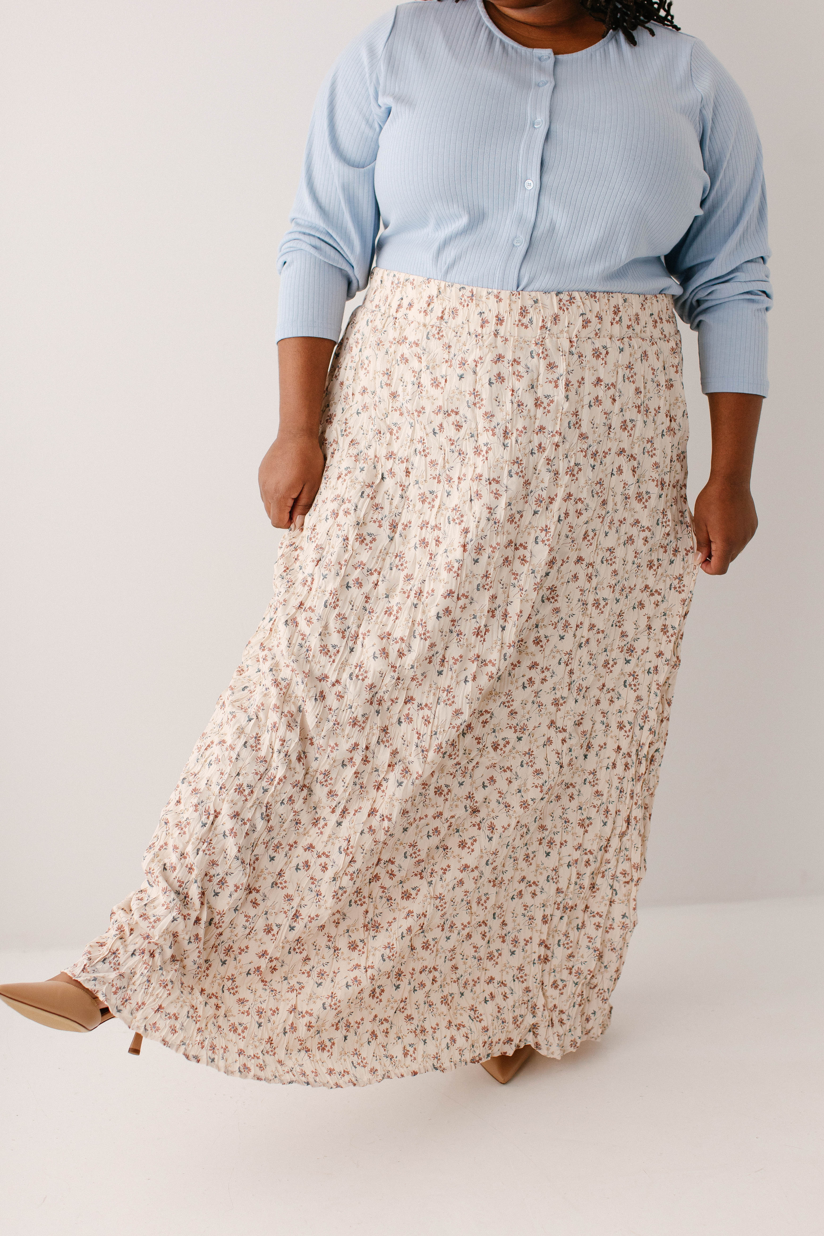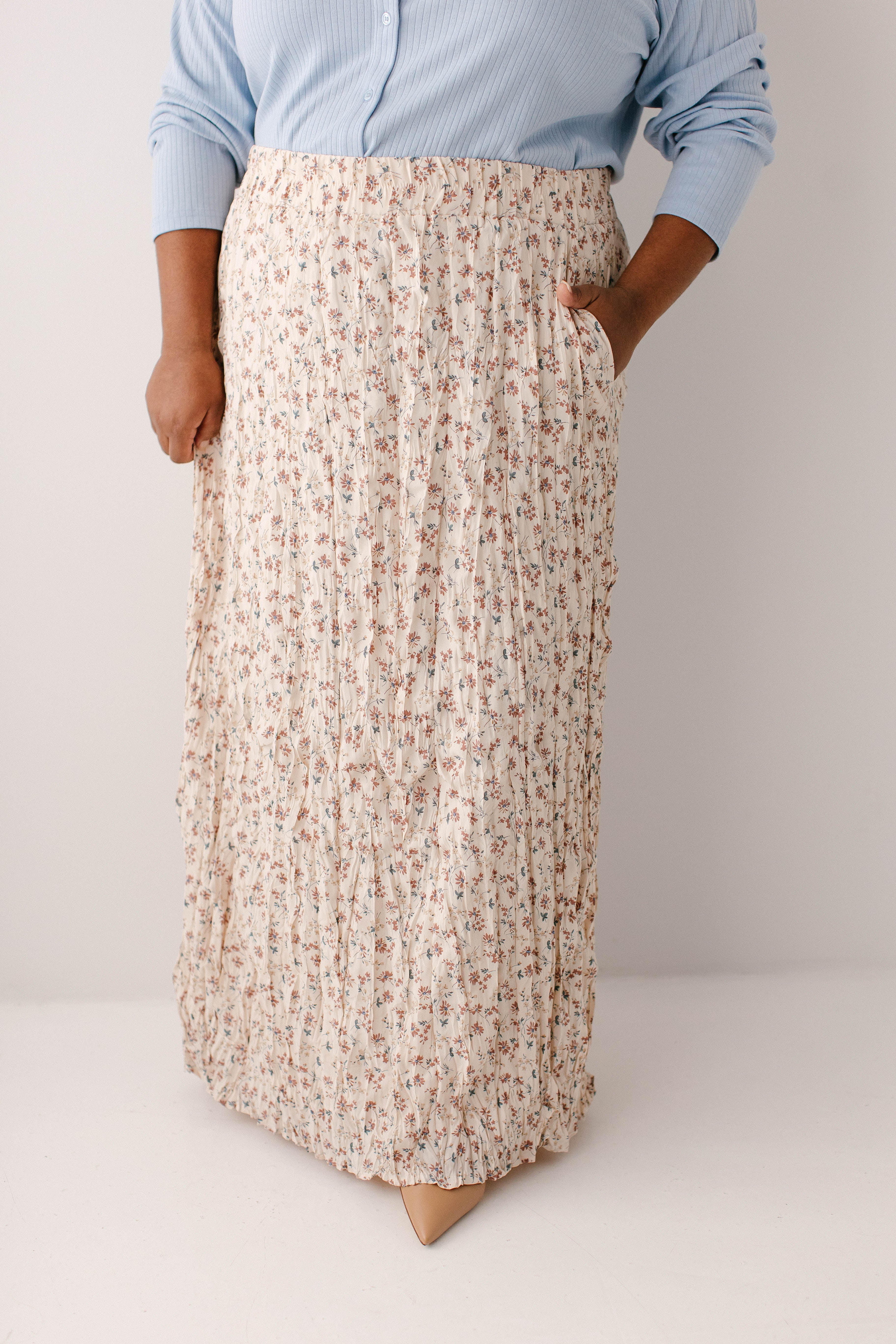 What better skirt for Easter than one full of the cutest details? The 'Lotus' Floral Print Maxi Skirt is both flattering and sweet, with crinkle pleated details, wide elastic waistband for ultimate comfort, fully lined, and is a full maxi length. Pair the ‘Lotus’ with your favorite neutral blouse for the cutest Easter Sunday outfit.