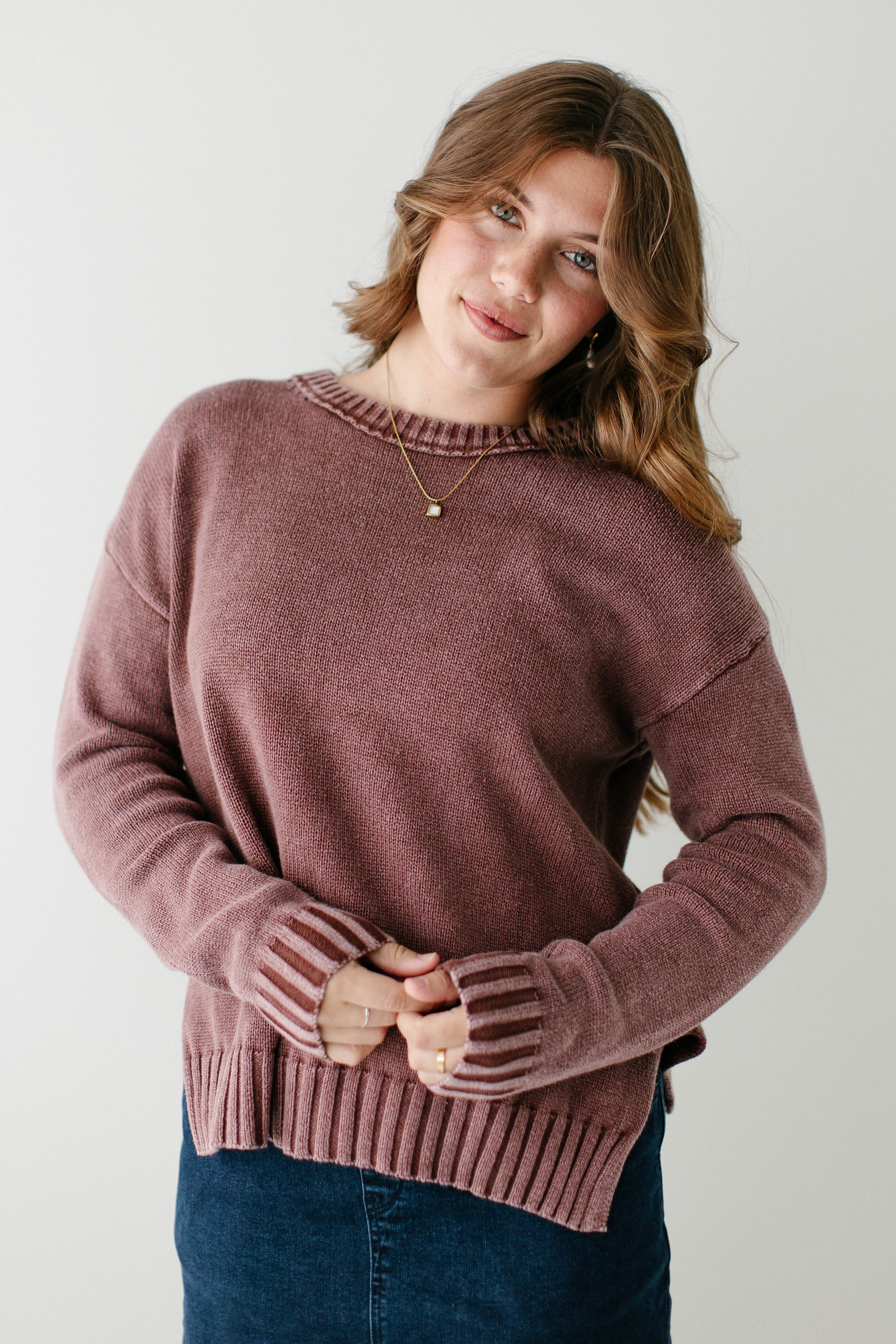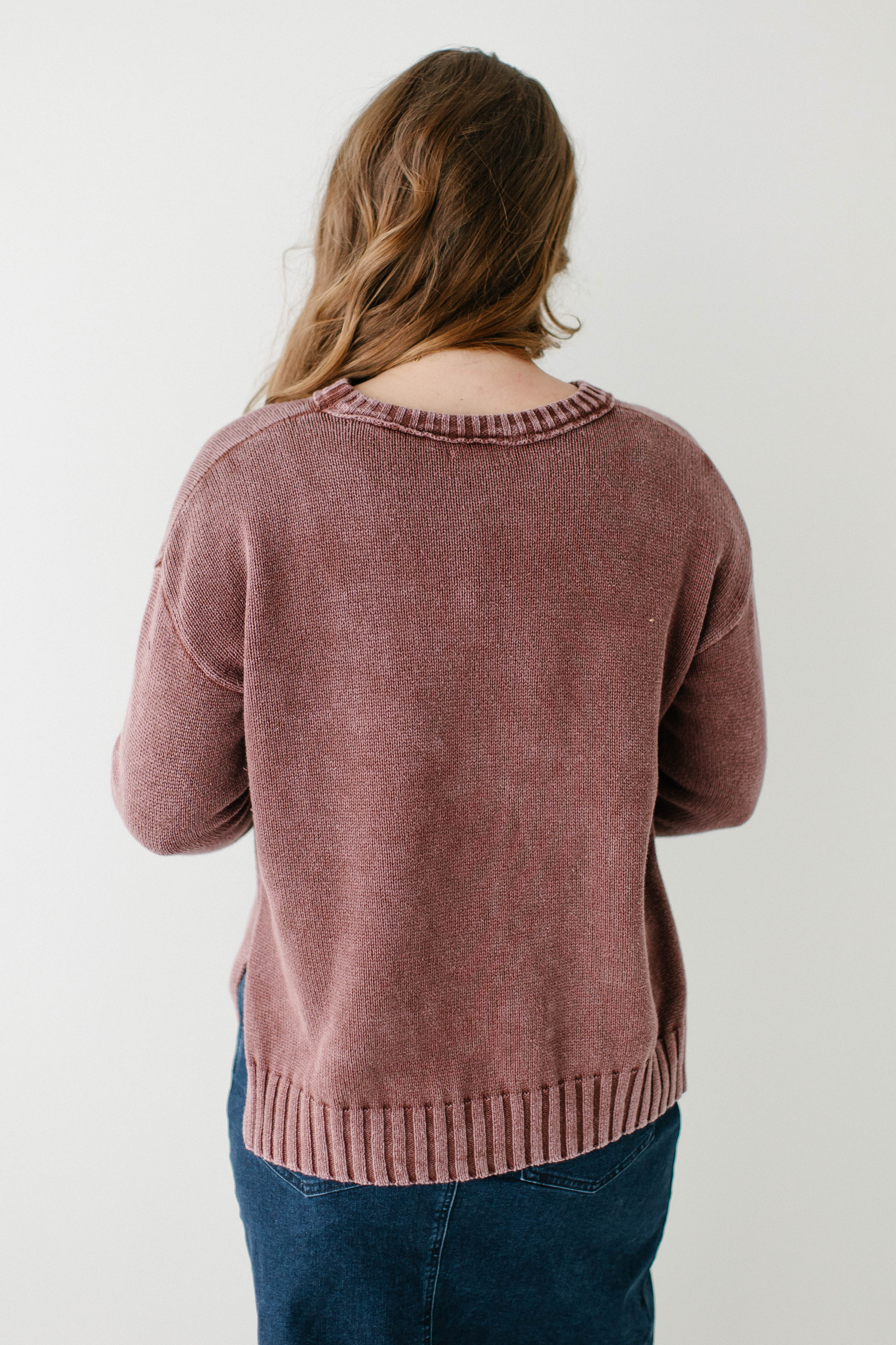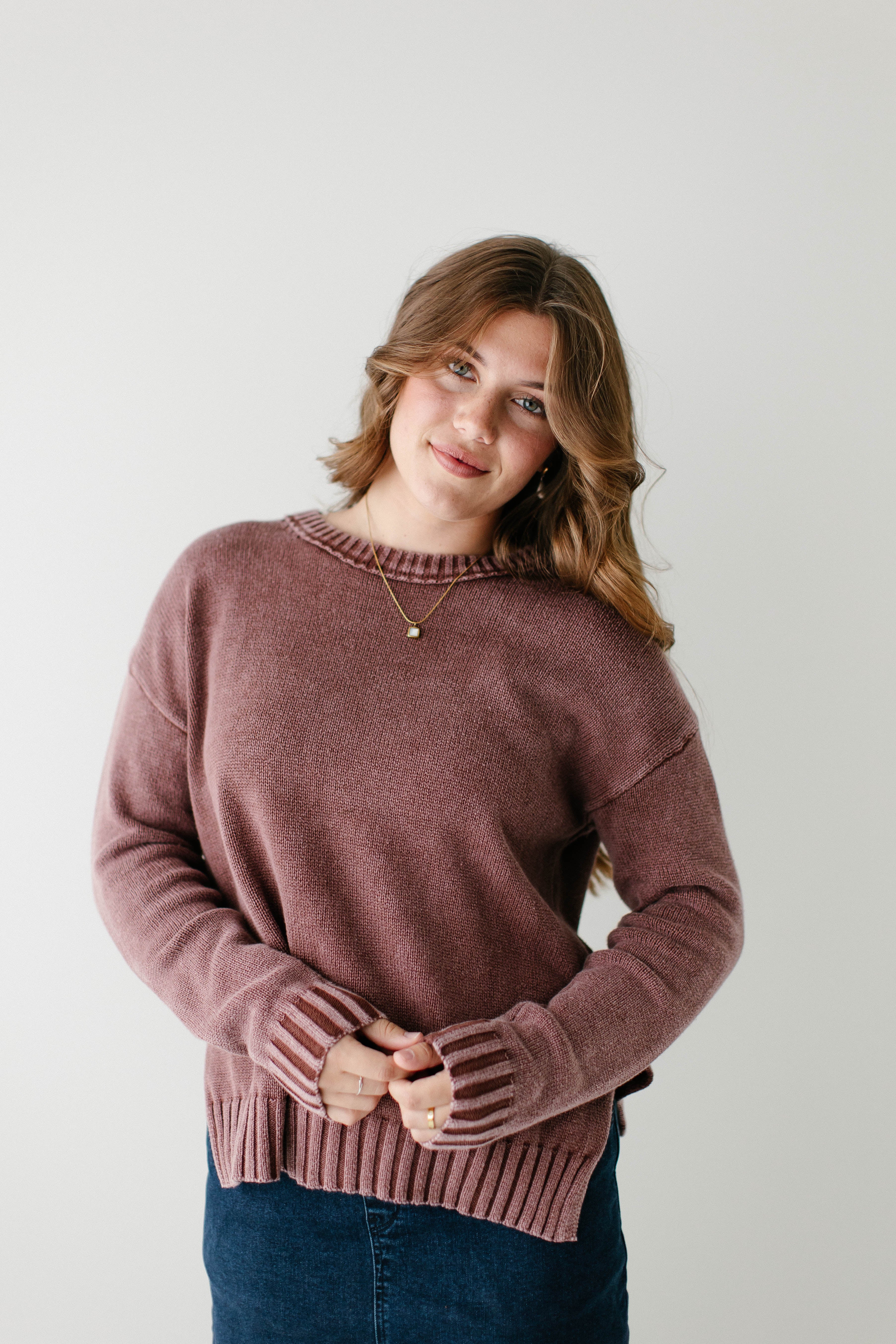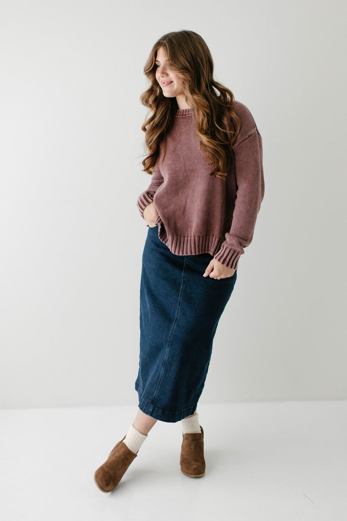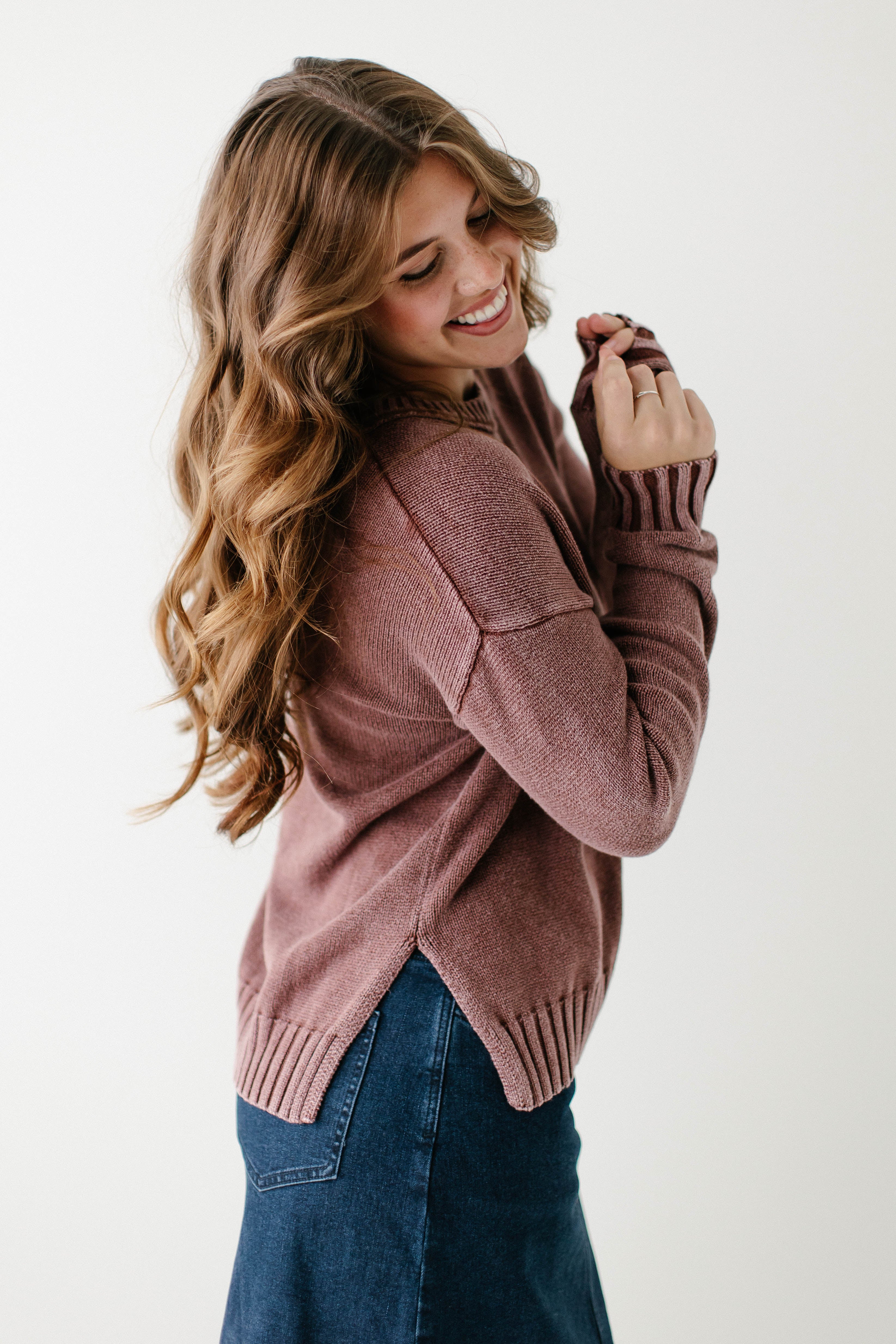 Fall sweaters are the best part of the season, especially when they come in a beautiful washed plum color! The 'Moriah' Washed Cotton Sweater is made from 100% cotton with ribbed edges and side slits for a flattering fit. Pair the ‘Moriah’ with your favorite denim skirt and a pair of sneakers for an easy, everyday look.
