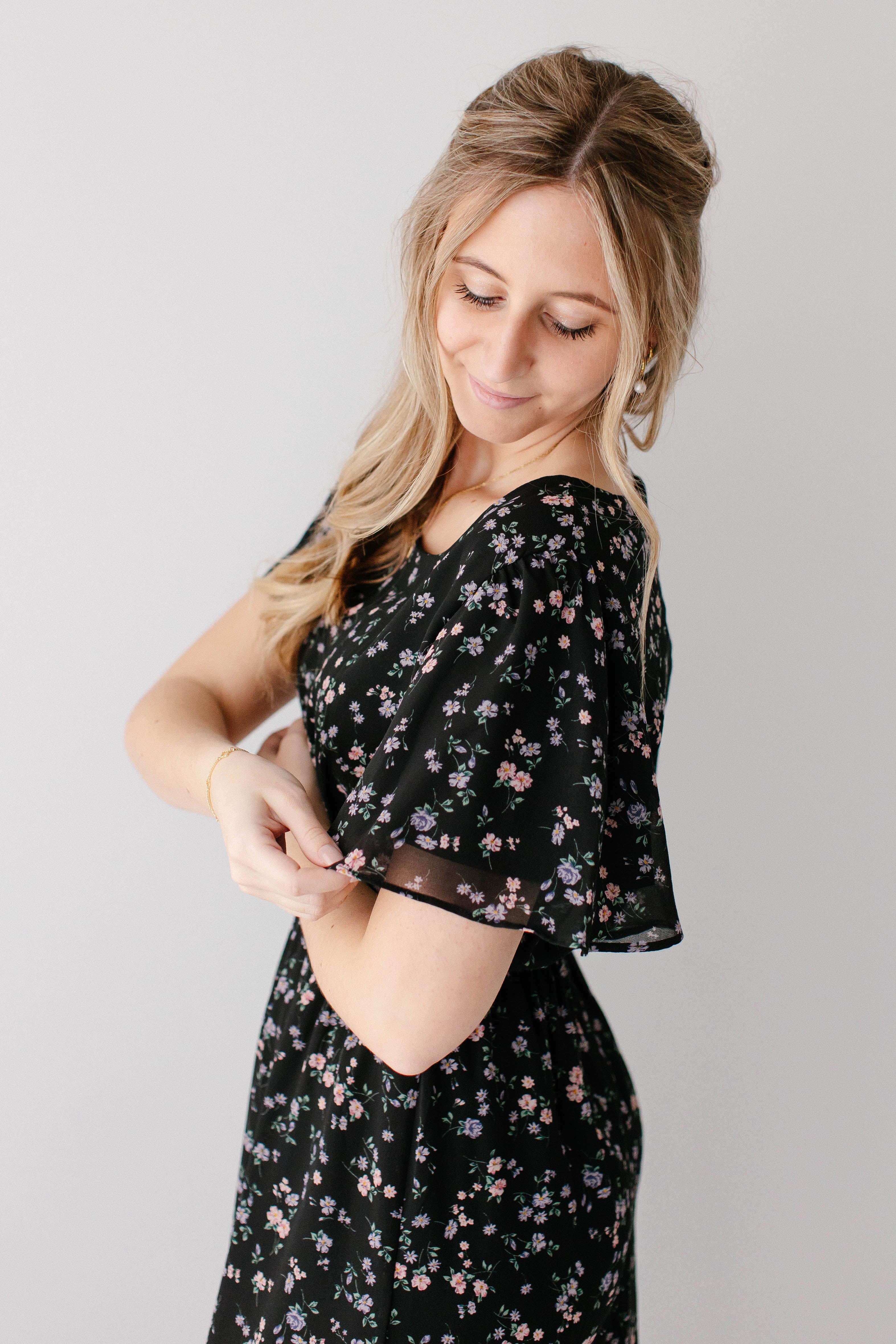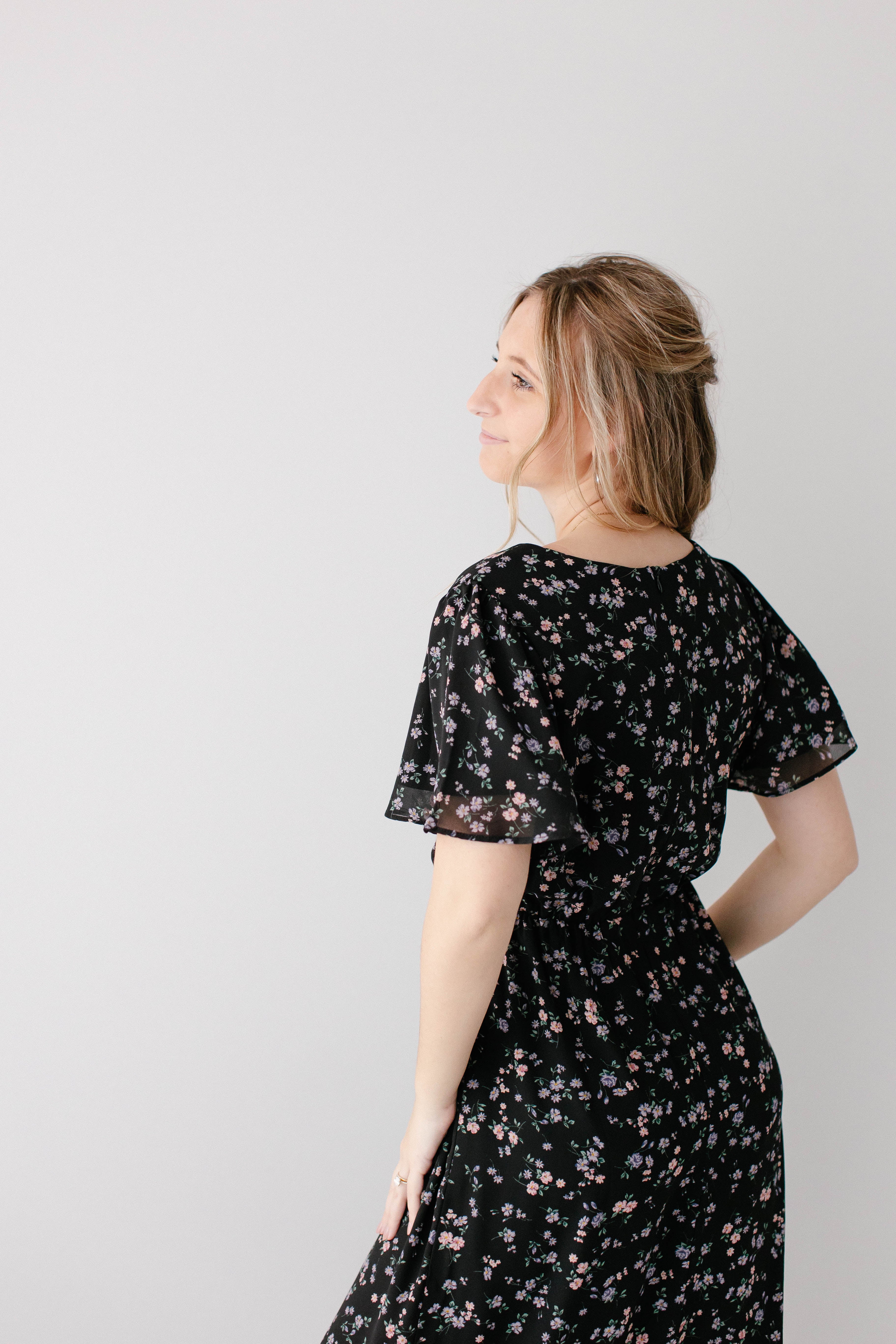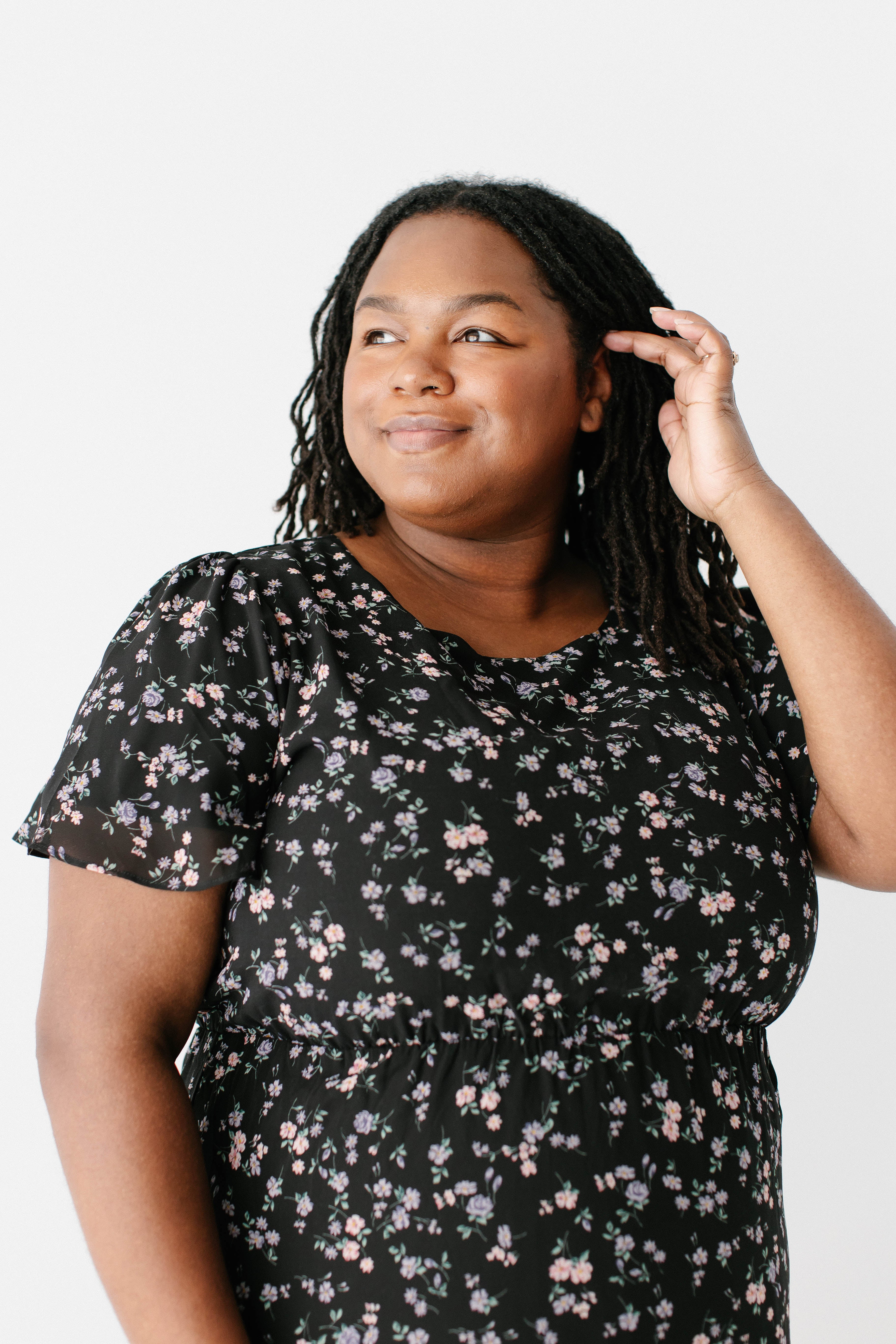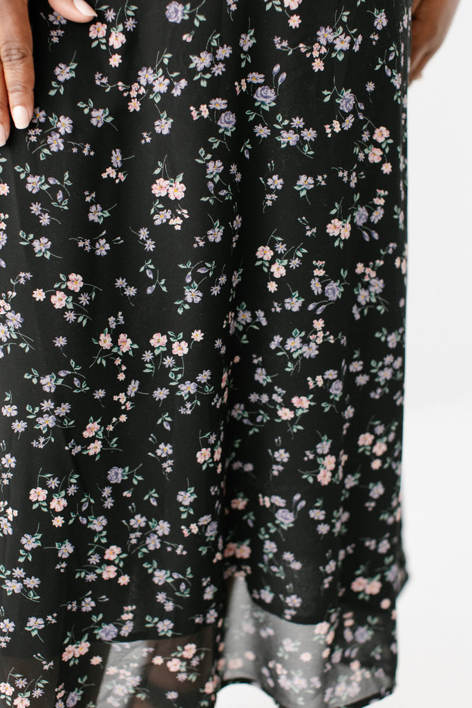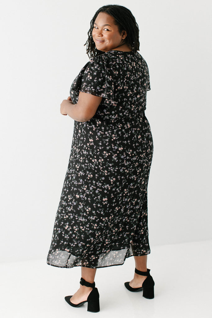Graceful, feminine, and delicate – the 'Naomi' midi dress is perfect for any occasion. Featuring a delicate and charming ditsy floral print on a black background, this midi dress creates a breathtaking look. Dress it up with low heels and a clutch or dress it down by layering with a denim jacket and clogs. Exclusively designed by us with you in mind!