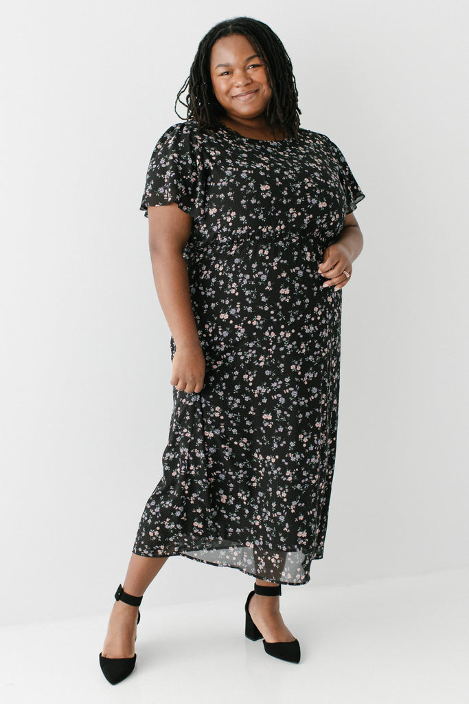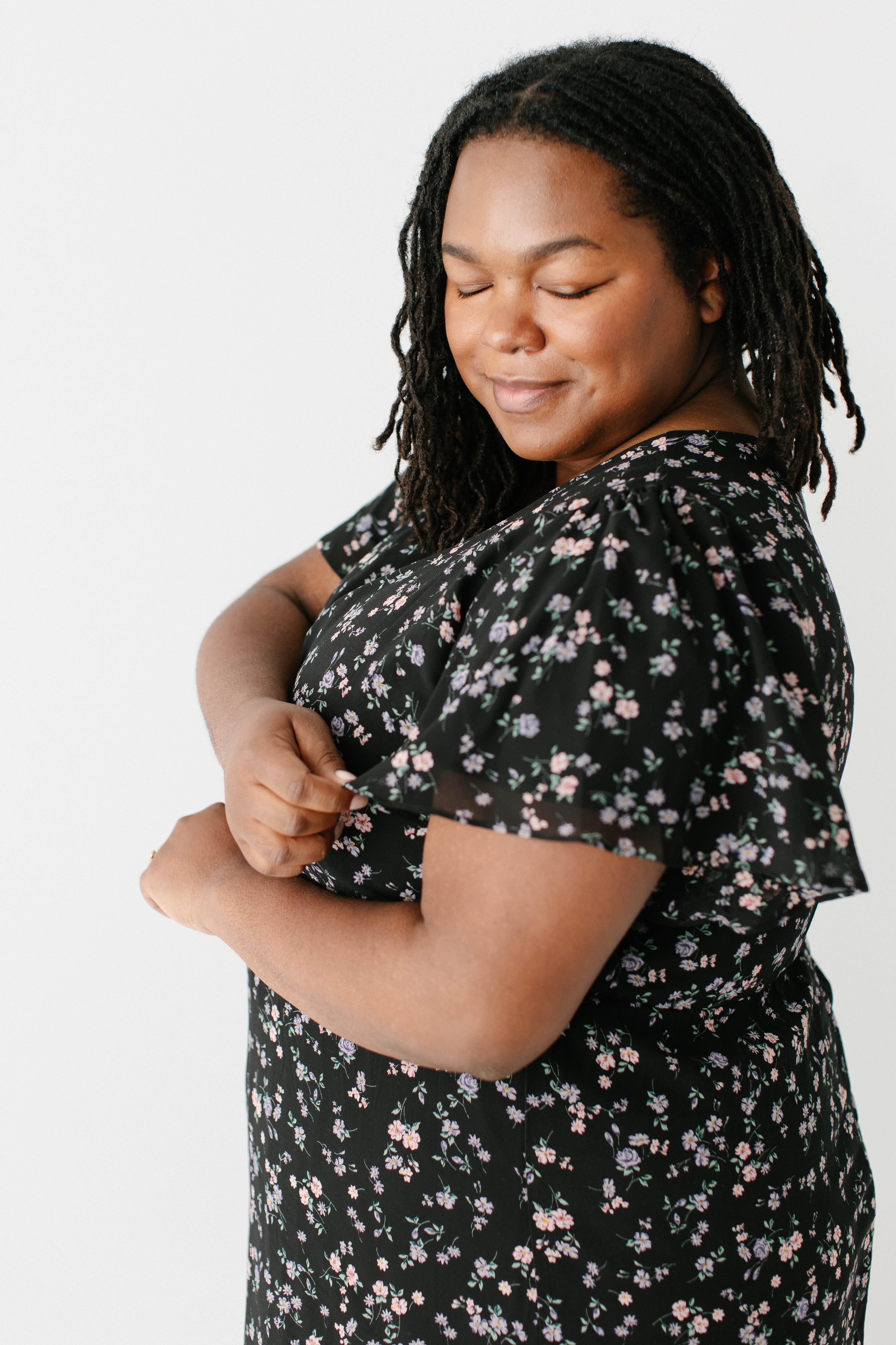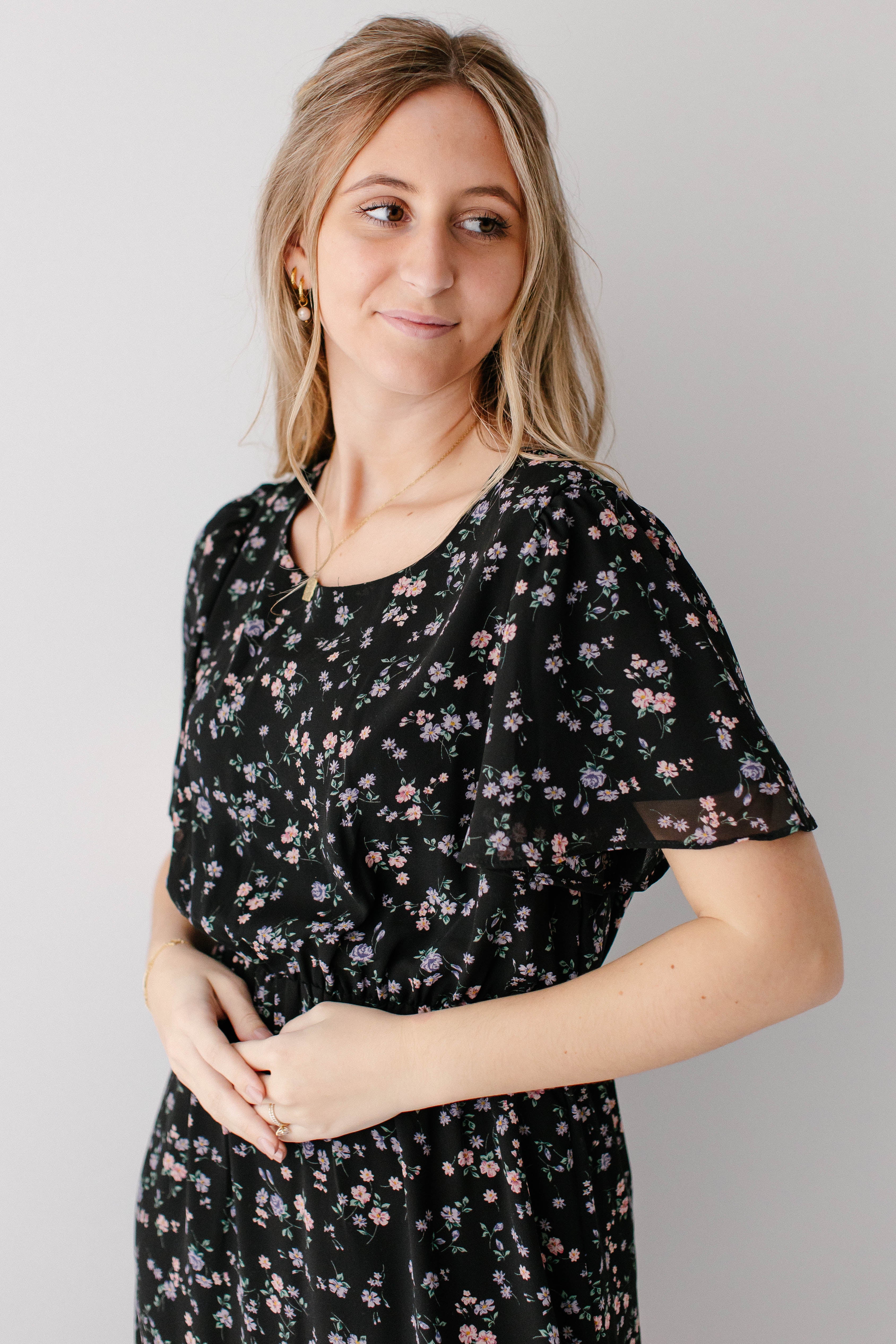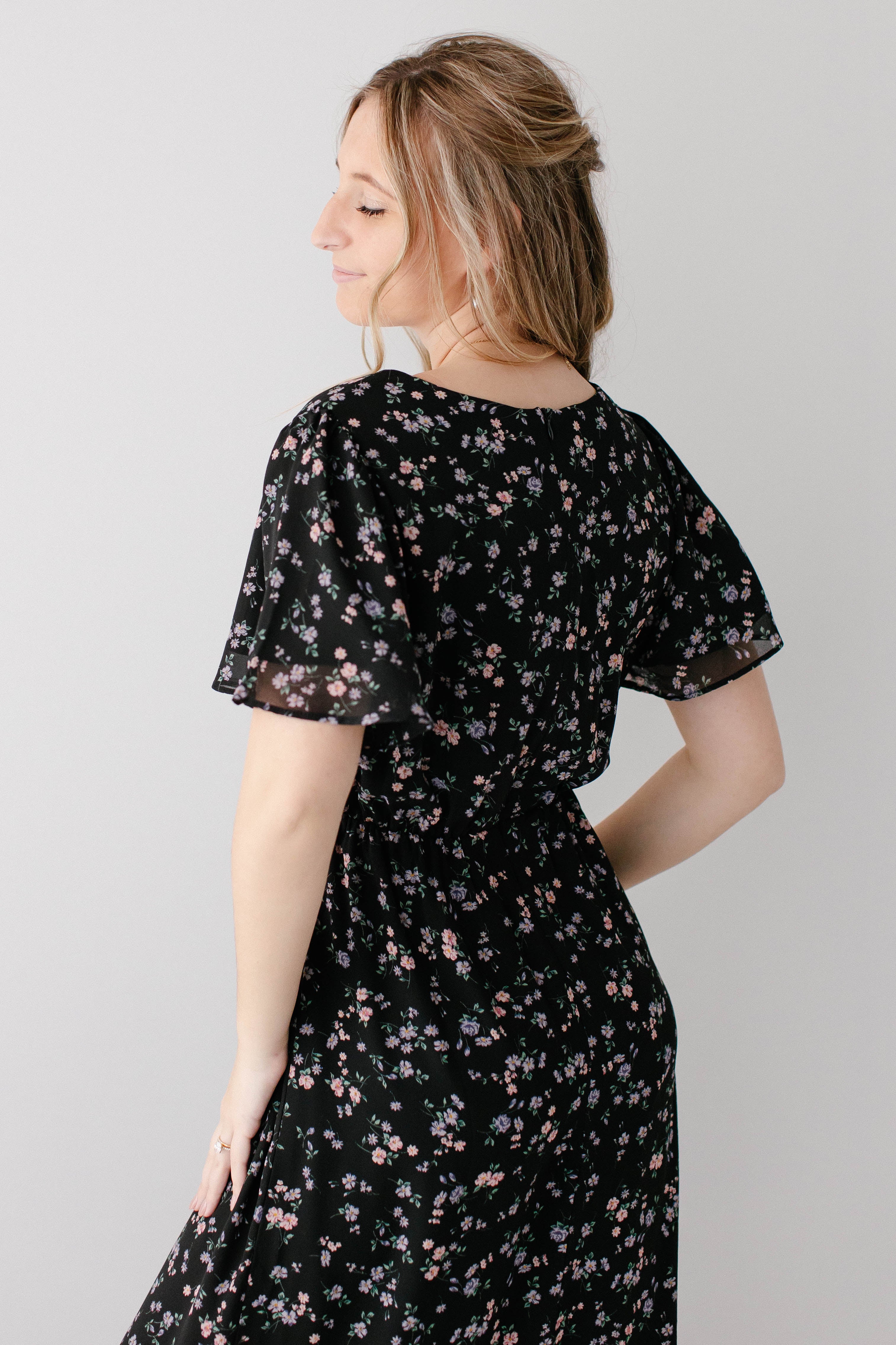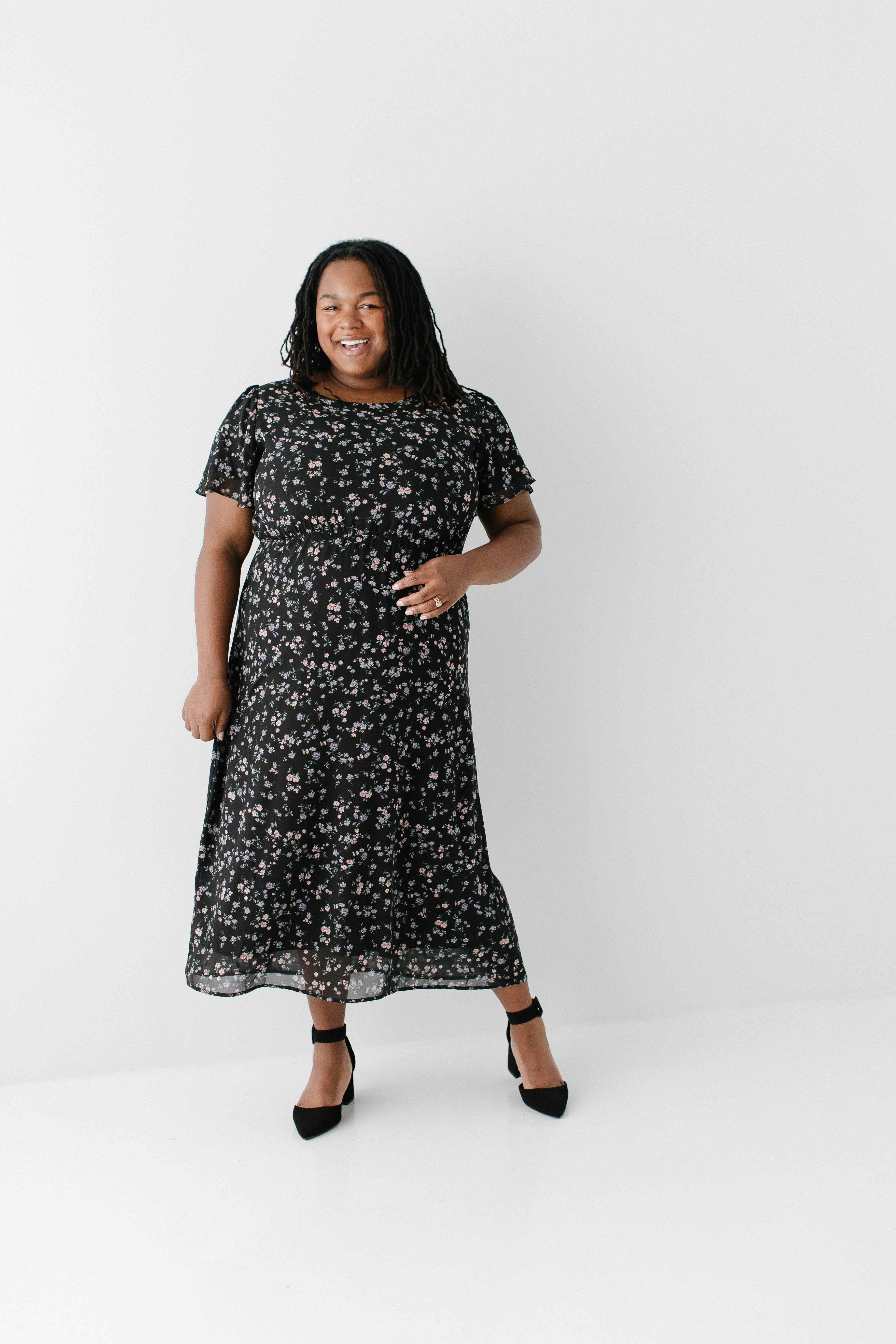 Graceful, feminine, and delicate – the 'Naomi' midi dress is perfect for any occasion. Featuring a delicate and charming ditsy floral print on a black background, this midi dress creates a breathtaking look. Dress it up with low heels and a clutch or dress it down by layering with a denim jacket and clogs. Exclusively designed by us with you in mind!