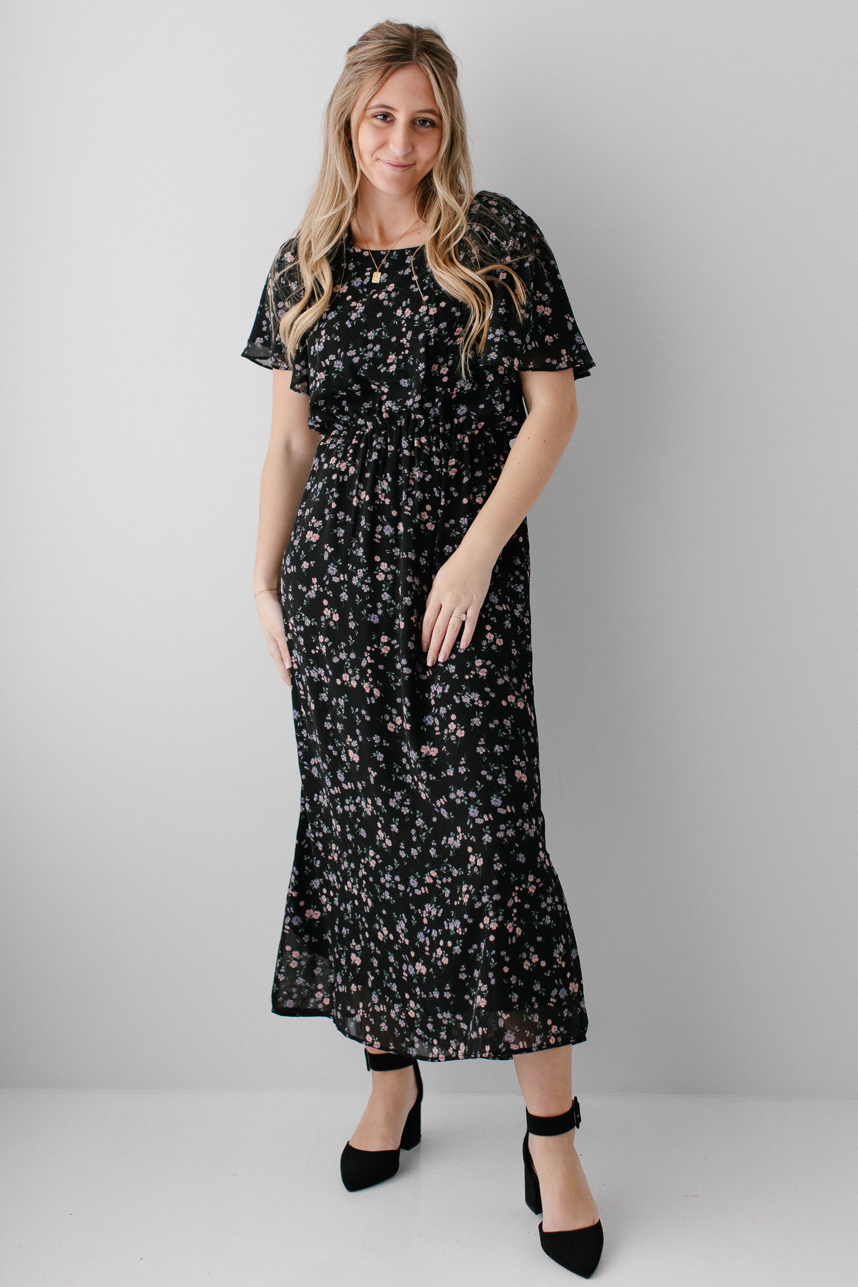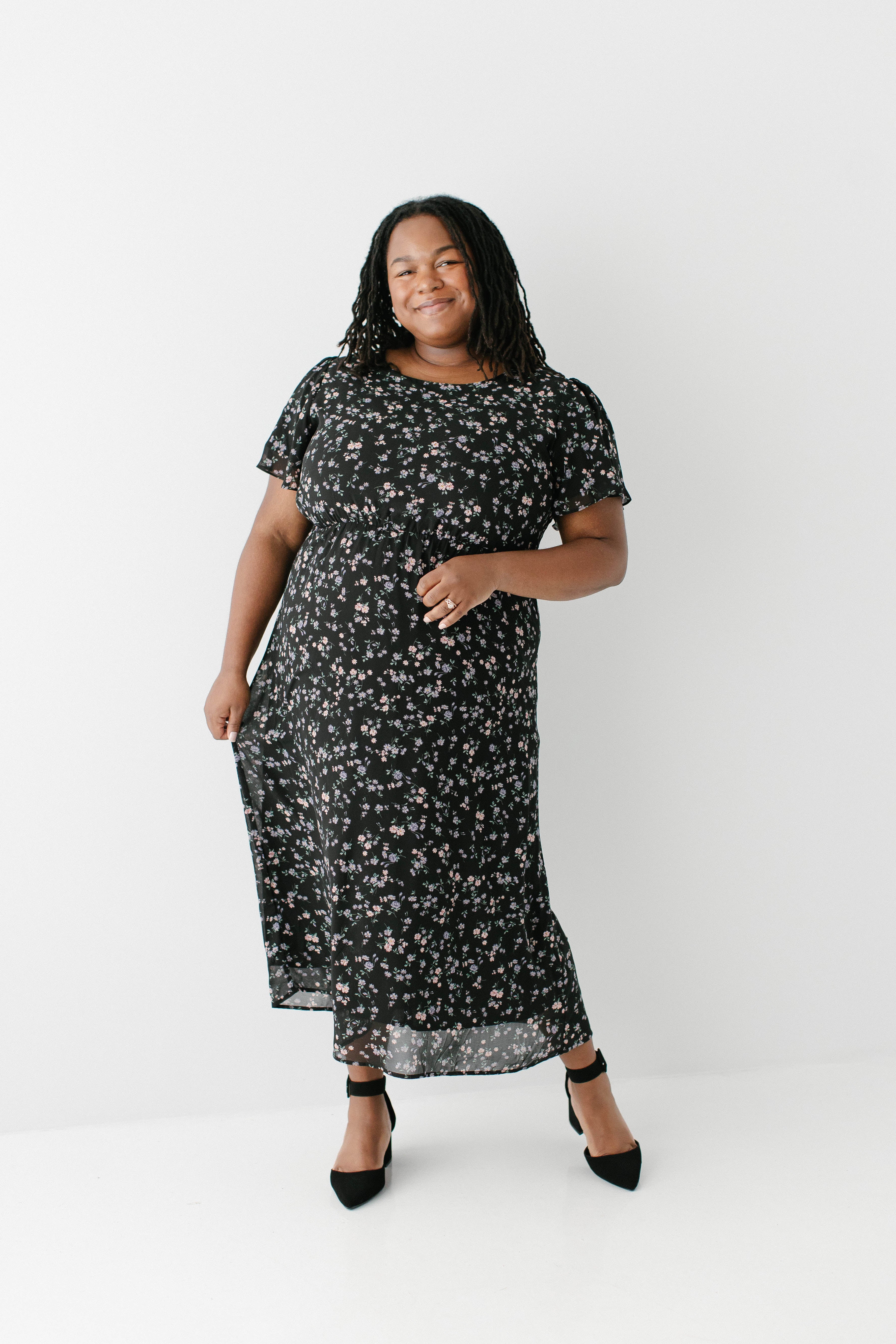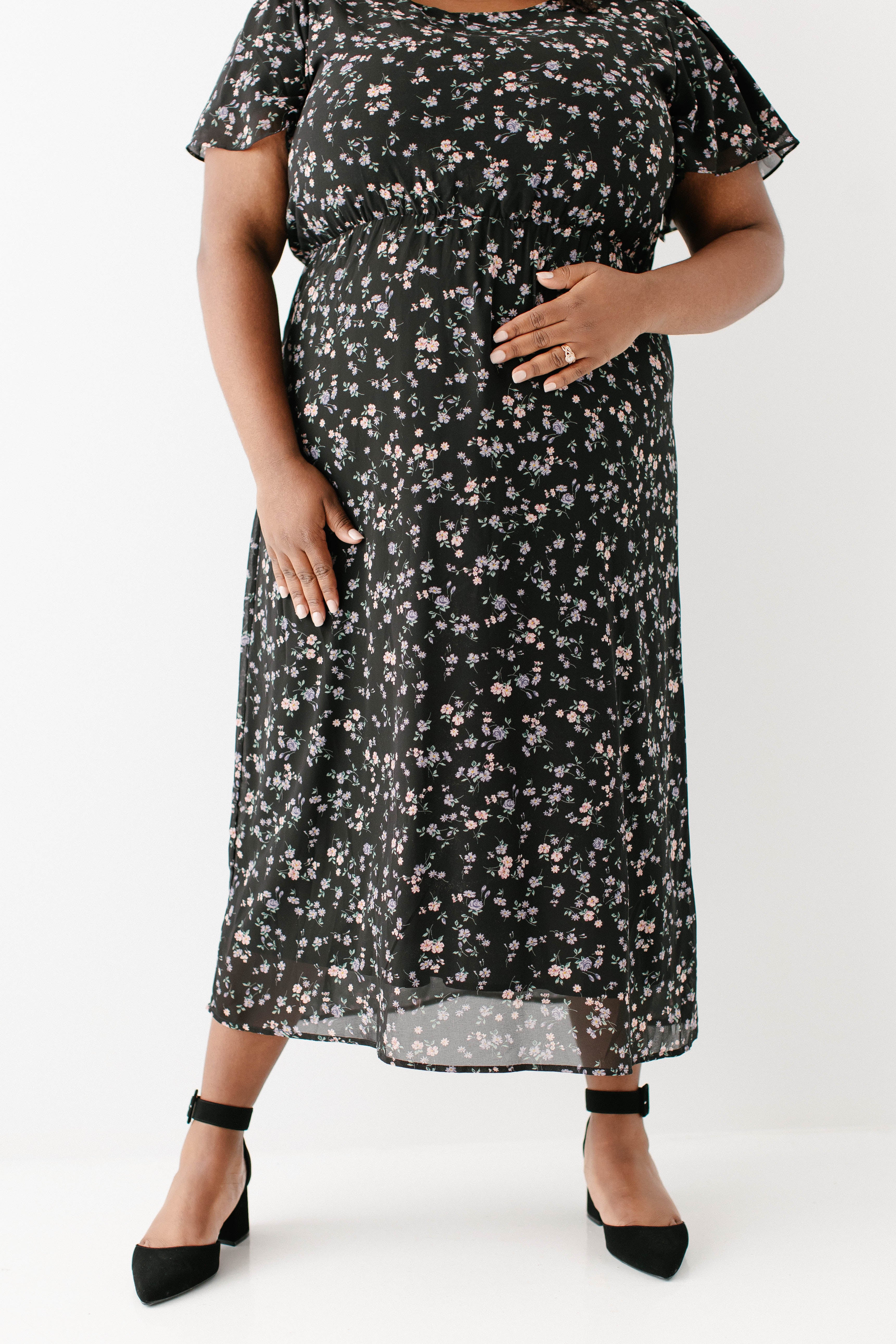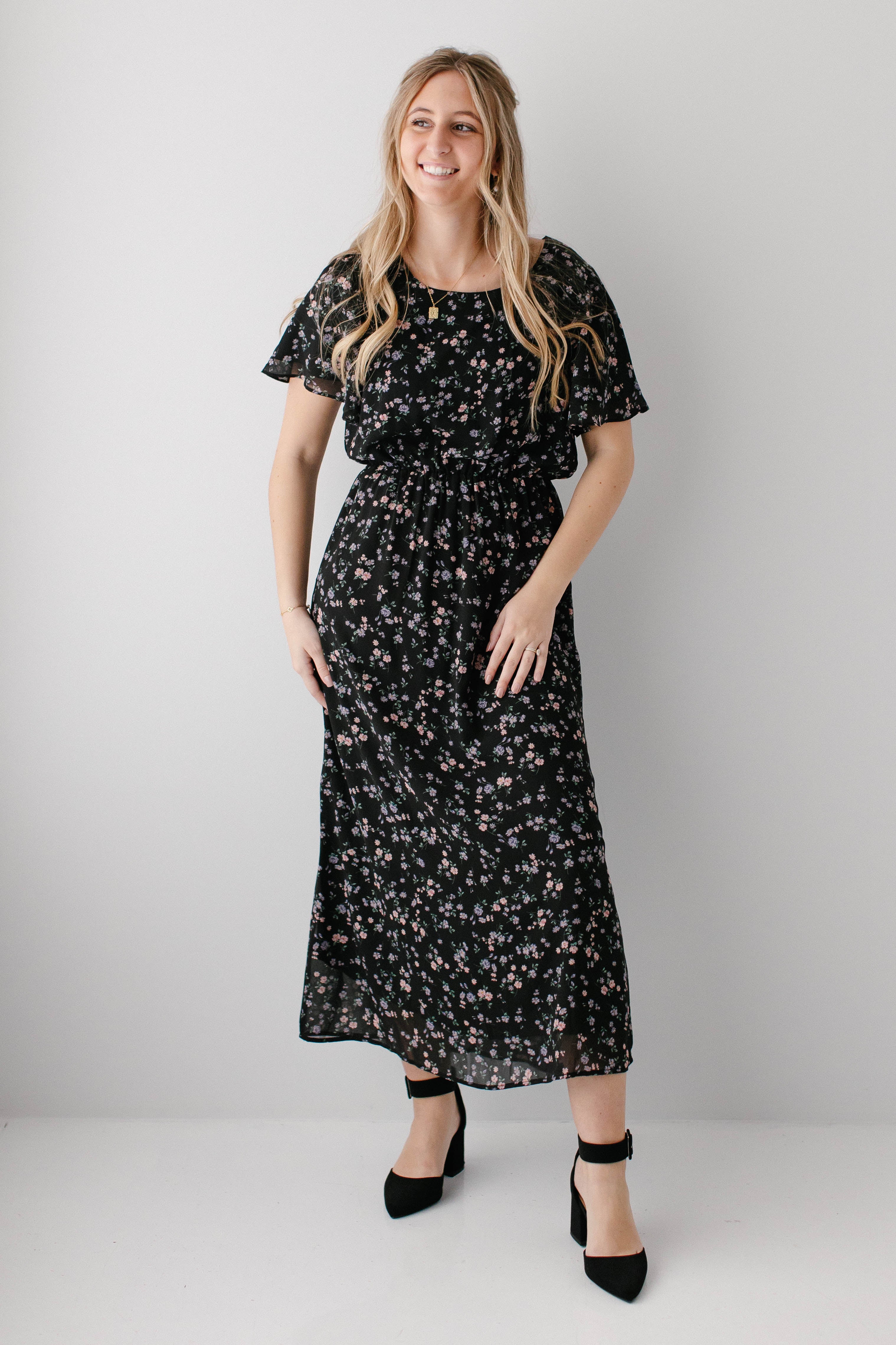 Graceful, feminine, and delicate – the 'Naomi' midi dress is perfect for any occasion. Featuring a delicate and charming ditsy floral print on a black background, this midi dress creates a breathtaking look. Dress it up with low heels and a clutch or dress it down by layering with a denim jacket and clogs. Exclusively designed by us with you in mind!
