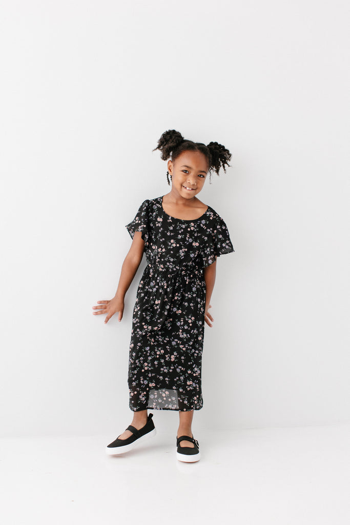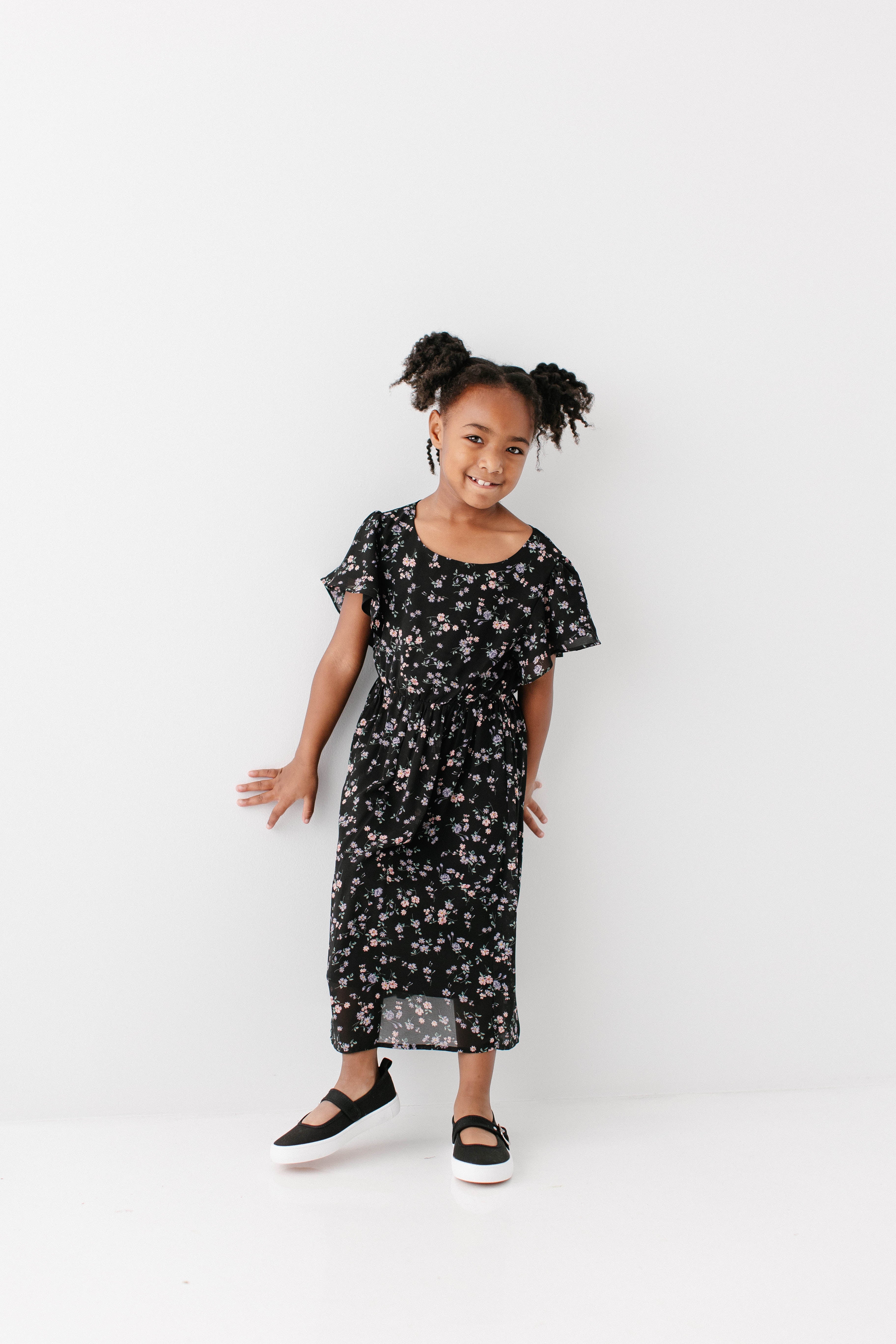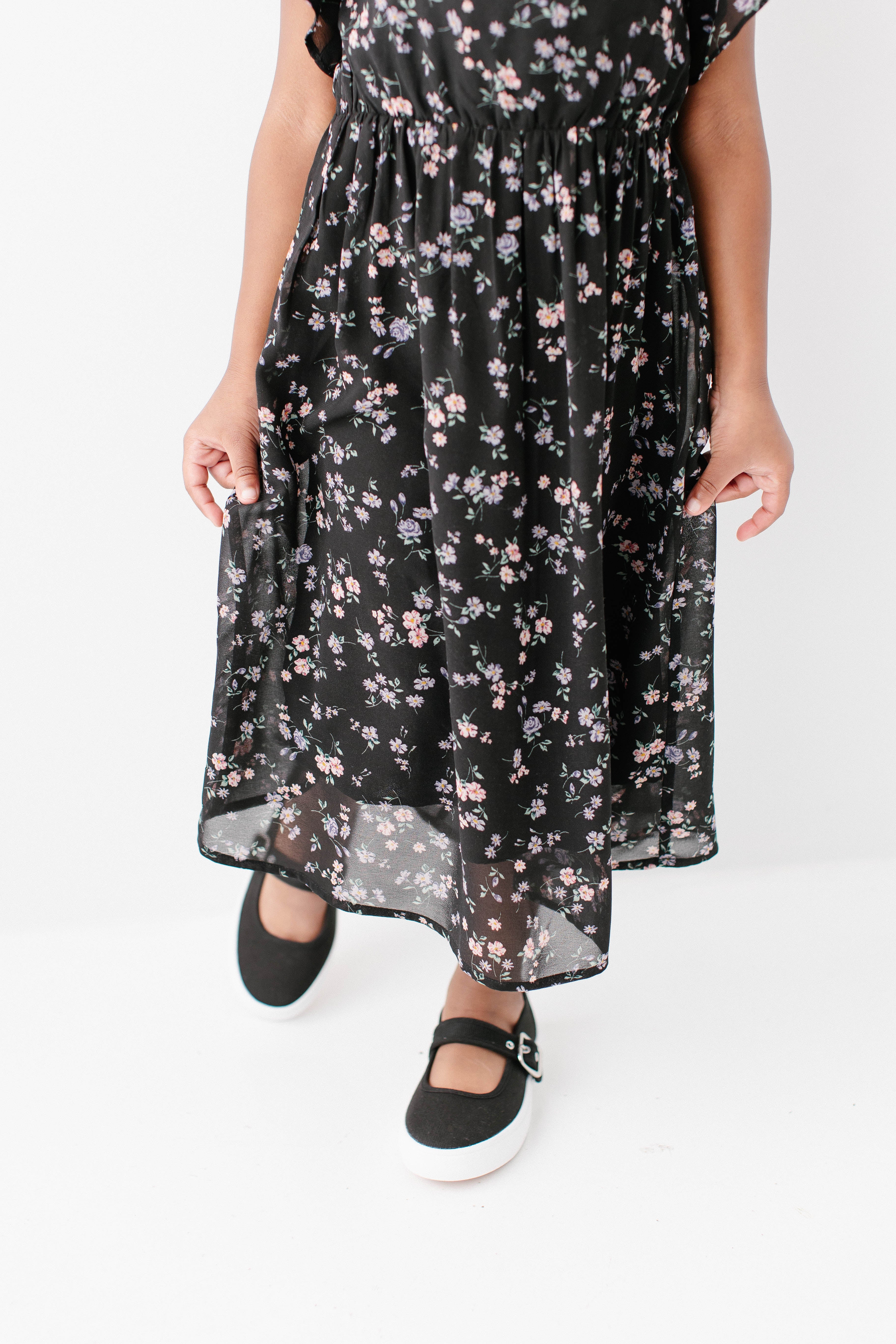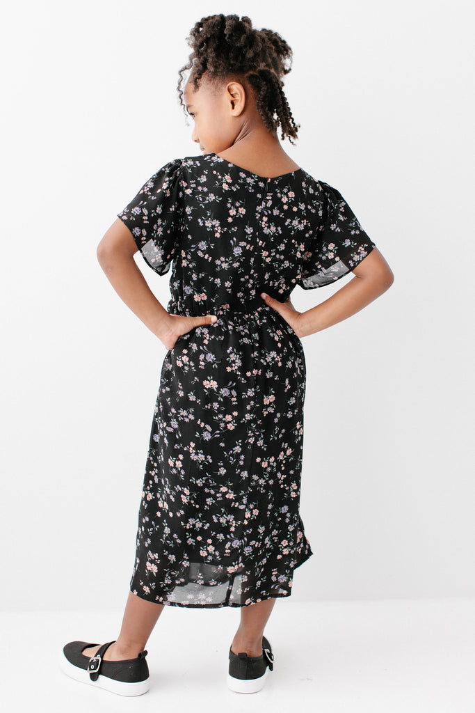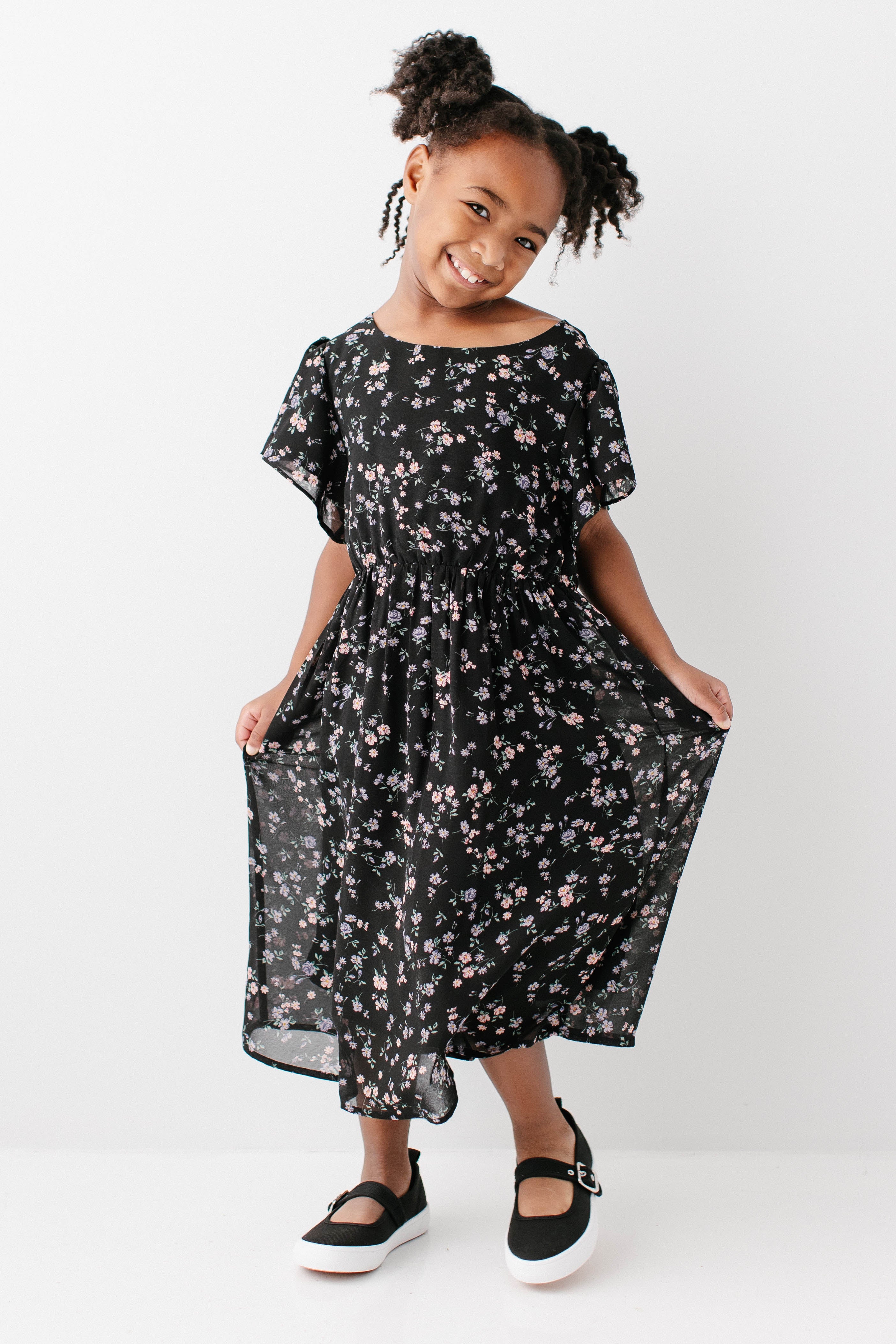 Graceful, feminine, and delicate – the 'Naomi' Girl Floral Midi Dress is the perfect choice for your little girl. With a silhouette and design made to flow, this midi dress ensures that your girl can run and play! Pair with ballet flats and a hair bow for a playful and delicate look for your girl. Exclusively designed by us with you in mind!