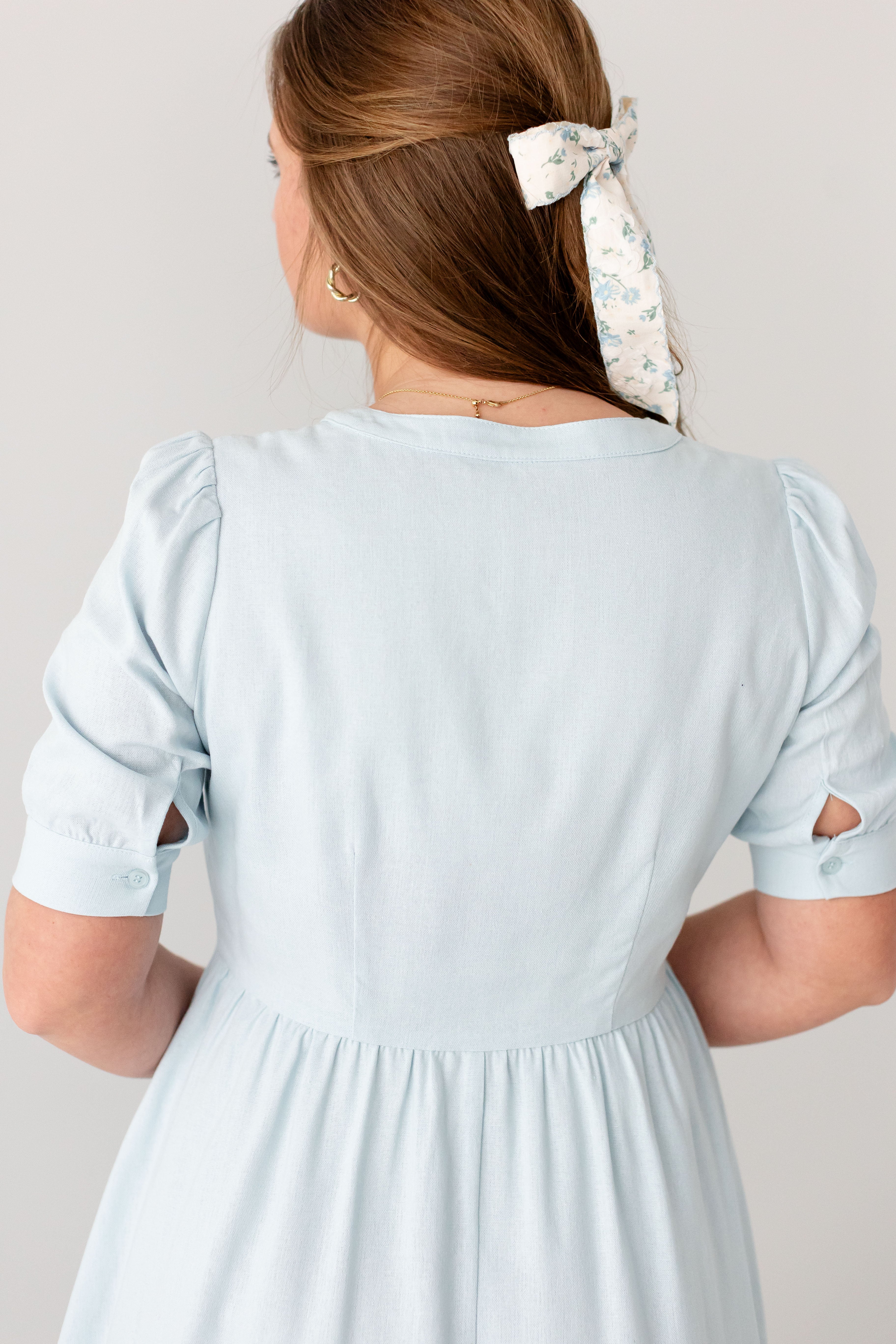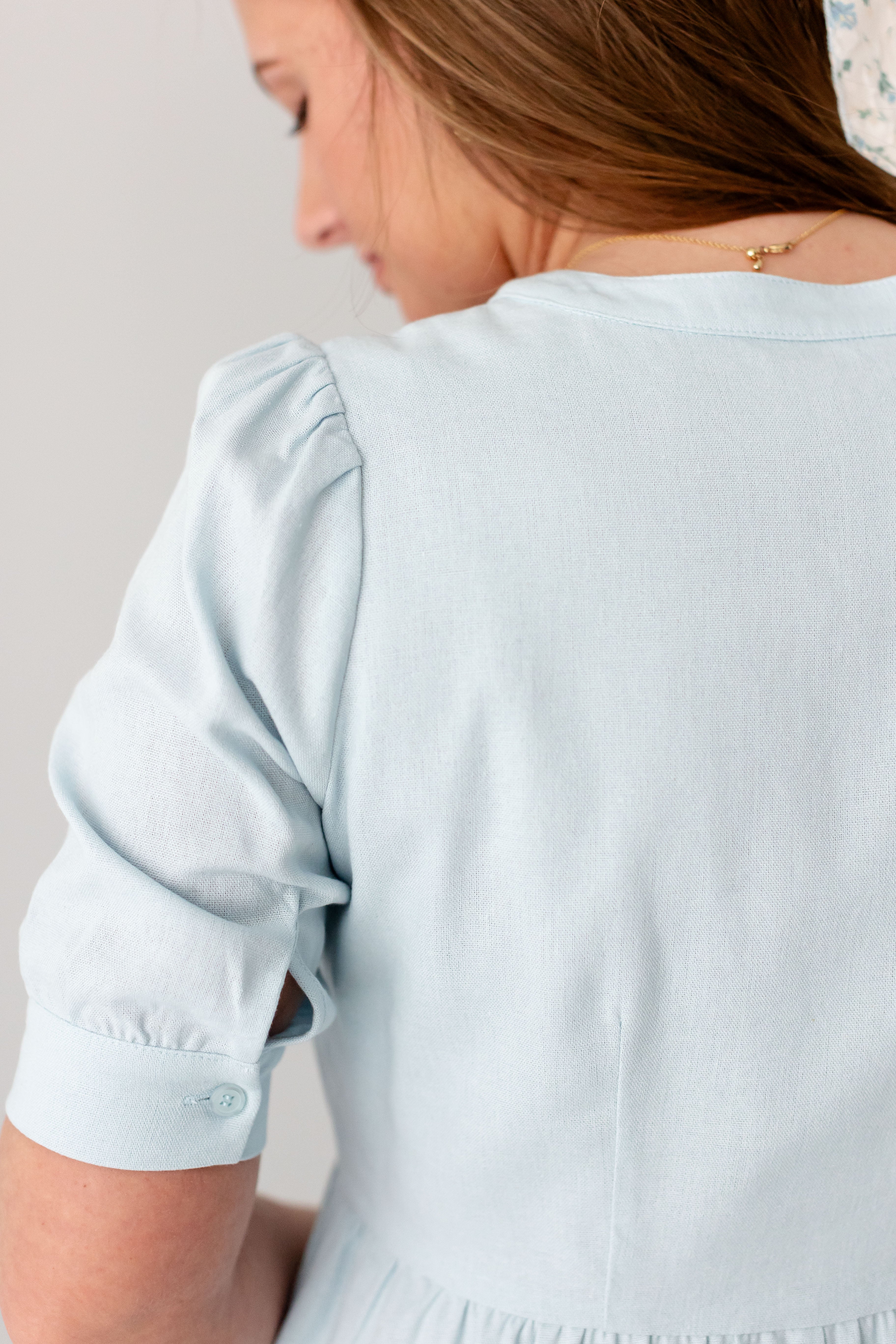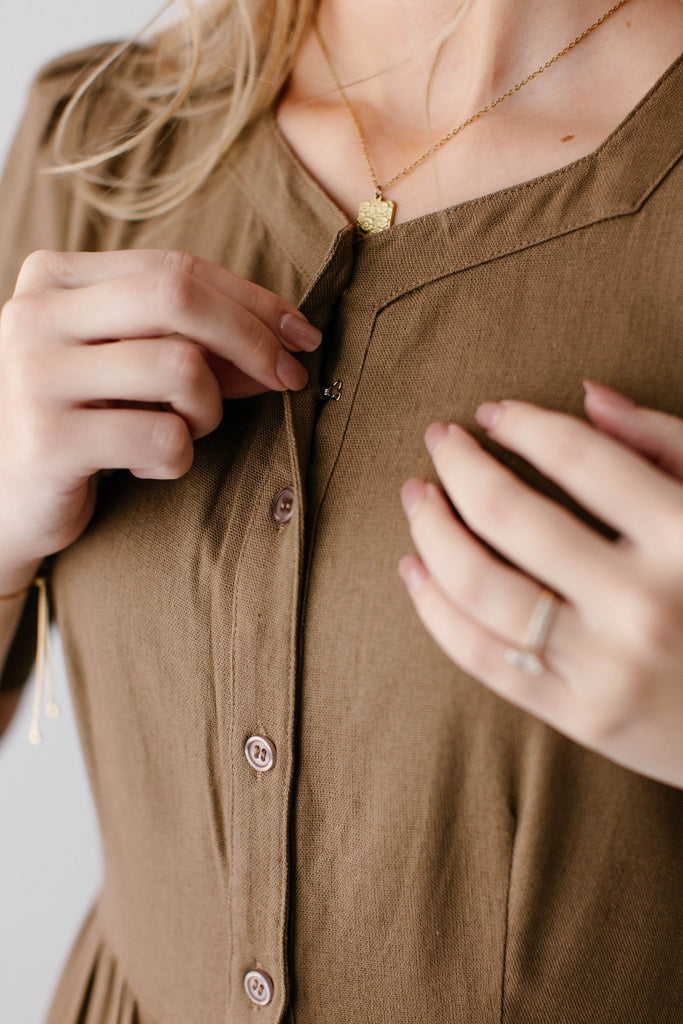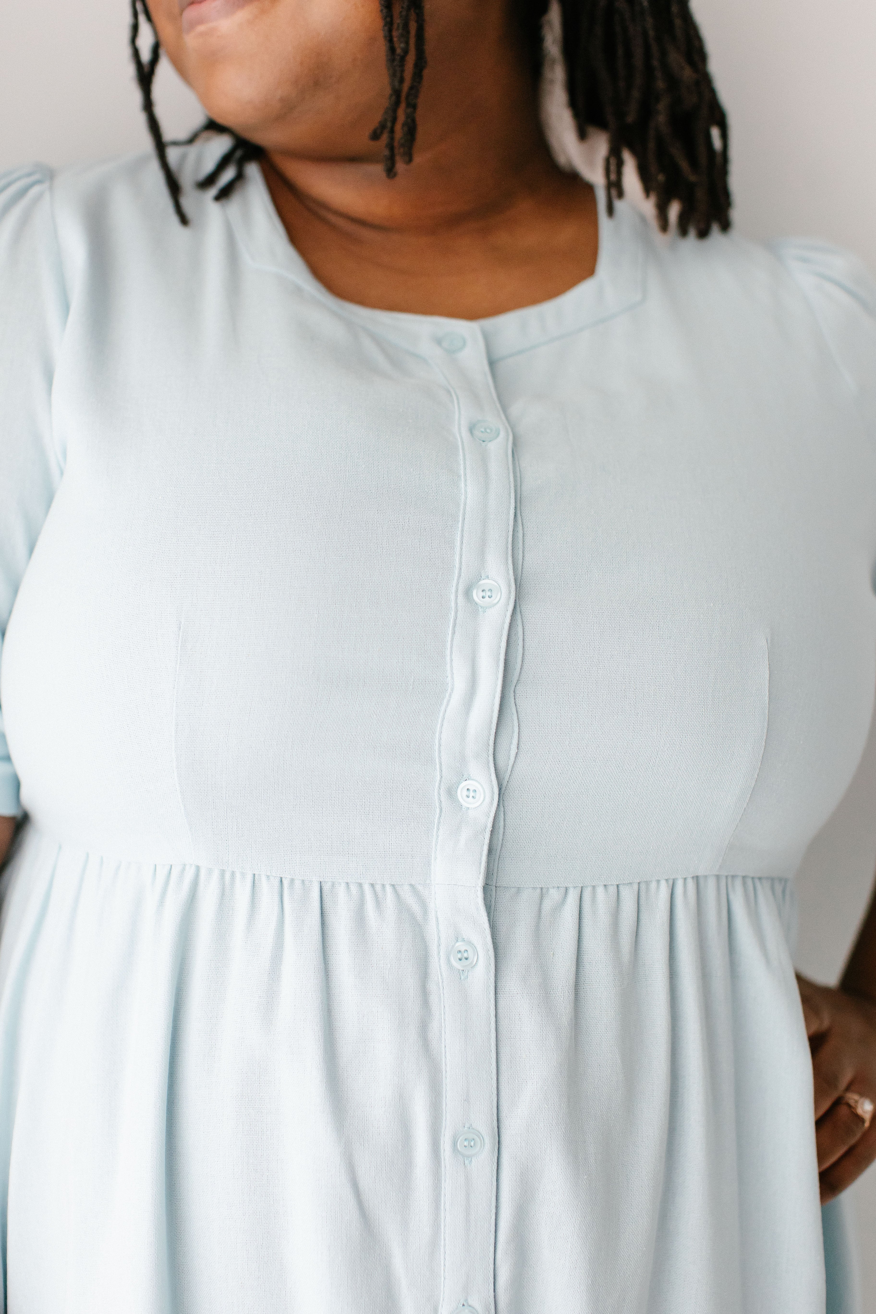 A nod to the 1940s, the 'Nora' Button Front A-Line Dress comes in a breathable cotton/linen blend fabric with a full cotton lining, a modest sweetheart neckline, functional buttons down the bodice, flowing A-line skirt, structured top, and in two fun colors - chai brown and light blue. What’s not to love about the ‘Nora’? Exclusively designed by us with you in mind.