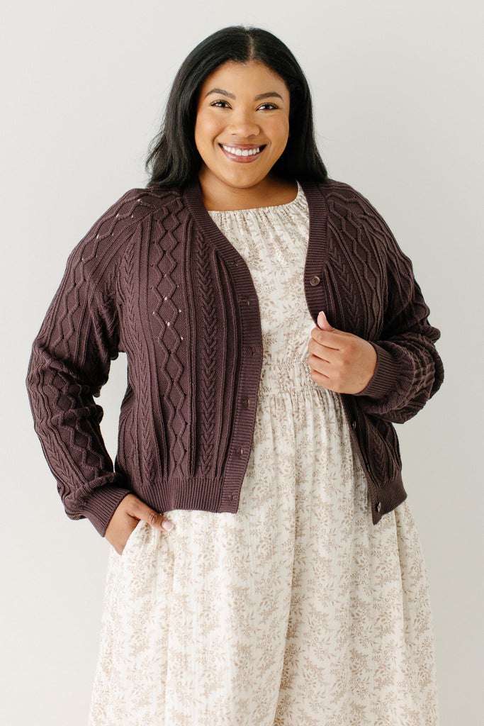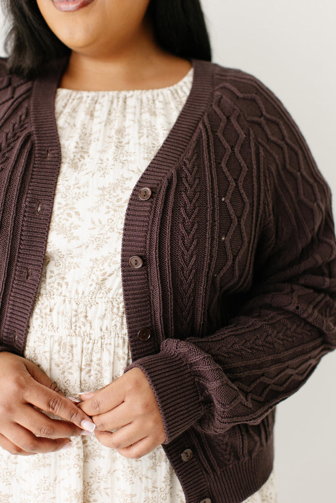 The 'Penelope' Cardigan was made to add an element of sophistication to your wardrobe! Constructed from 100% cotton, and featuring functional buttons, this long-sleeve cardigan has a cozy cable knit design and is finished with a V-neckline and ribbed detailing for a classic look that can easily be dressed up or down. The button-front design allows for effortless layering and easy wear, to add functional style. Layer over anything from dresses to tops for a look that is as cute as it is cozy! Exclusively designed with you in mind!