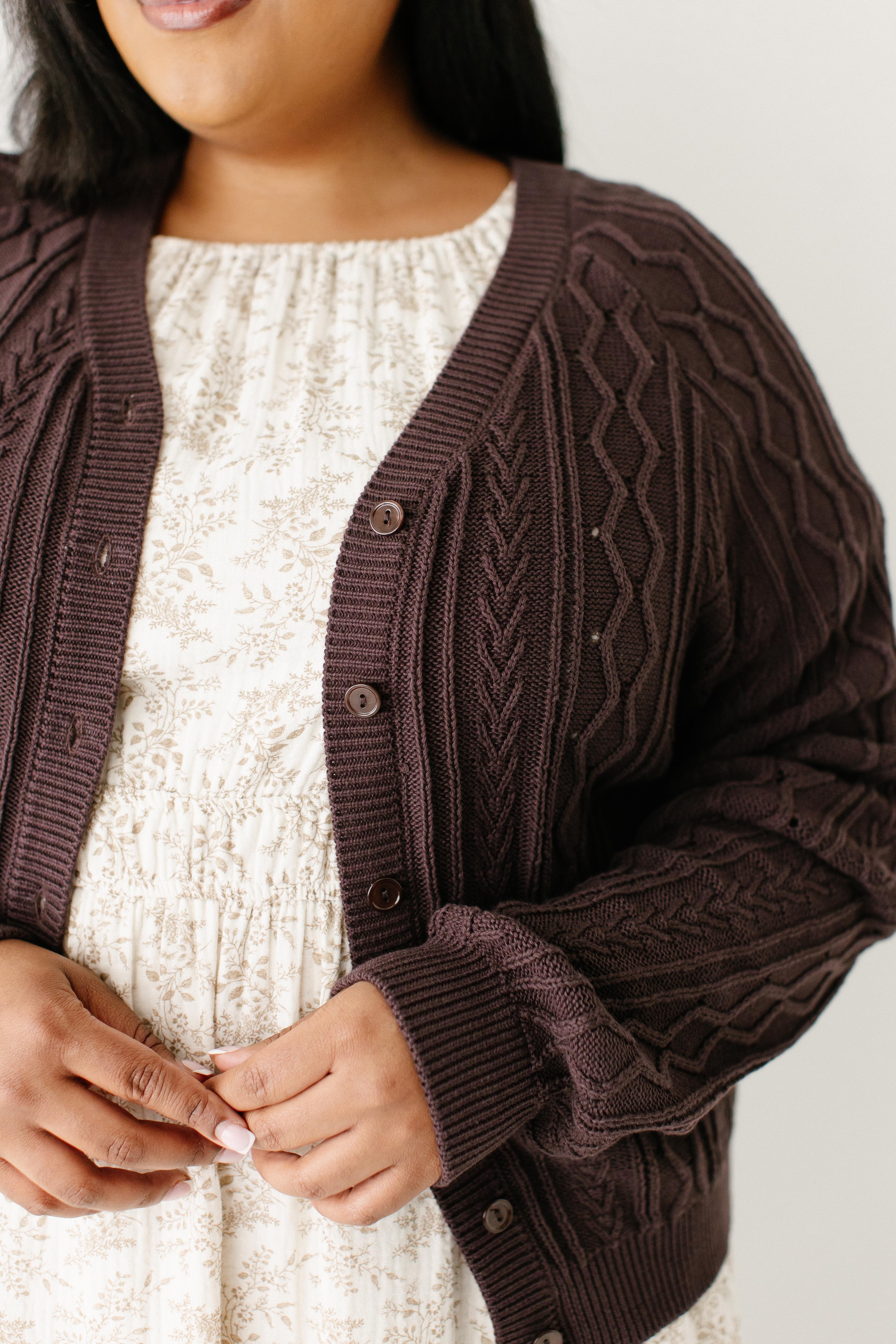 Love the detail of this cardigan and the rich brown color.
