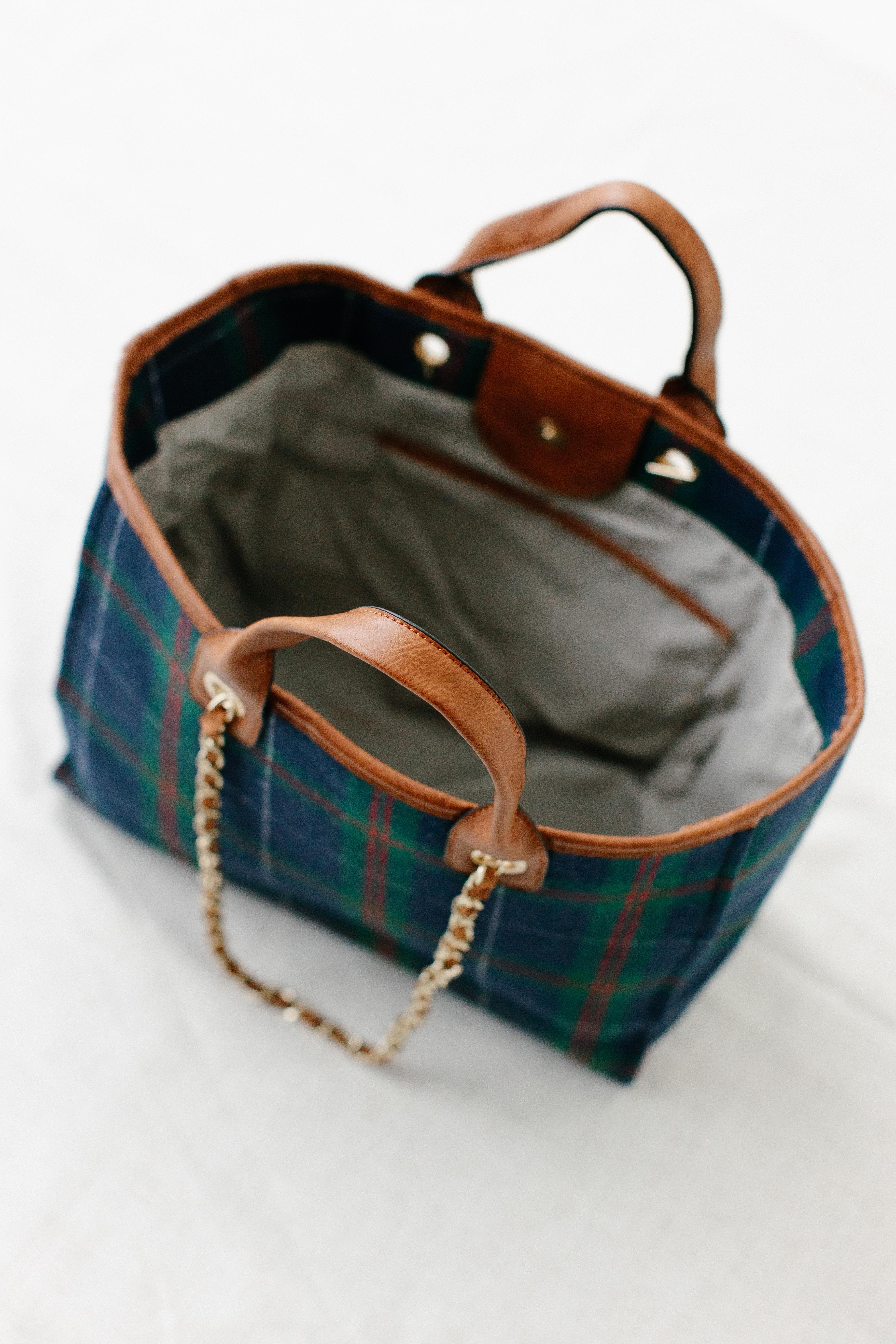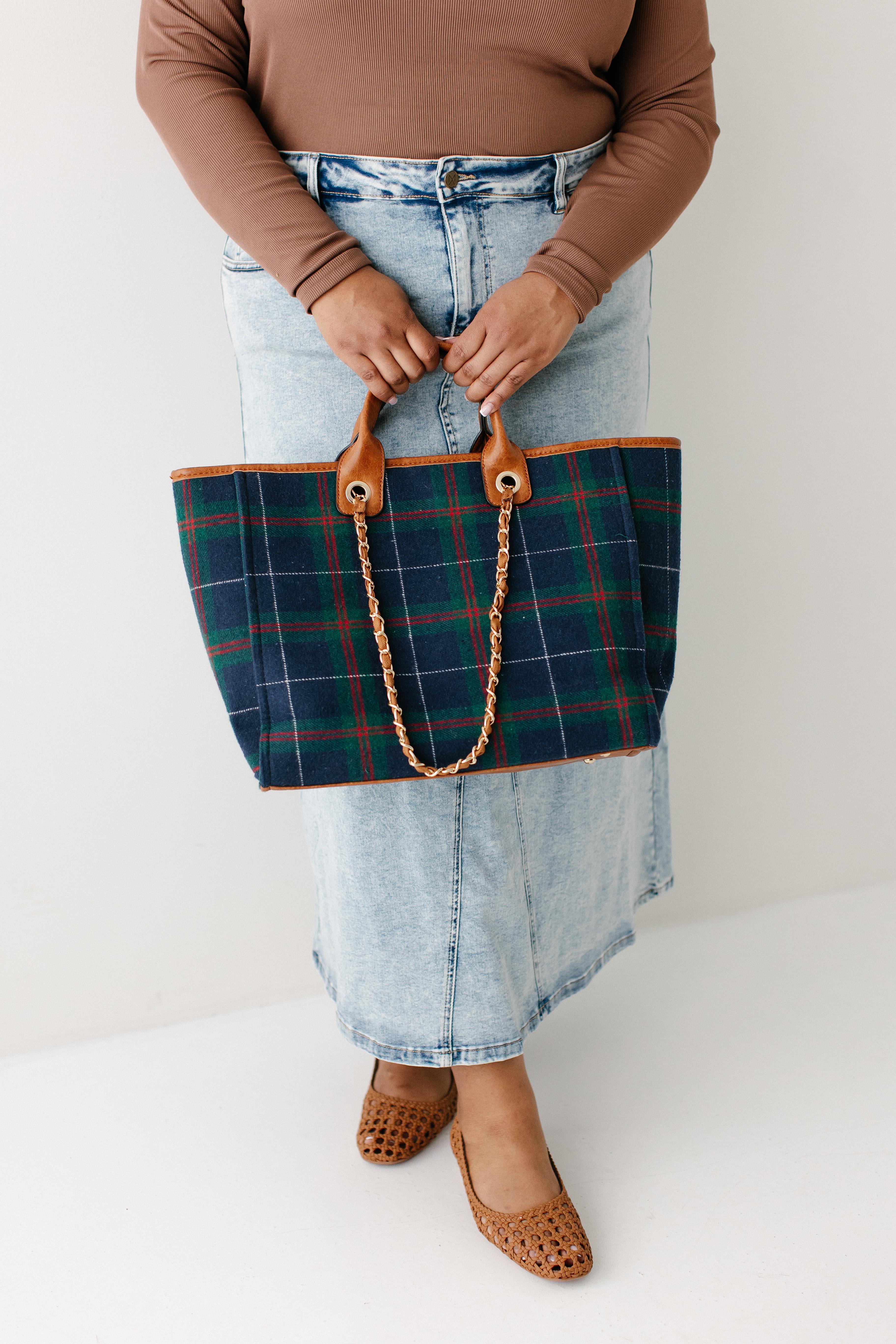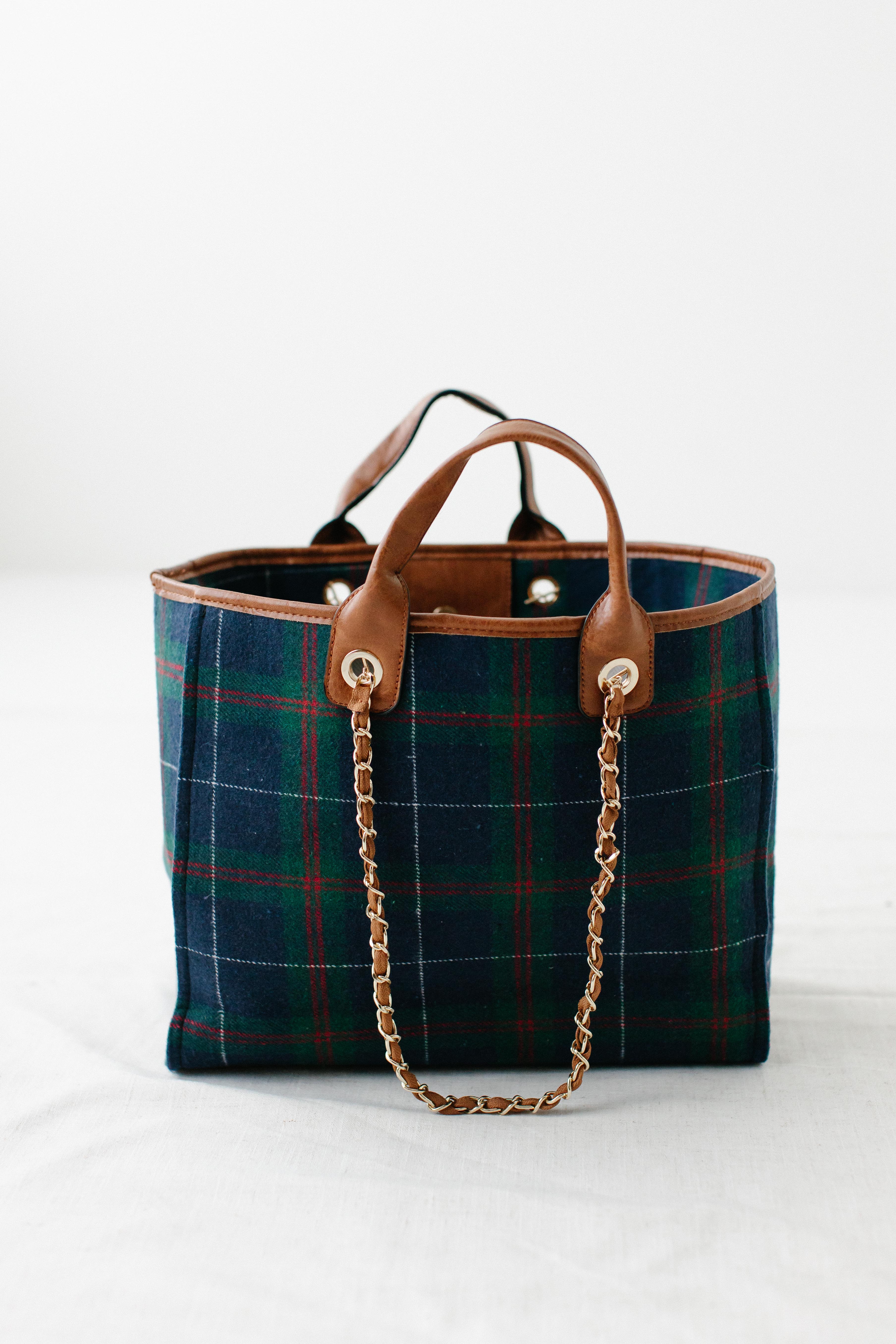 The cutest bag for the winter holidays - the Tartan Plaid Gold Chain Satchel! With a subtle tartan plaid print, fun gold chain detail, and lots of storage space, this is a perfect piece that will give you plenty of room to keep all your necessities!
