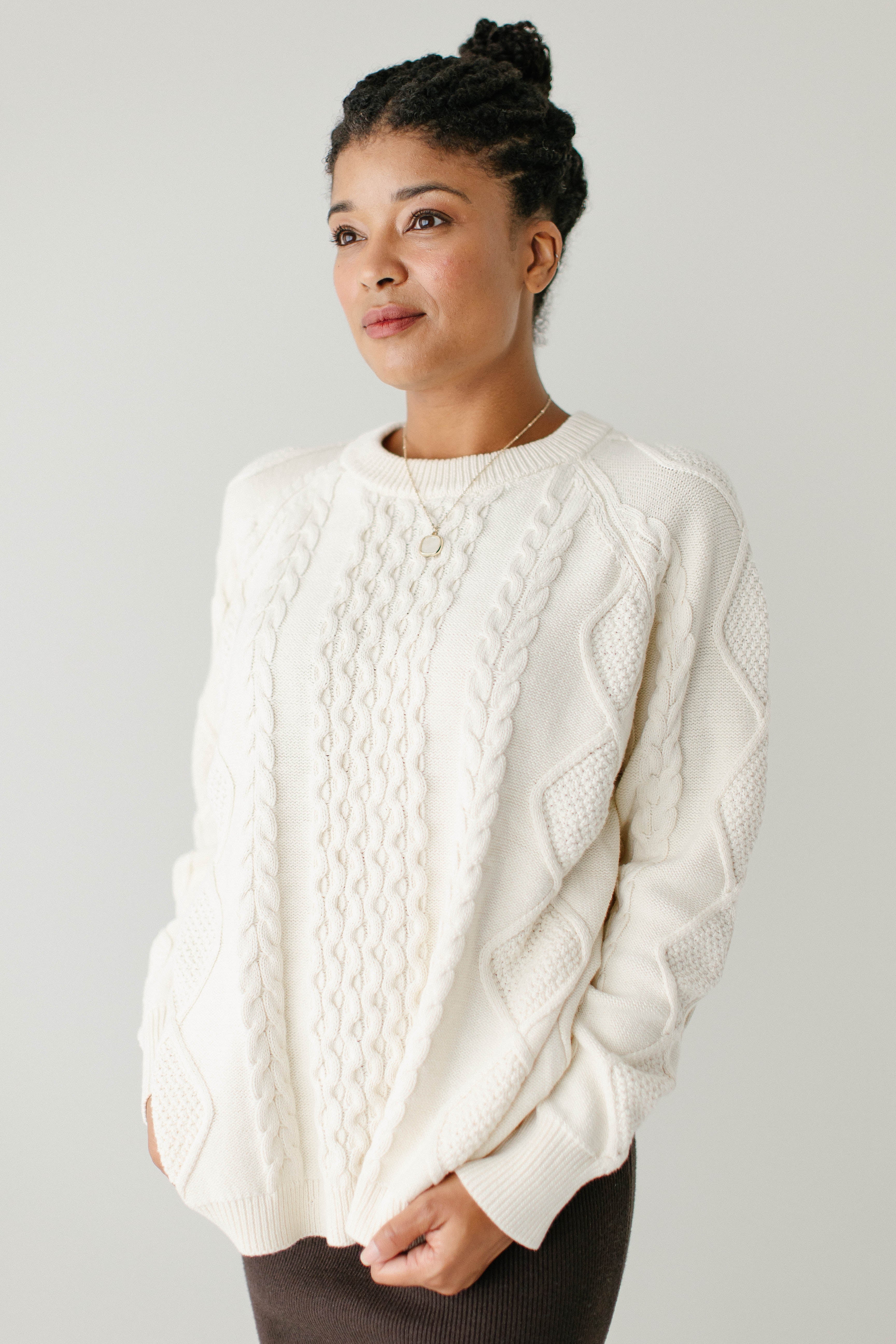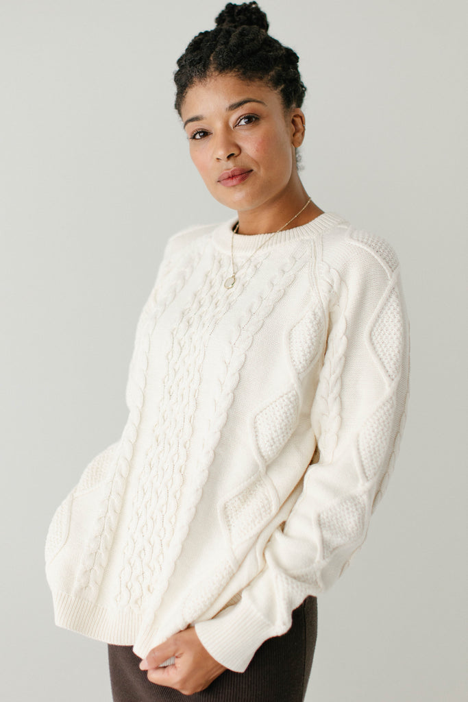 Introducing the ‘Rory’ Cable Knit Cotton Sweater, your next cozy, cold weather staple! Made from 100% cotton in an oversize fit with a classic cable knit detail in both cream and navy color options! Mix and match the ‘Rory’ with your favorite denim, or tuck into a plaid skirt for the perfect academia outfit.