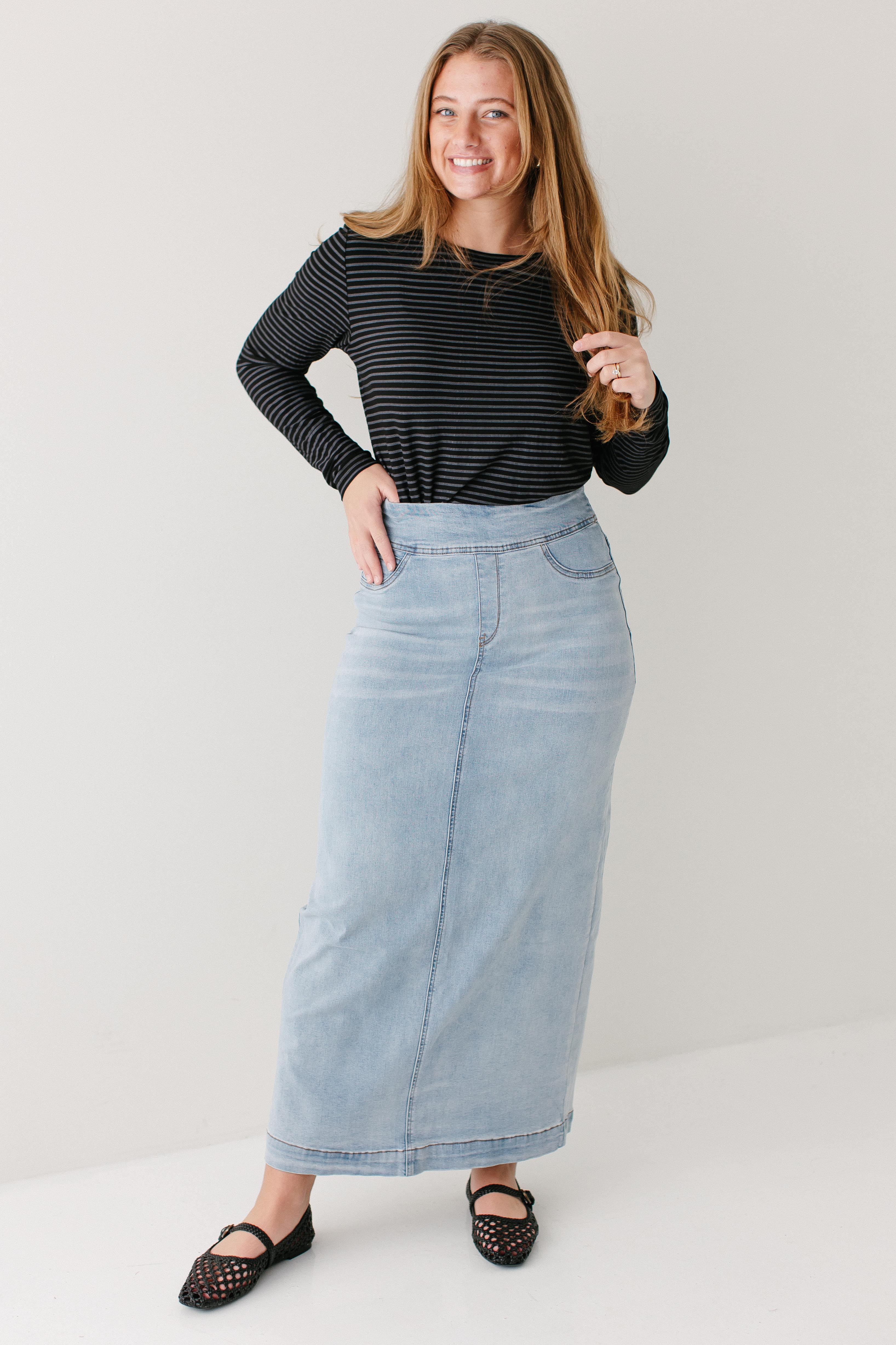 [{"id":641519157534,"handle":"clothing","title":"All Clothing","updated_at":"2025-11-17T16:25:24-05:00","body_html":"\u003cp\u003eTake a look at the designs, styles, and modest clothing that we offer online and in our store! Whether it's \u003ca href=\"https:\/\/mainstreetexchangeapparel.com\/collections\/dresses\"\u003emodest dresses\u003c\/a\u003e, \u003ca href=\"https:\/\/mainstreetexchangeapparel.com\/collections\/denim\"\u003edenim skirts\u003c\/a\u003e, \u003ca href=\"https:\/\/mainstreetexchangeapparel.com\/collections\/skort\"\u003eathletic skorts\u003c\/a\u003e, \u003ca href=\"https:\/\/mainstreetexchangeapparel.com\/collections\/mama\"\u003ematernity outfits\u003c\/a\u003e, \u003ca href=\"https:\/\/mainstreetexchangeapparel.com\/collections\/shirt-blouse\"\u003eblouses \u0026amp; tops\u003c\/a\u003e, or more, we are excited to bring you the styles for any occasion and season! Live, work, relax, and play in style, comfort, and modesty!\u003c\/p\u003e","published_at":"2025-07-10T02:01:27-04:00","sort_order":"best-selling","template_suffix":"","disjunctive":true,"rules":[{"column":"type","relation":"equals","condition":"Dress"},{"column":"type","relation":"equals","condition":"Dress 90% Markup"},{"column":"type","relation":"equals","condition":"Dresses"},{"column":"type","relation":"equals","condition":"Girl Dress"},{"column":"type","relation":"equals","condition":"Girl Skirt"},{"column":"type","relation":"equals","condition":"Girl Top"},{"column":"type","relation":"equals","condition":"Shirt"},{"column":"type","relation":"equals","condition":"Shirts \u0026 Tops"},{"column":"type","relation":"equals","condition":"Skirt"},{"column":"type","relation":"equals","condition":"Skirts"},{"column":"type","relation":"equals","condition":"Top"},{"column":"type","relation":"equals","condition":"Tops"},{"column":"type","relation":"equals","condition":"tops"},{"column":"type","relation":"equals","condition":"Skort"},{"column":"type","relation":"equals","condition":"Skorts"}],"published_scope":"global"},{"id":479195660574,"handle":"all-products","title":"All Products","updated_at":"2025-11-17T16:25:24-05:00","body_html":"","published_at":"2024-10-14T16:31:11-04:00","sort_order":"best-selling","template_suffix":"","disjunctive":false,"rules":[{"column":"title","relation":"not_contains","condition":"unlock free returns"},{"column":"title","relation":"not_contains","condition":"gift card"},{"column":"title","relation":"not_contains","condition":"shipping protection"}],"published_scope":"global"},{"id":645449384222,"handle":"all-products-no-final-sale-items","title":"All Products, No Final Sale Items","updated_at":"2025-11-17T16:22:44-05:00","body_html":"\u003cp\u003eThis collection contains all of our products for both in-store and online, excluding final sale items. \u003c\/p\u003e","published_at":"2025-10-29T14:29:05-04:00","sort_order":"best-selling","template_suffix":"","disjunctive":false,"rules":[{"column":"title","relation":"not_contains","condition":"FINAL SALE"},{"column":"title","relation":"not_contains","condition":"Shipping"},{"column":"title","relation":"not_contains","condition":"Pay now"},{"column":"title","relation":"not_contains","condition":"Gift Card"}],"published_scope":"global"},{"id":261982748756,"handle":"back-to-school","updated_at":"2025-11-17T16:16:28-05:00","published_at":"2025-07-30T12:31:37-04:00","sort_order":"manual","template_suffix":"","published_scope":"global","title":"Back to School","body_html":""},{"id":637272916254,"handle":"denim-maxi-skirts","updated_at":"2025-11-17T07:00:31-05:00","published_at":"2025-03-01T13:07:24-05:00","sort_order":"best-selling","template_suffix":"","published_scope":"global","title":"Denim Maxi Skirts","body_html":"\u003cp\u003eBrowse our wide collection of denim maxi skirts to find the perfect one for your next outing or event! Choose a maxi skirt that is stylish without sacrificing quality or fabric quality.\u003c\/p\u003e\n\u003c!-- split --\u003e\n\u003ch2 dir=\"ltr\" style=\"text-align: left;\"\u003e\u003cspan\u003eThere’s nothing like a denim maxi skirt to give you that cool, laid-back look while remaining modest and covered! \u003c\/span\u003e\u003c\/h2\u003e\n\u003cp dir=\"ltr\" style=\"text-align: left;\"\u003e\u003cspan\u003eDenim maxi skirts not only offer a way to look effortless, casual, and chic, but they’re quite versatile. When paired with a colorful or unique top, the maxi denim skirt becomes a neutral piece the way a pair of jeans might, but when paired with a simple black or white top, the denim becomes the focal point of the understated outfit.\u003c\/span\u003e\u003c\/p\u003e\n\u003cp dir=\"ltr\" style=\"text-align: left;\"\u003e\u003cspan\u003eOur modest denim maxi skirts are stylish, well-made, and come in a variety of weights and washes. The fabric is high-quality and usually has a bit of stretch for maximum comfort. \u003c\/span\u003e\u003c\/p\u003e\n\u003ch2 dir=\"ltr\" style=\"text-align: left;\"\u003e\u003cspan\u003eHere’s what people have been saying about our denim maxi skirts:\u003c\/span\u003e\u003c\/h2\u003e\n\u003cp dir=\"ltr\" style=\"text-align: left;\"\u003e\u003cspan\u003eThis skirt is the perfect weight \u0026amp; soft stretch. It is very long, so I hemmed it up a little for myself. But, it is a perfect length and a wonderful find for my taller friends who have difficulty finding denim skirts long enough for their preferences. – Jill\u003c\/span\u003e\u003c\/p\u003e\n\u003cp dir=\"ltr\" style=\"text-align: left;\"\u003e\u003cspan\u003eThe material of this skirt is very comfortable and the length is just right for me. Skirt definitely exceeded expectations. – Cas\u003c\/span\u003e\u003c\/p\u003e\n\u003cp dir=\"ltr\" style=\"text-align: left;\"\u003e\u003cspan\u003eI’m new to wearing skirts as a lifestyle. This skirt makes the transition so easy! It is comfortable, stretchy, and lightweight while still being warm enough for the colder days. – Kylie U\u003c\/span\u003e\u003c\/p\u003e\n