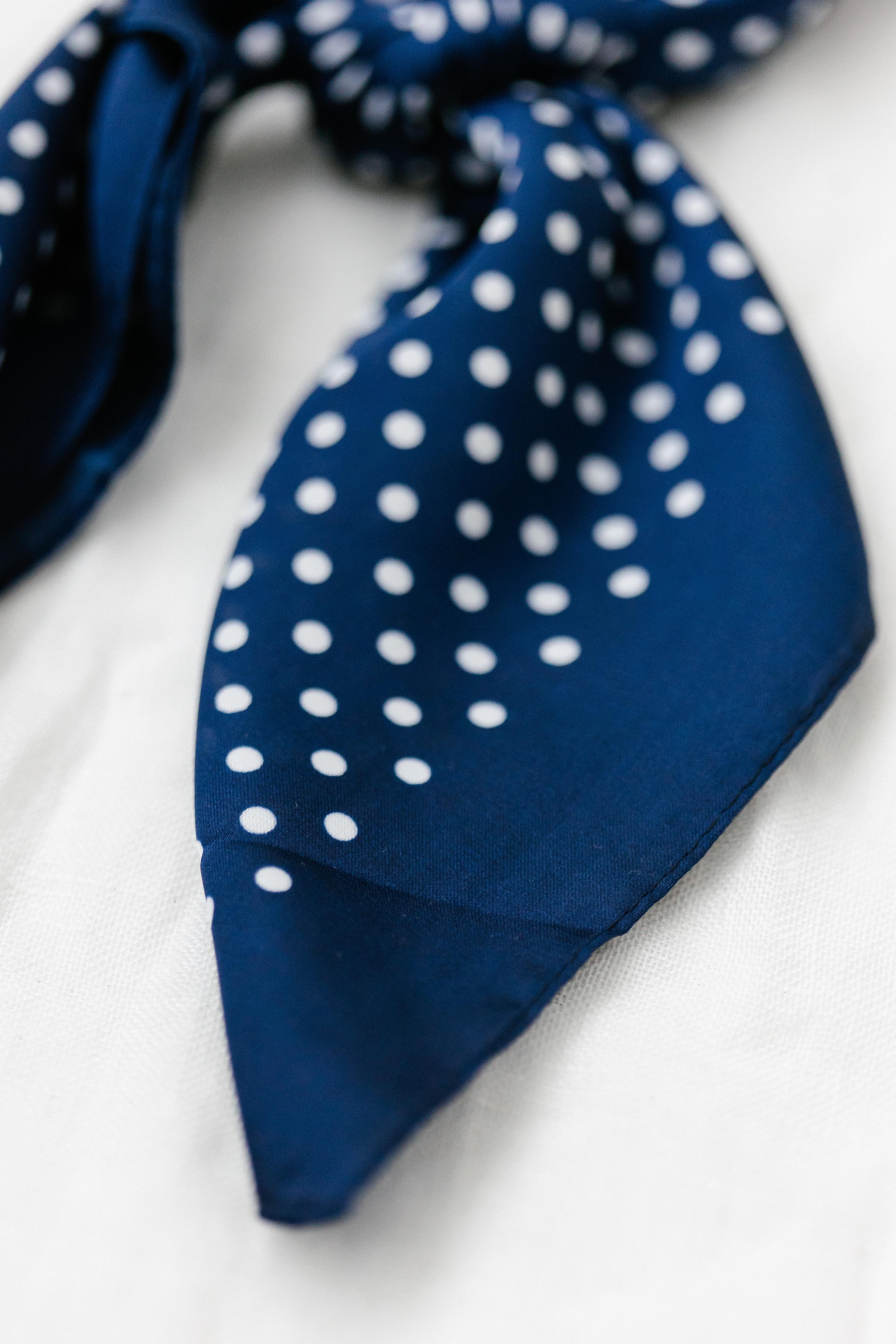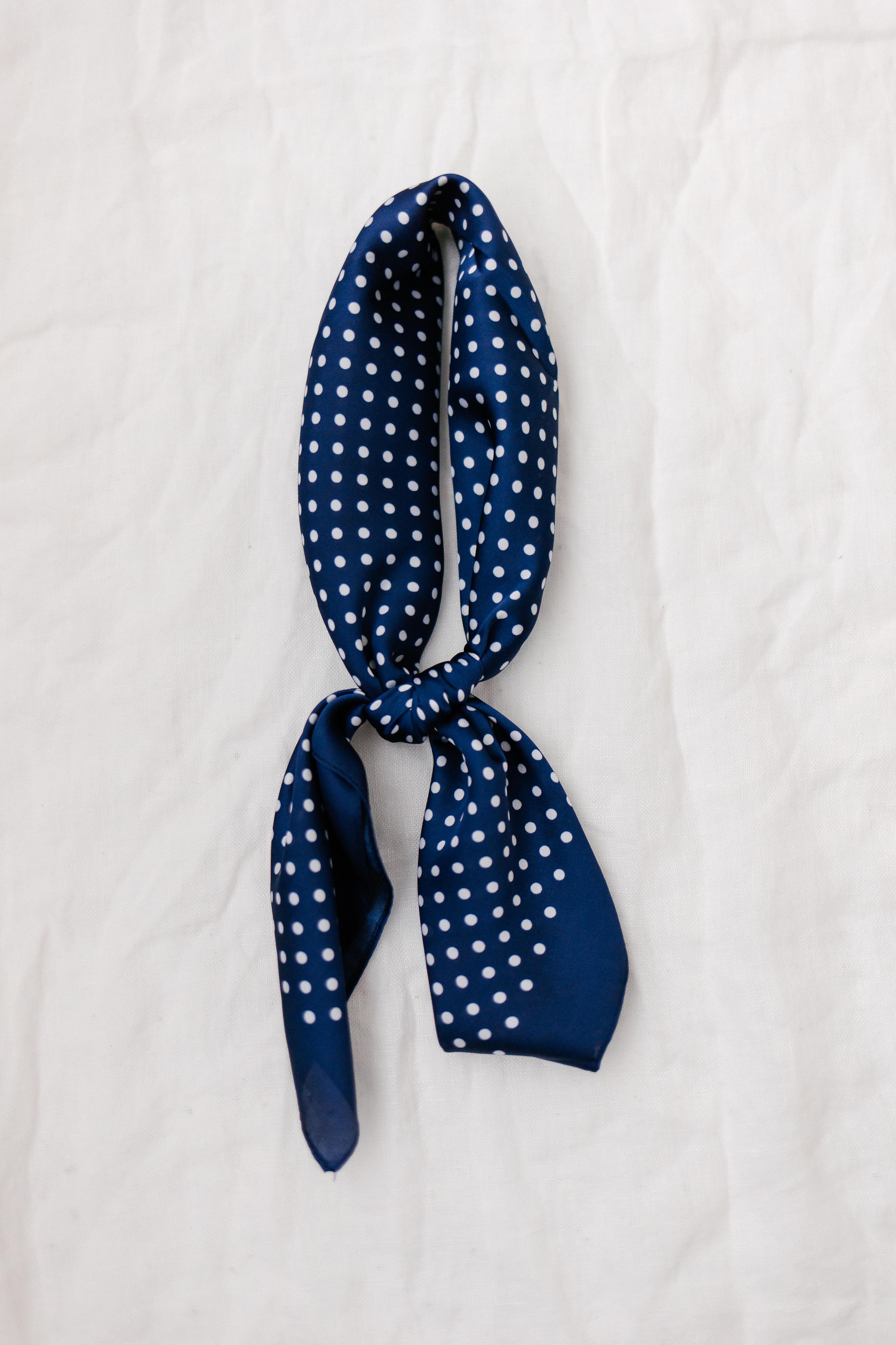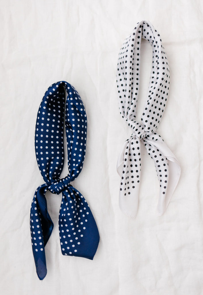 Tap into retro vibes with the Satin Polka Dot Scarf! This is the cutest trendy accessory to wear in your hair, on your bag, or around your neck. Choose between navy or white or grab both!