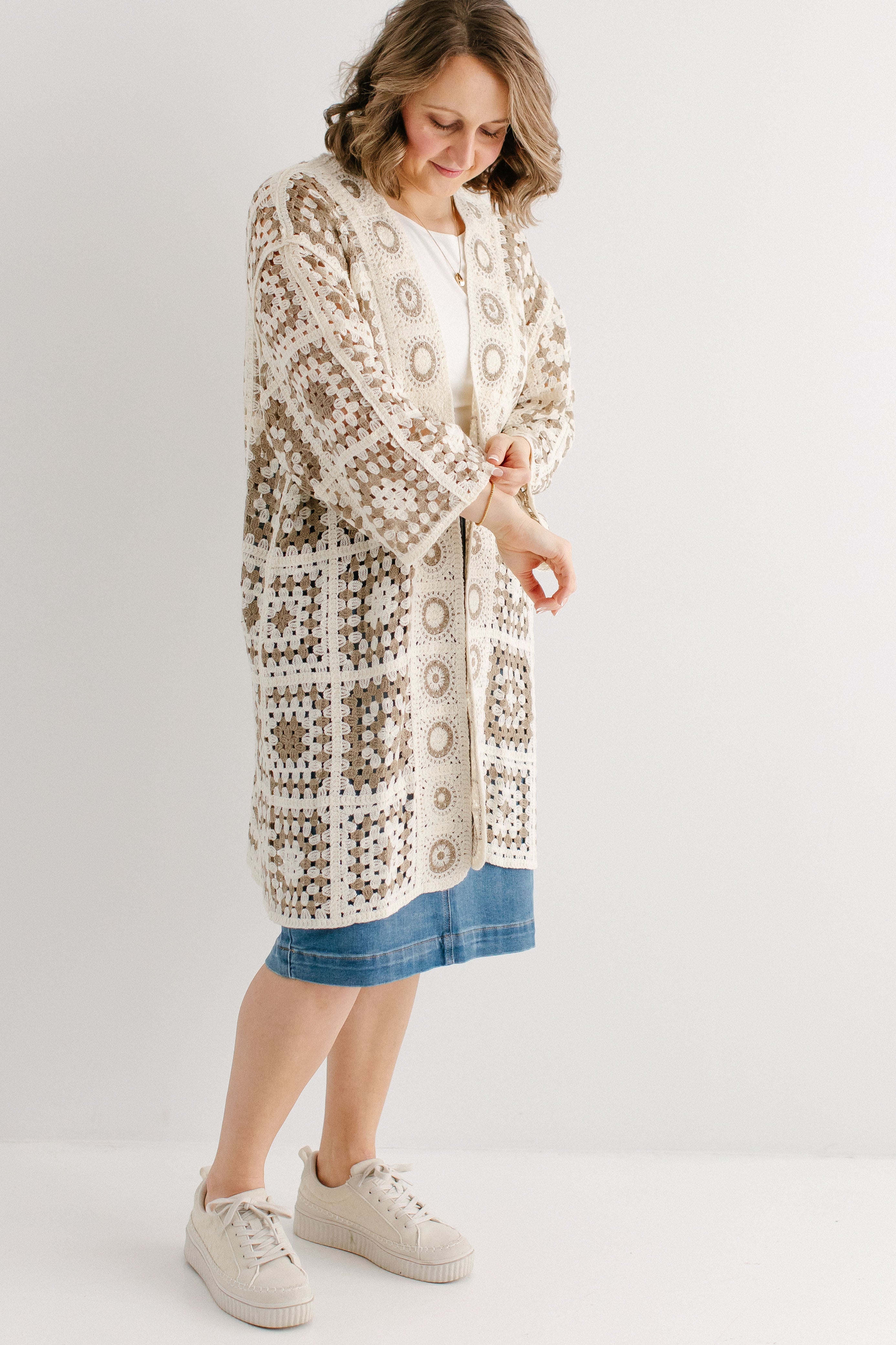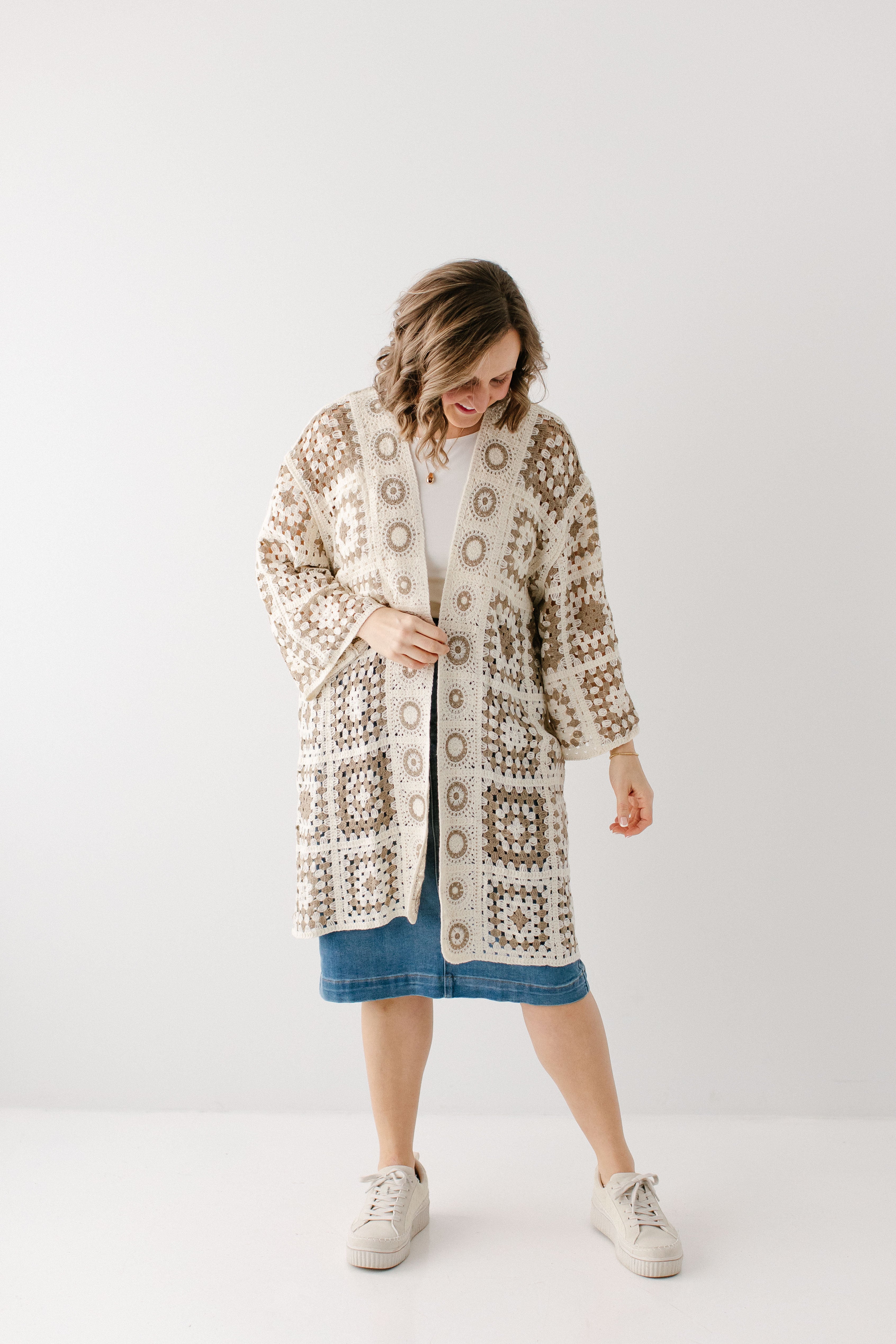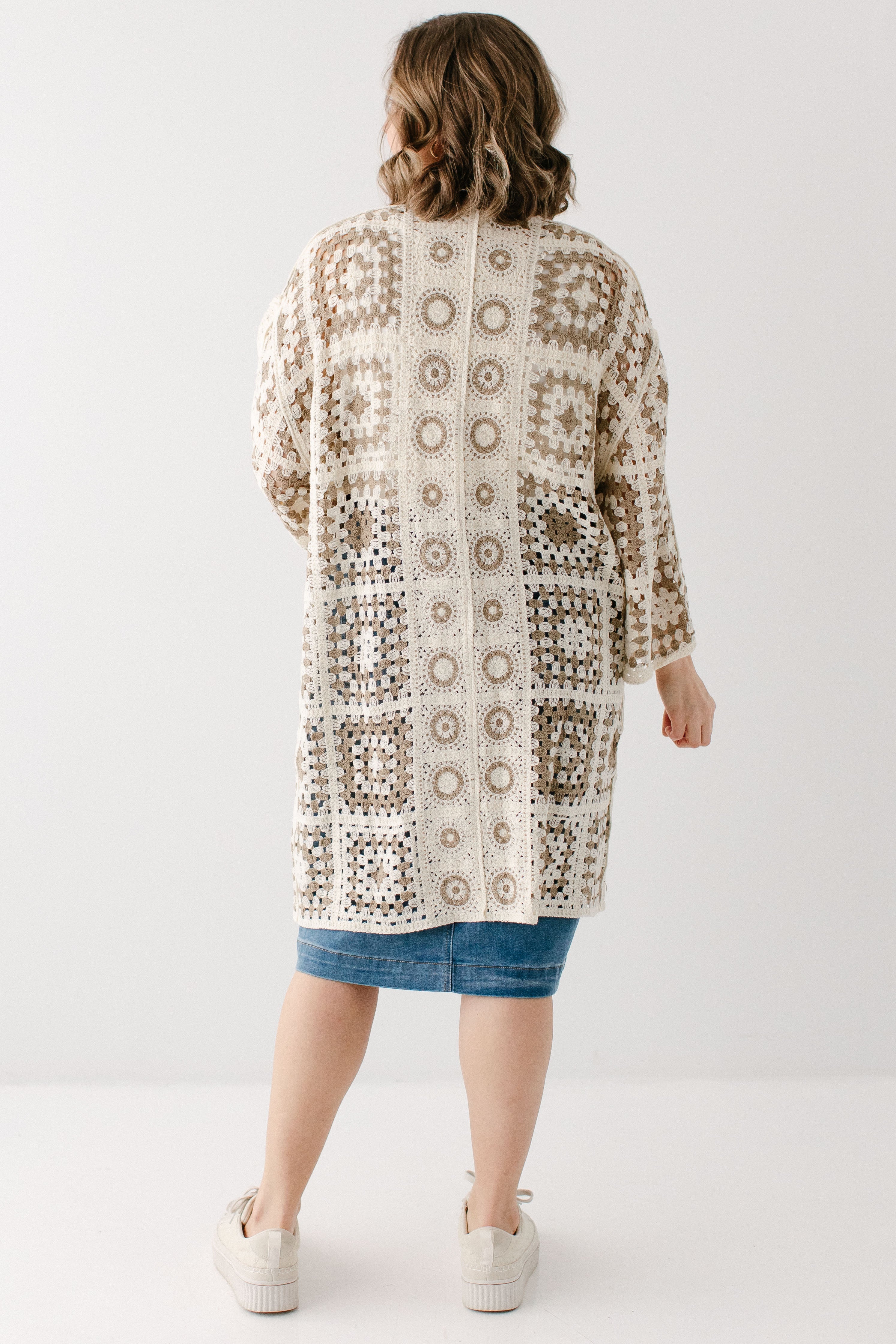 A fun cardigan is the perfect addition to your outfits! The 'Shantae' Open Knit Crochet Cardigan is designed in the most perfect neutral shades, allowing it to be paired with nearly anything. This cardigan features a fun square motif crochet style with flowy long sleeves and long length. Pair the ‘Shantae’ with your favorite outfits for a little extra flair.