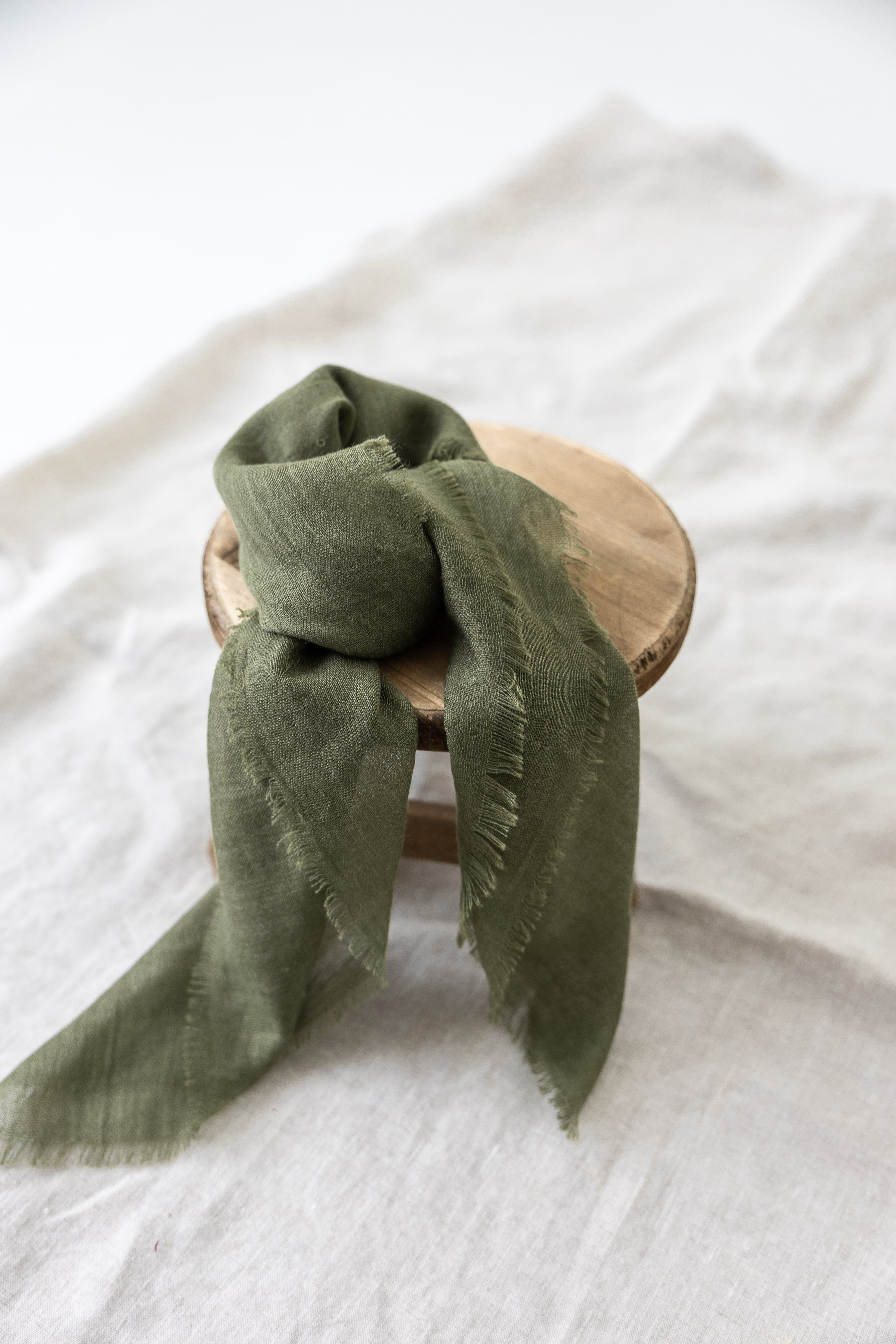 Dress up your everyday style with a Soft Flaxen Scarf! This stylish women's scarf will be a fashionable pick in your wardrobe. Featuring a soft, textured fabric, raw edge hem, and a rich olive color, this square-shaped scarf offers different styling options with a variety of looks. Wear as a neck scarf, headband, or as an accessory on your favorite bag!