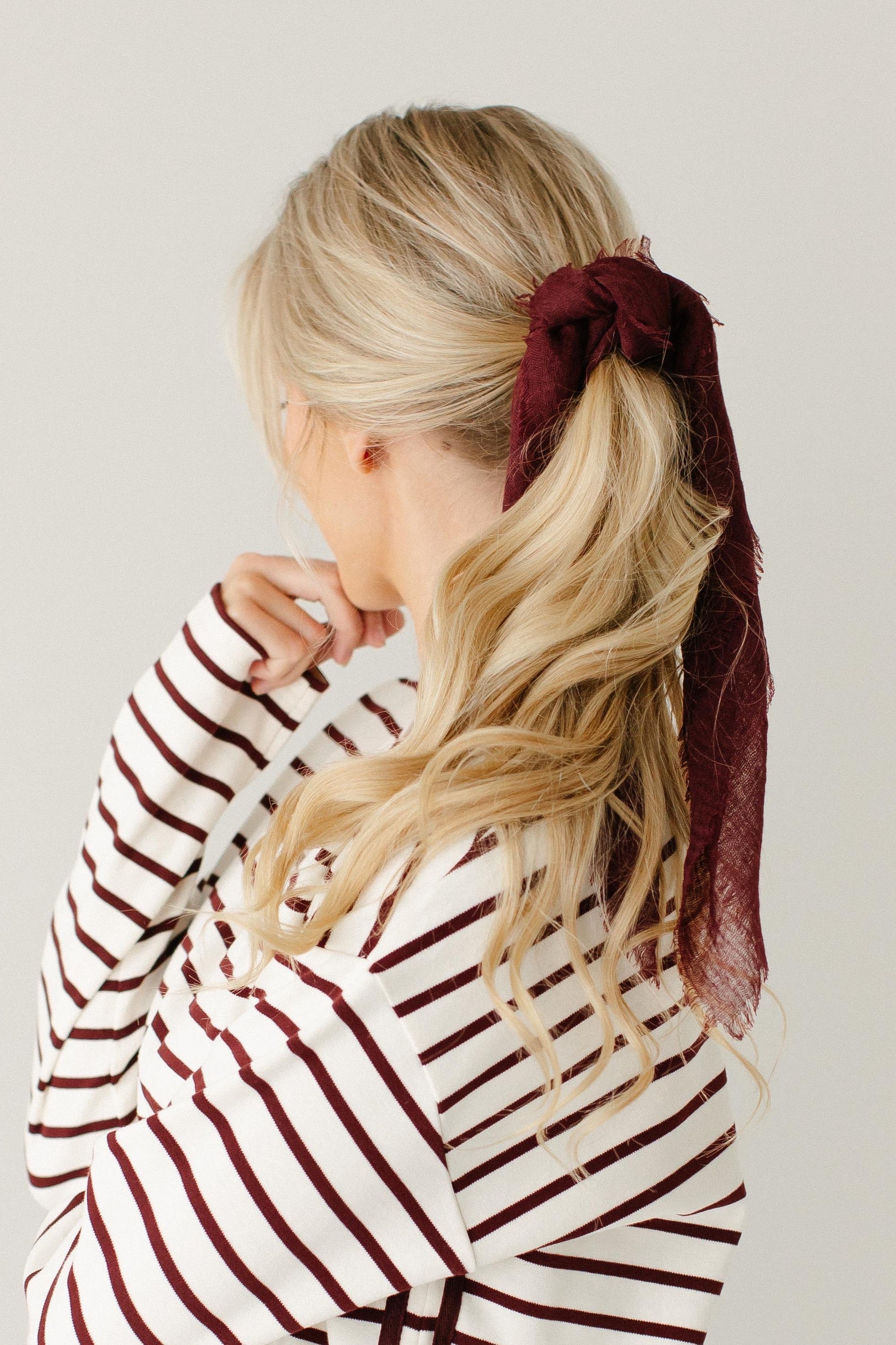 Elevate your favorite outfit with the Textured Gauze Scarf in Wine! Made out of soft gauze fabric in a deep wine color, this scarf pairs perfectly with all your fall outfits.